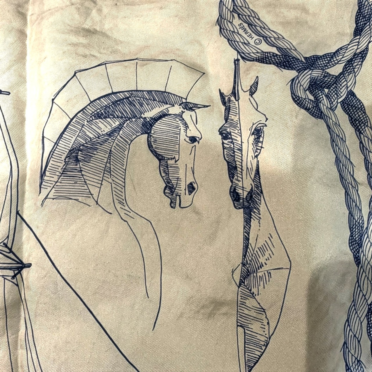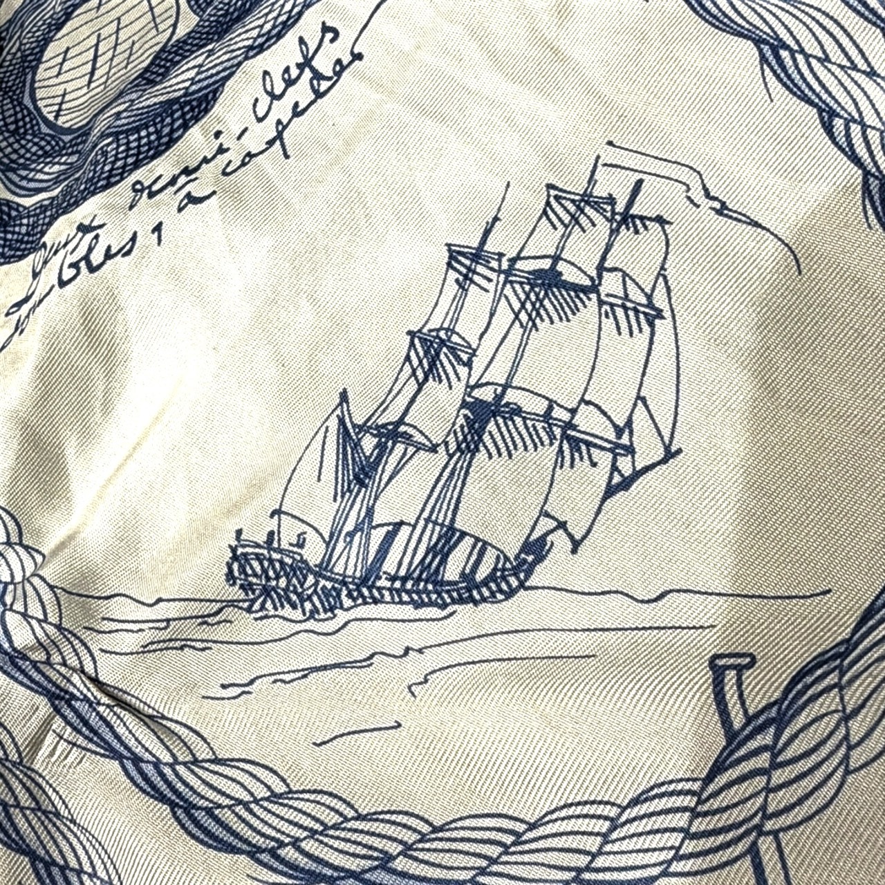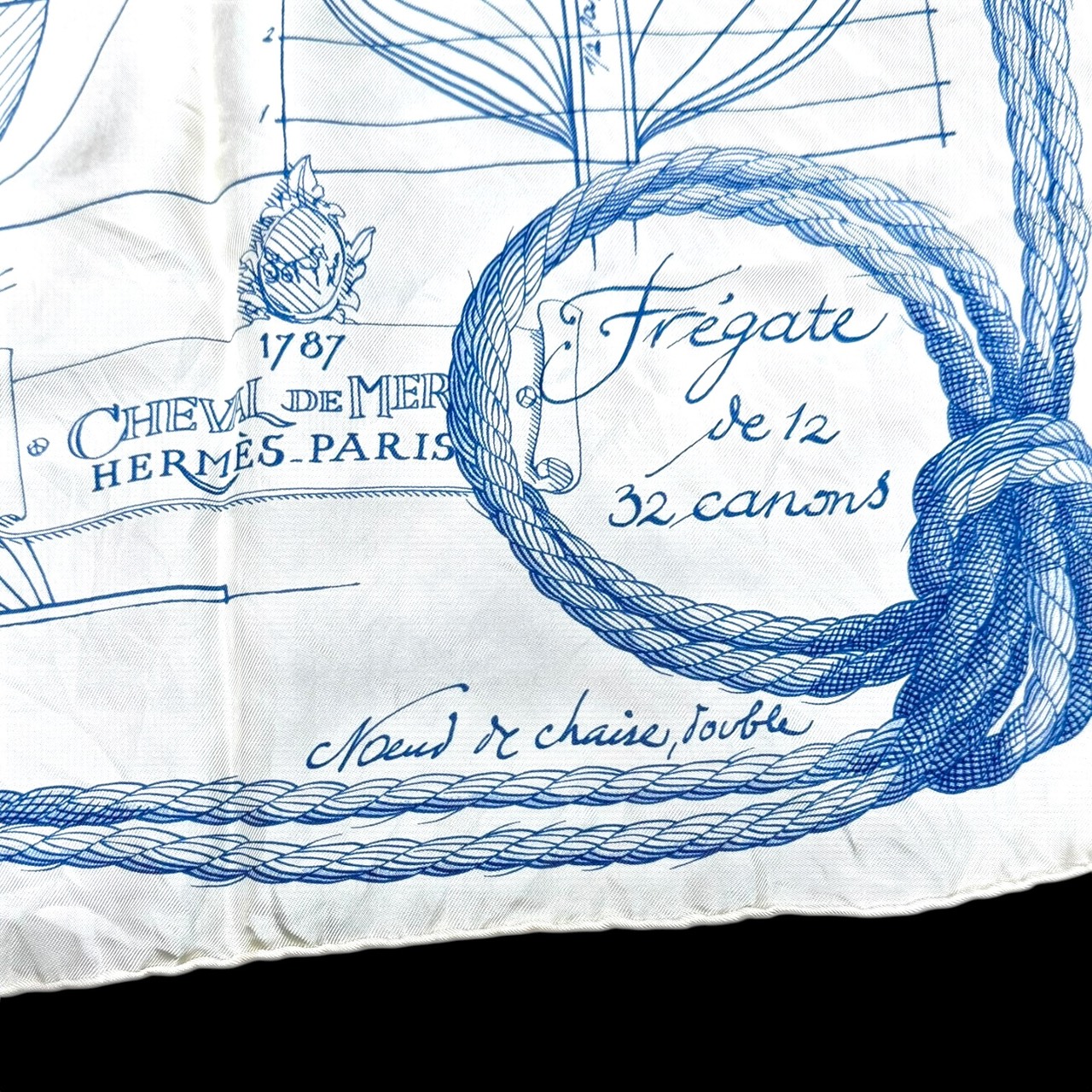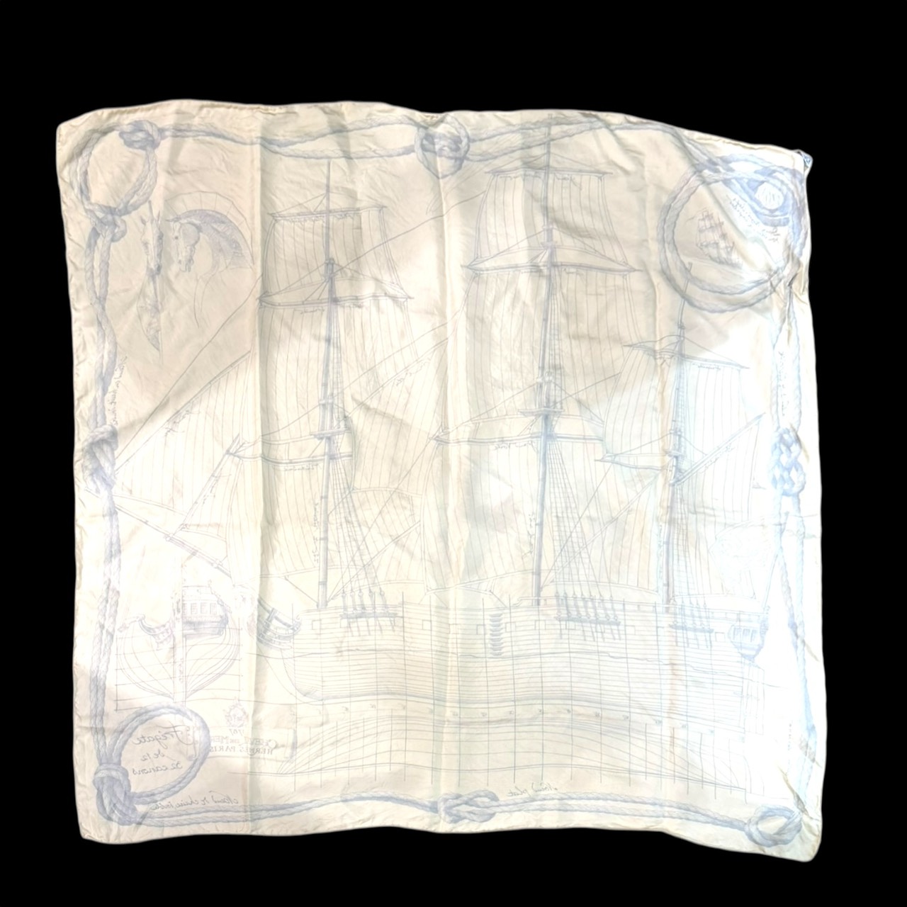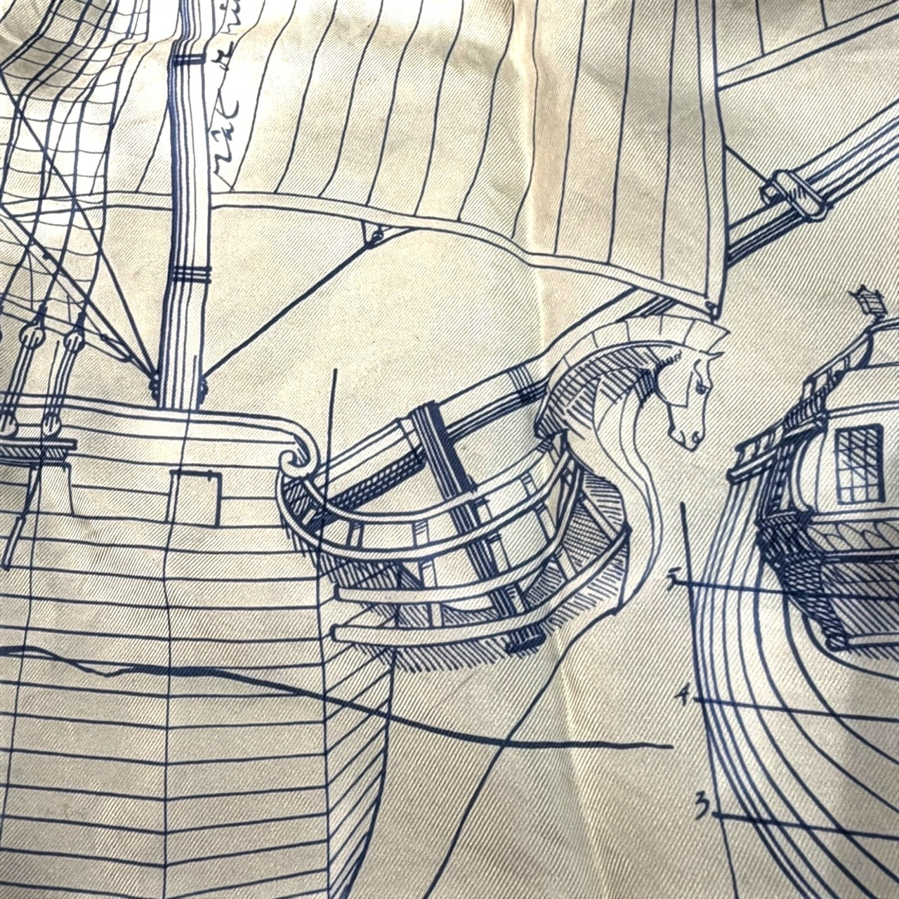スカーフ カレ90 ホワイト系 船 馬 ホース シップ