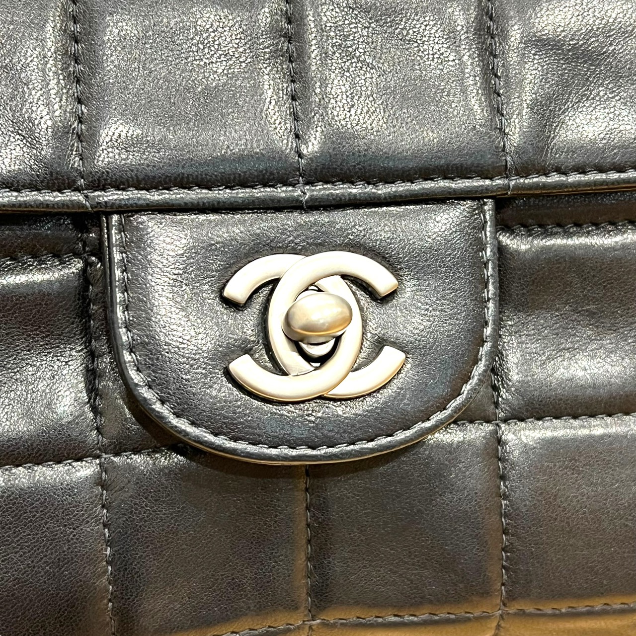 ショルダーバッグ マトラッセ チェーンショルダー ラムスキン ブラック シルバー金具
