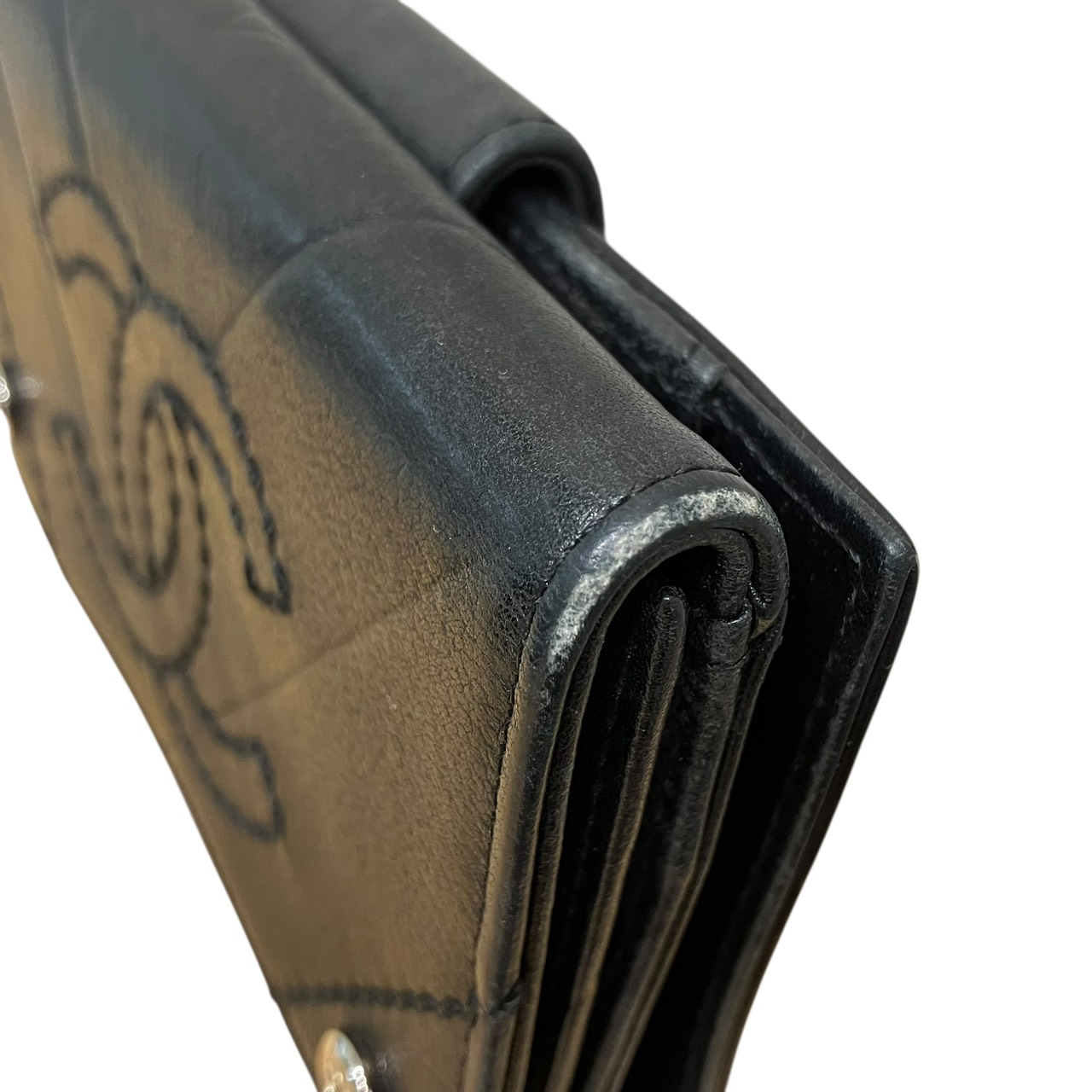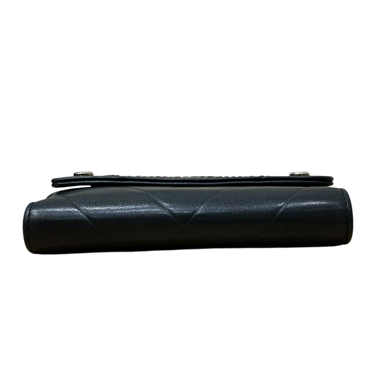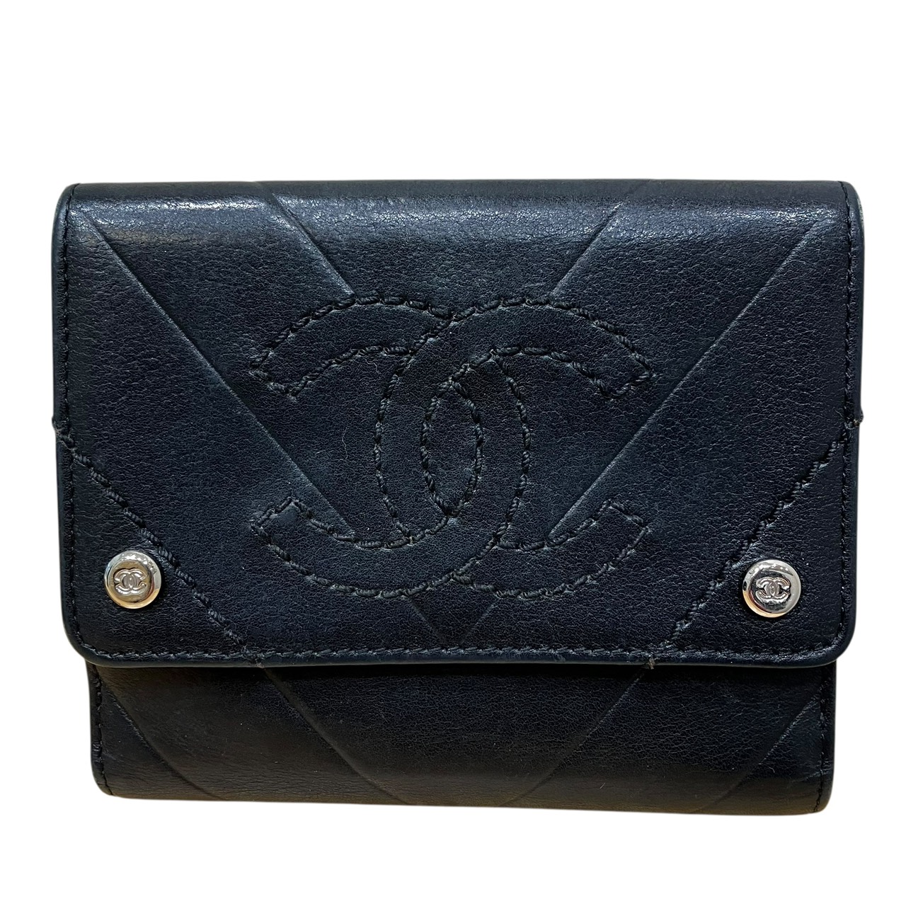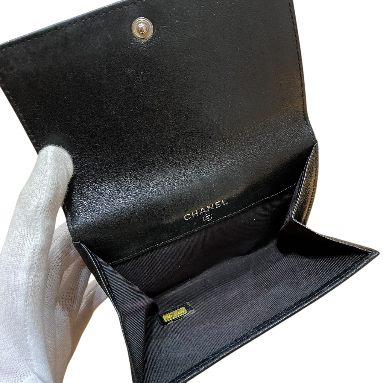 Wホック ココマーク ラムスキン 二つ折り財布 コンパクト ブラック系 シルバー金具 二つ折り財布 ブラック系 なし