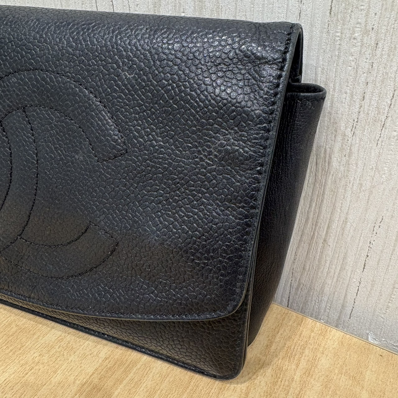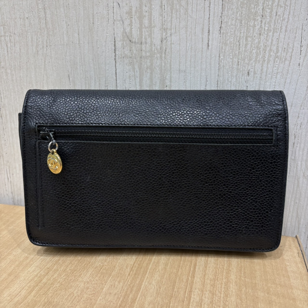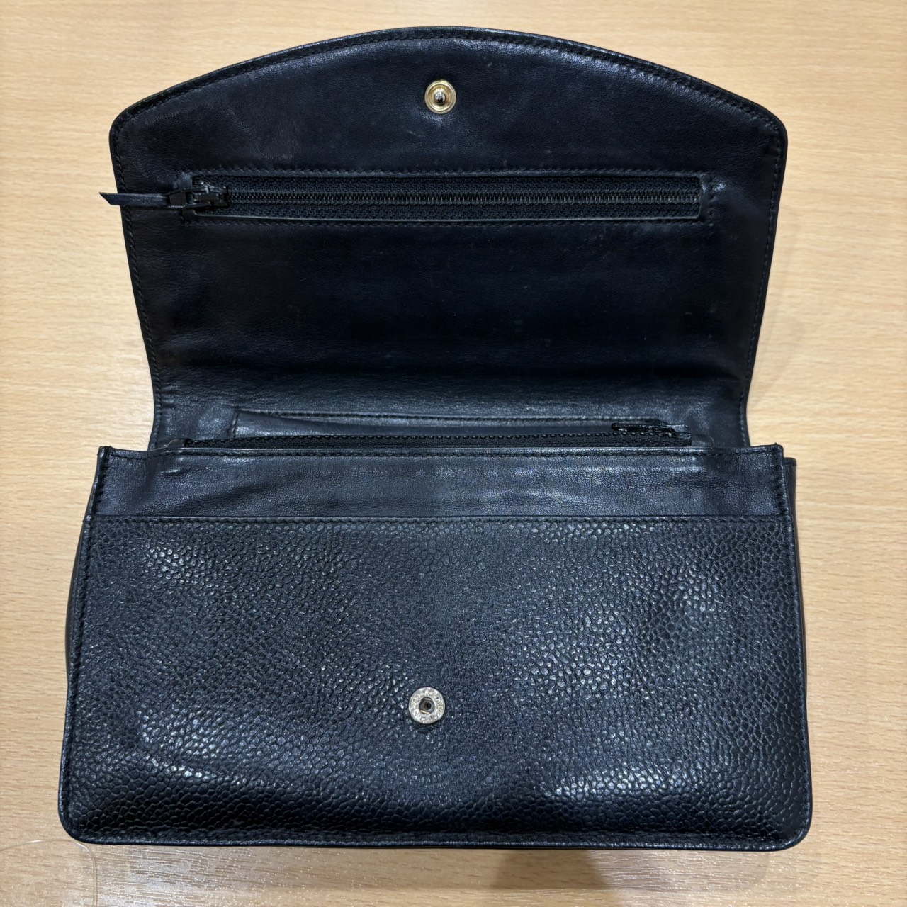 3番台 キャビアスキン デカココ GDカラー金具 レザー チェーンウォレット チェーンなし 長財布 ブラック系