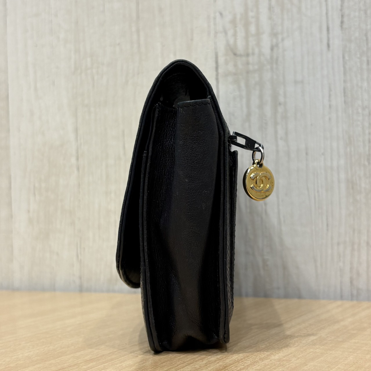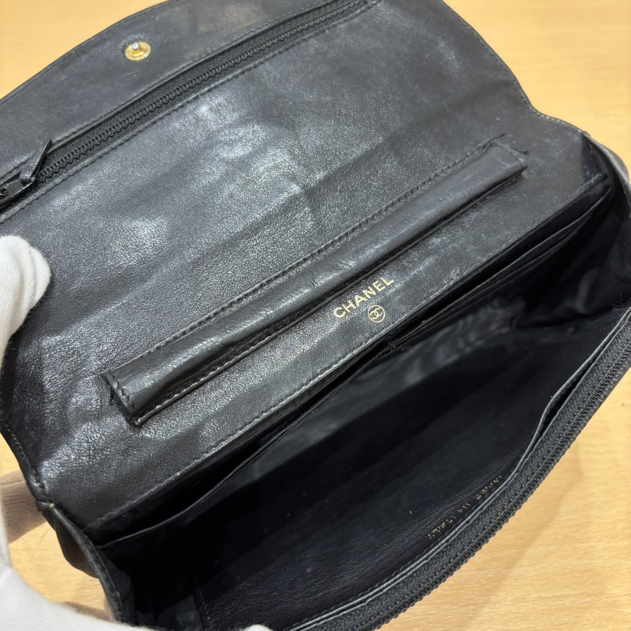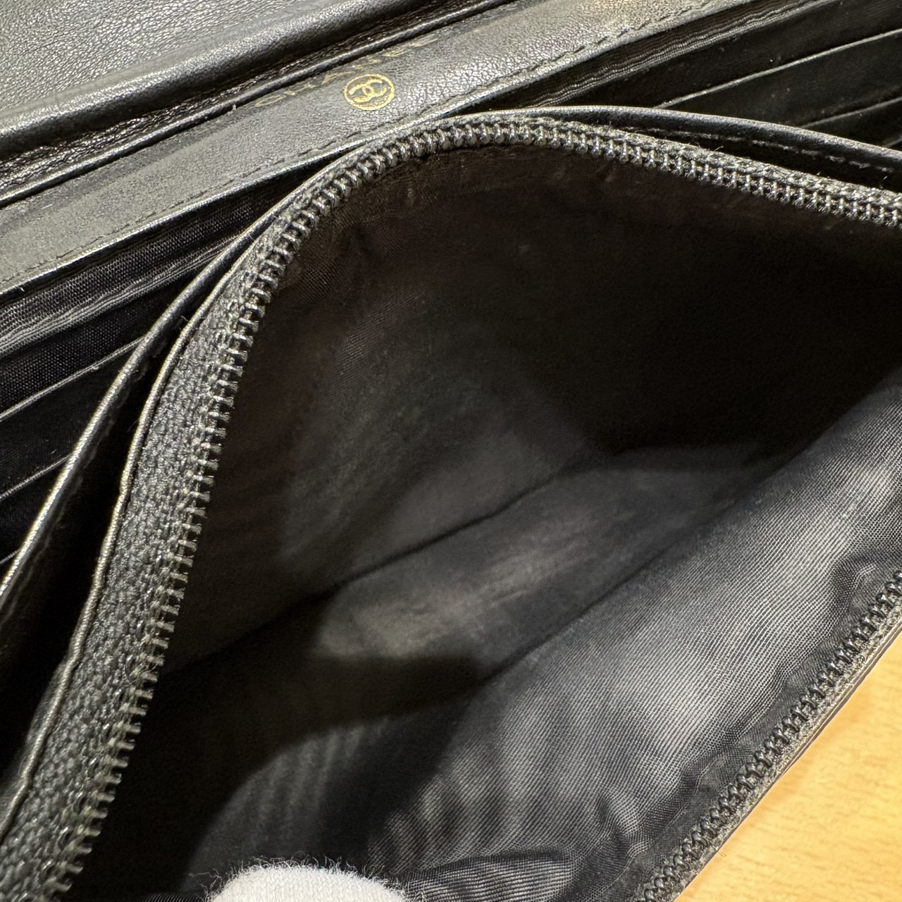 3番台 キャビアスキン デカココ GDカラー金具 レザー チェーンウォレット チェーンなし 長財布 ブラック系