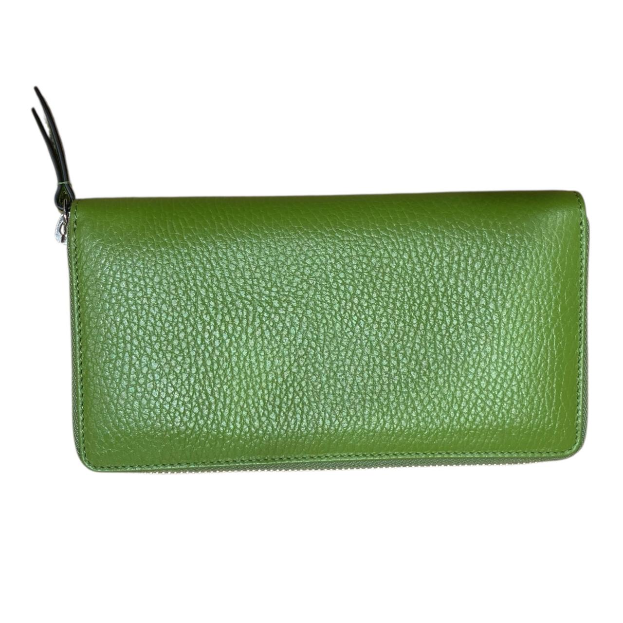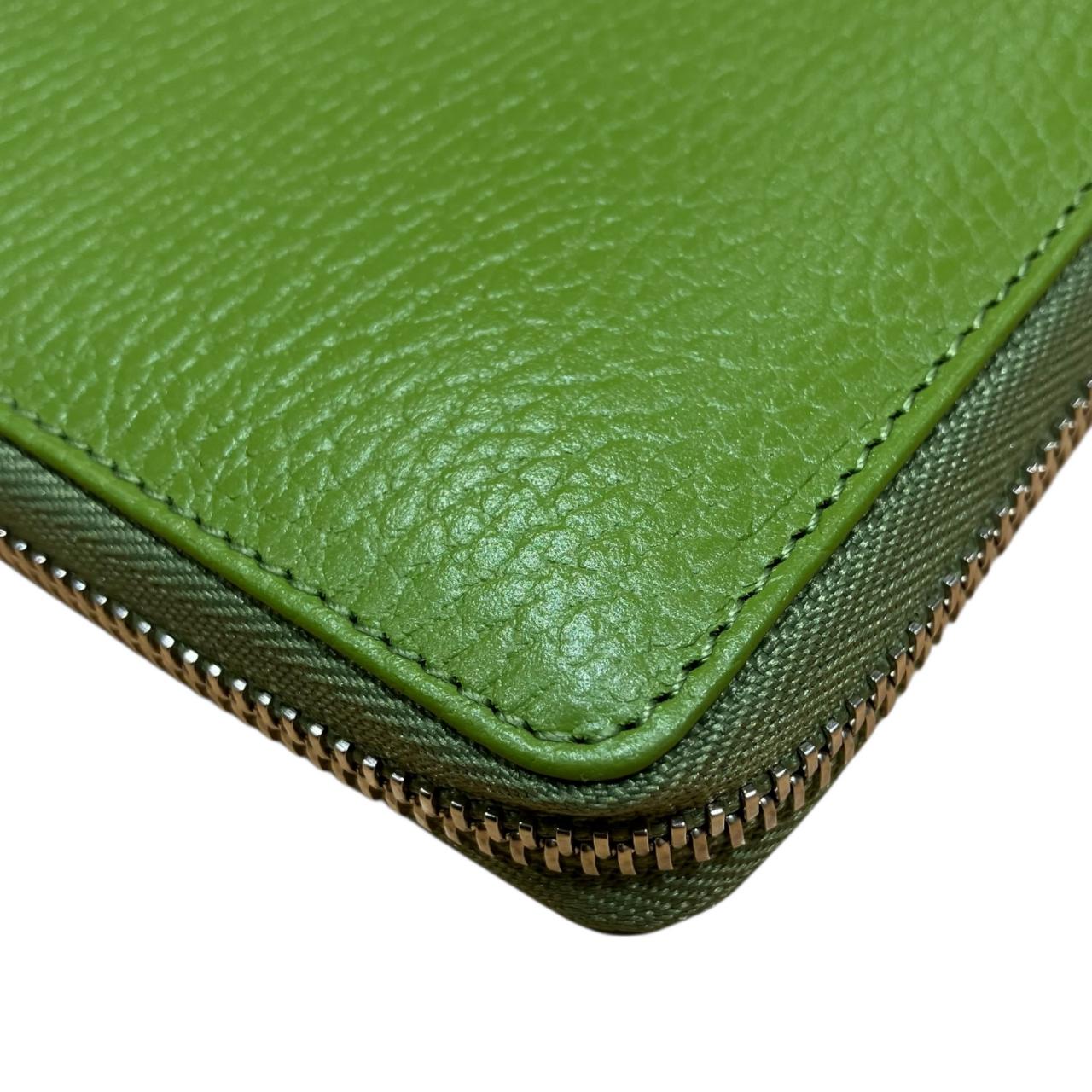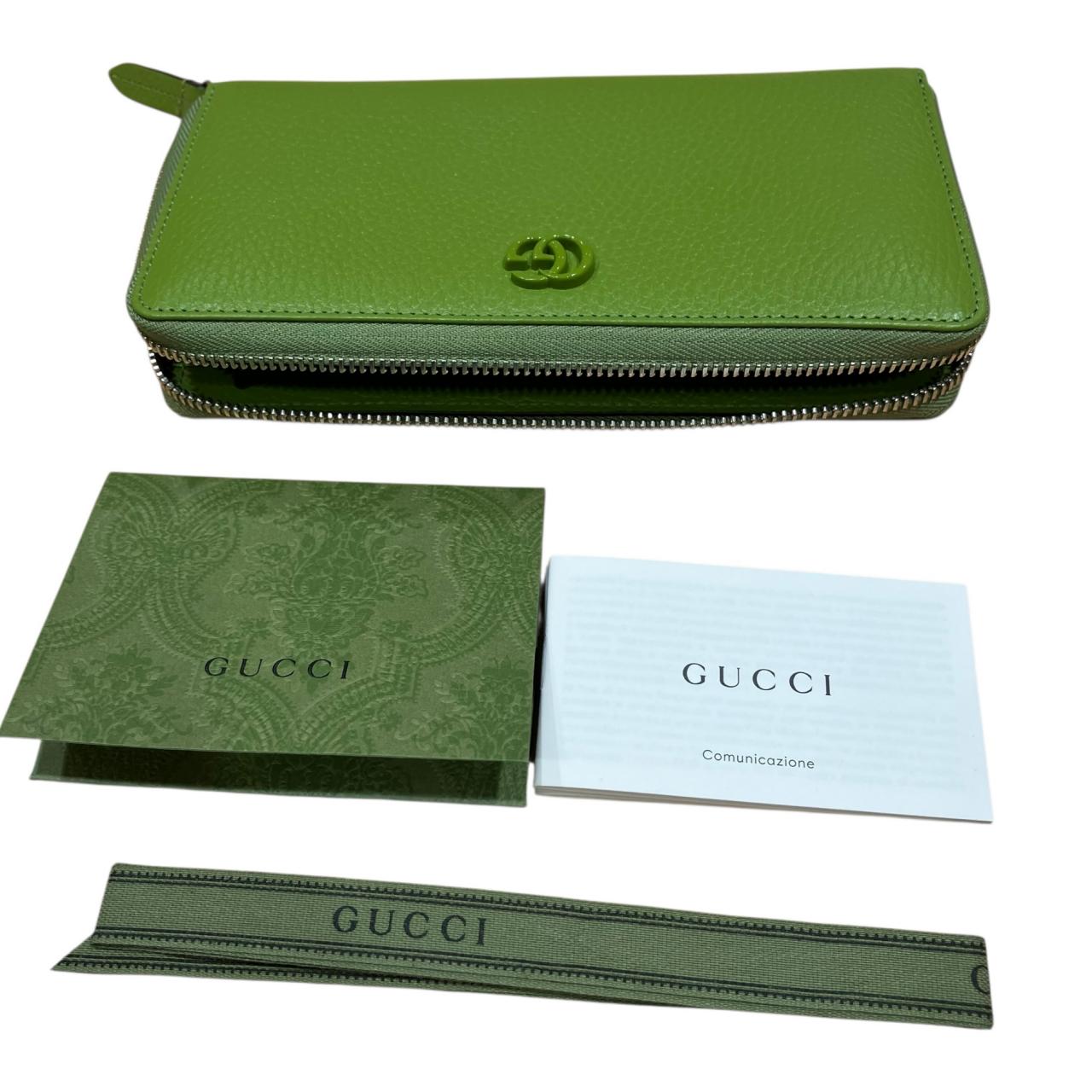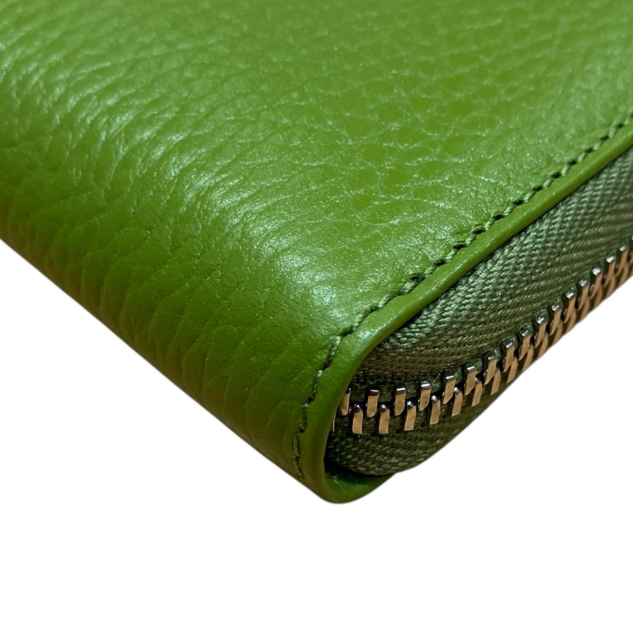 美品 GG マーモントレザー ジップアラウンドウォレット グリーン系 ラウンドファスナー長財布