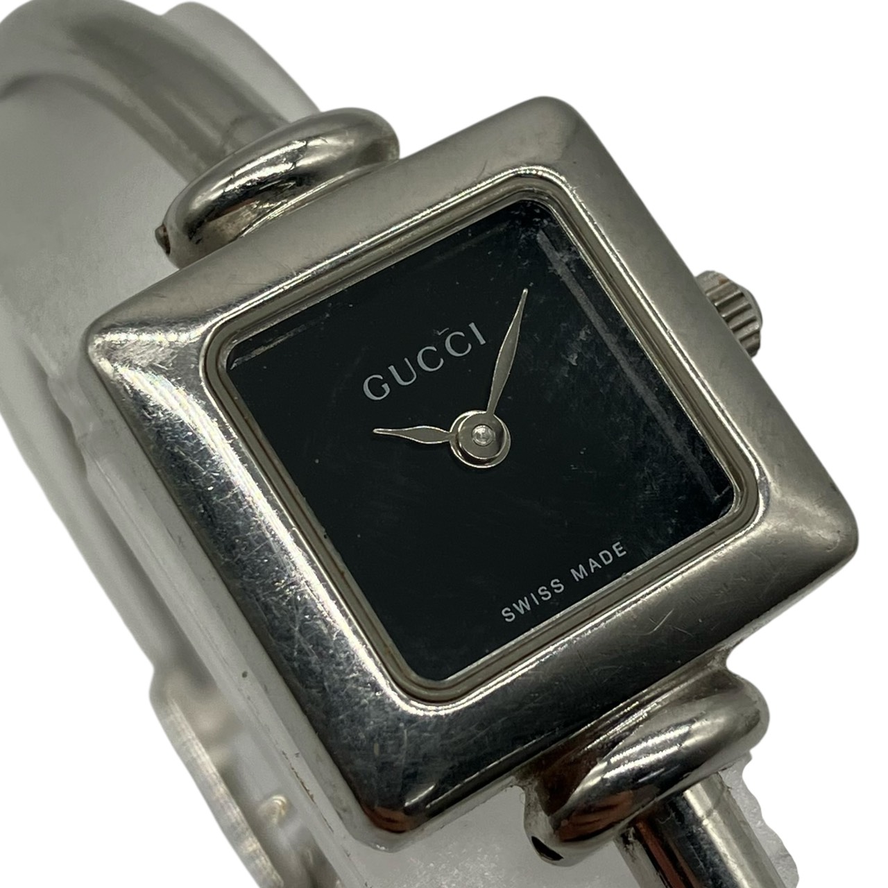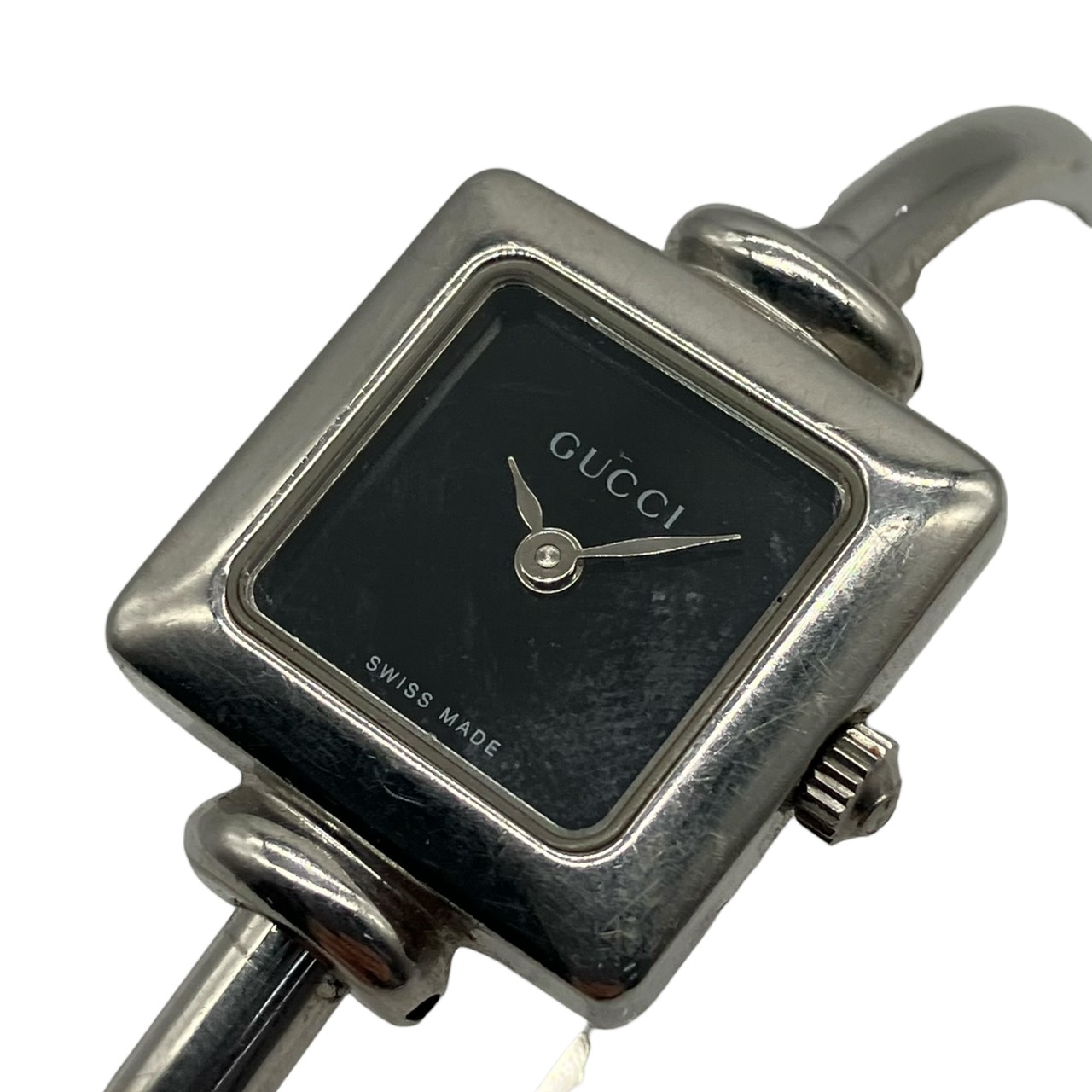1900L バングル ブラック レディース 腕時計 シルバー ブラック文字盤 QZ 不動