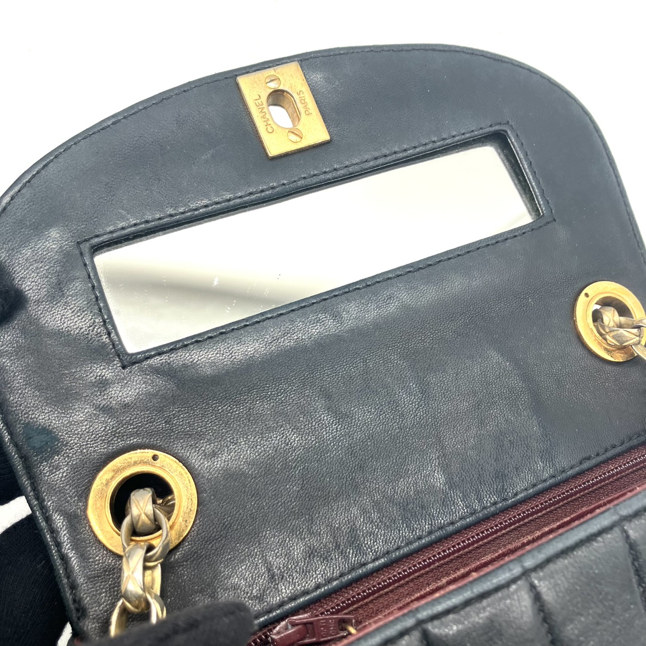 マドモアゼル 17.5cm Wチェーンショルダーバッグ ラムスキン ノワール シールなし