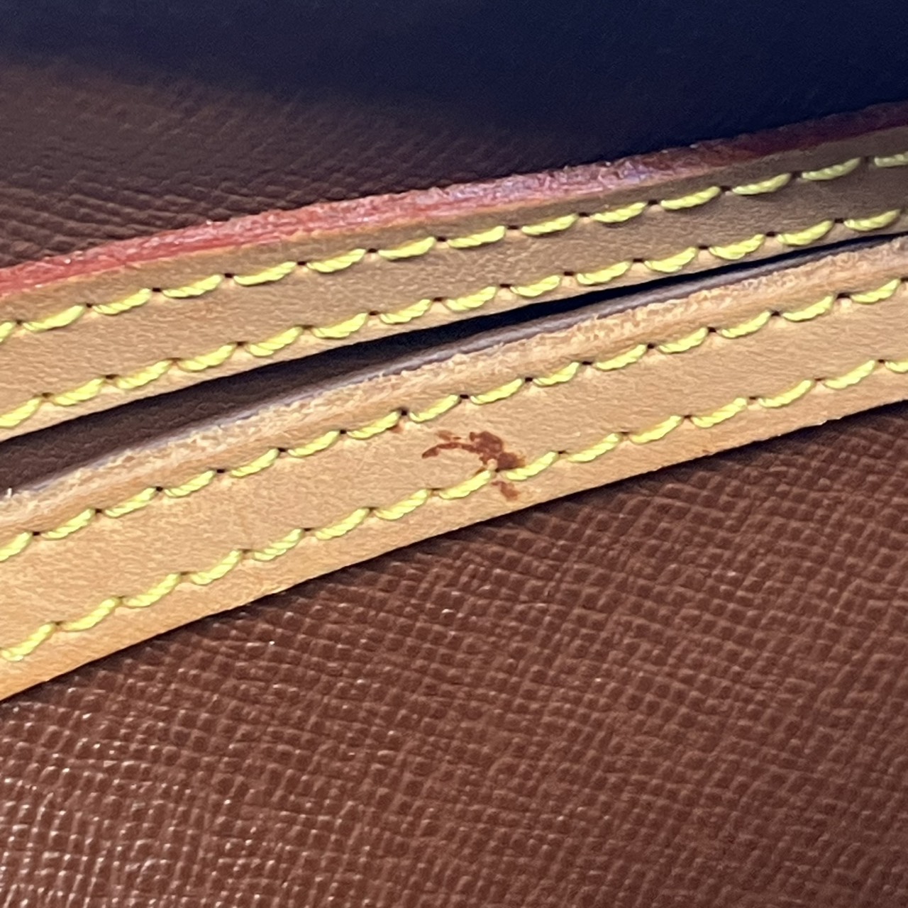 備考:角スレ小 ヌメ革シミヤケ小~中 ストラップひび割れ中 金具小傷 内側シミ極小