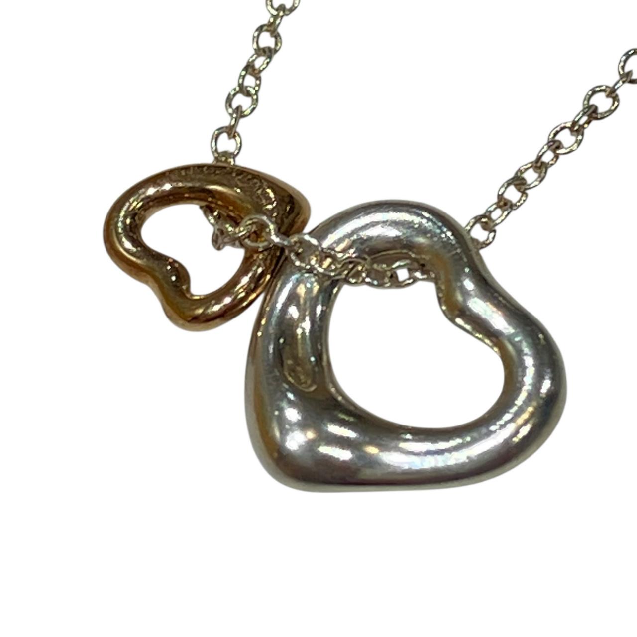 オープンハート ネックレス K18RG 750 シルバー925 ダブルハート ツイン 2.4g