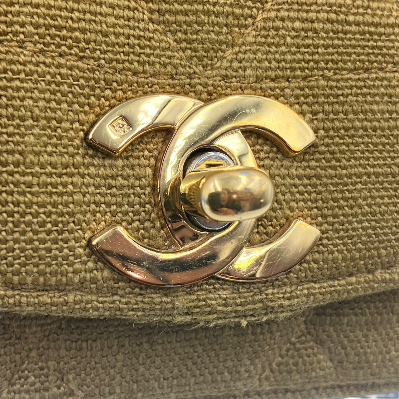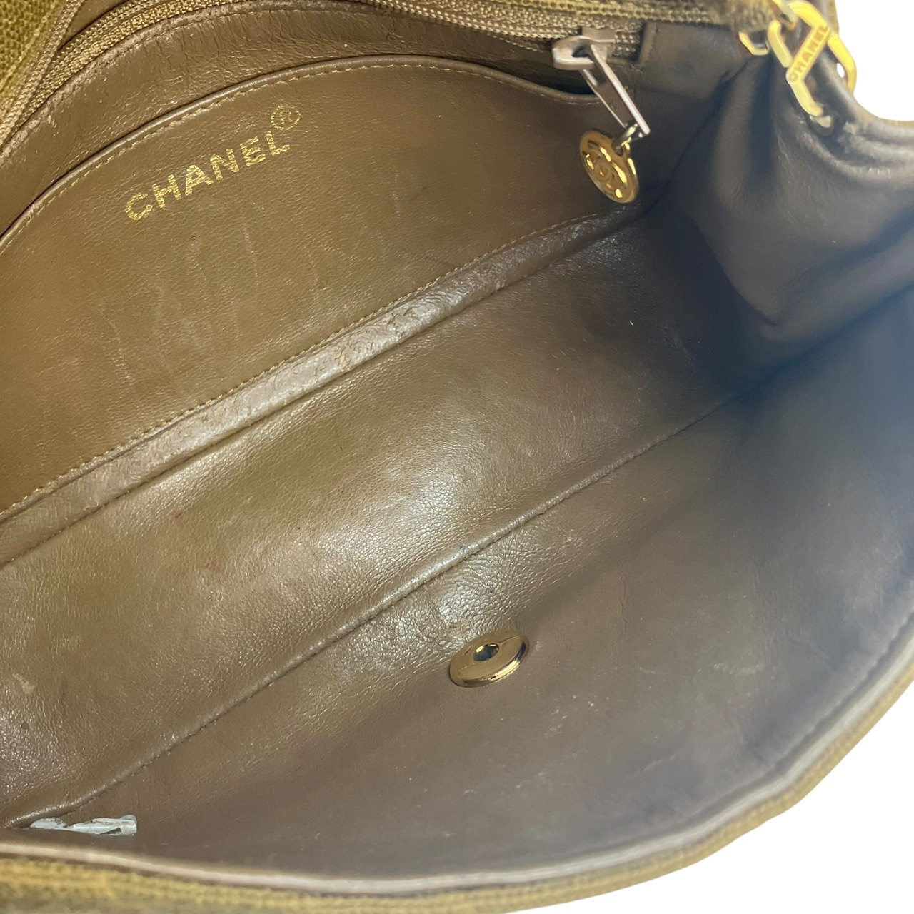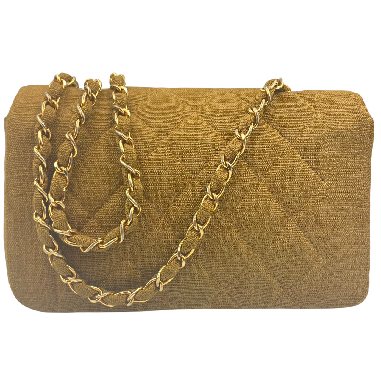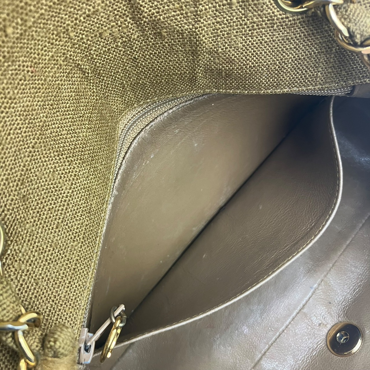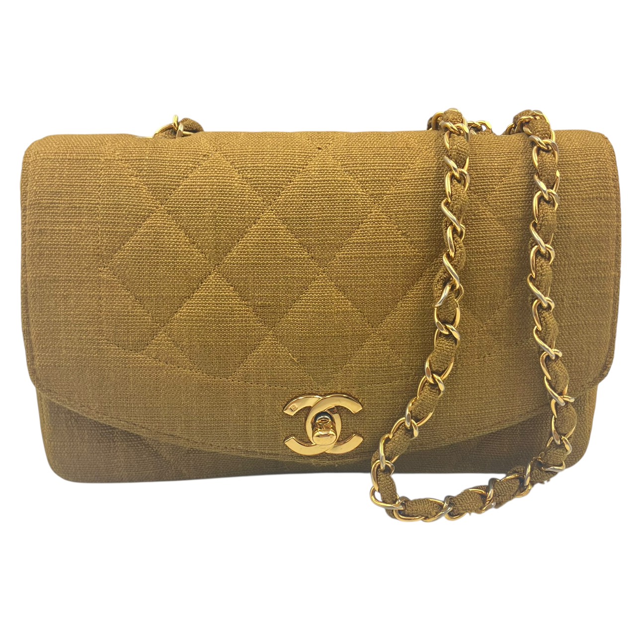 CHANEL Cotton Diana Flap Chain Shoulder Bag in Khaki Shoulder Bag Khaki Women's