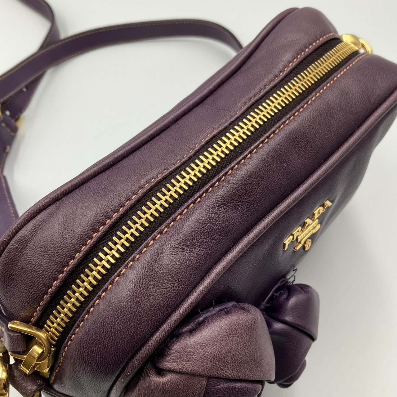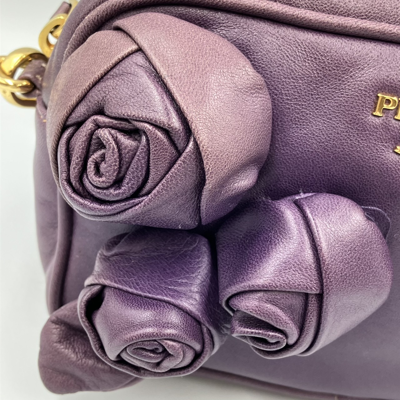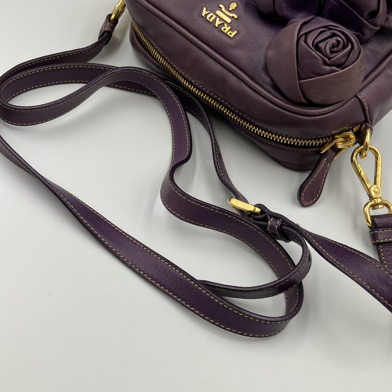 ローズモチーフ ショルダーバッグ ナッパーレザー パープル系 ゴールド金具