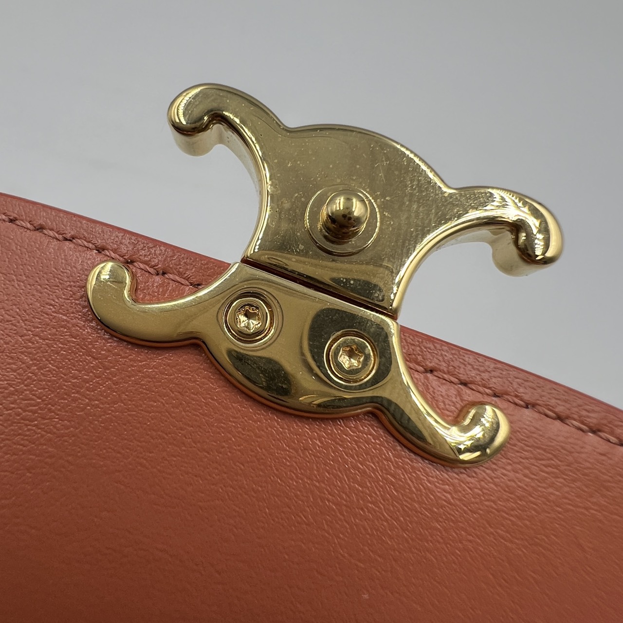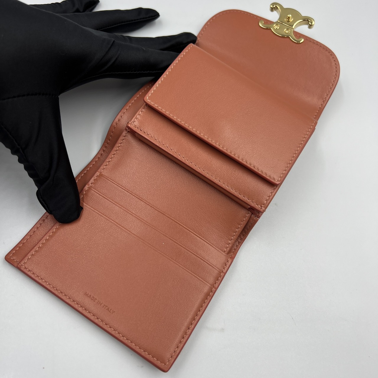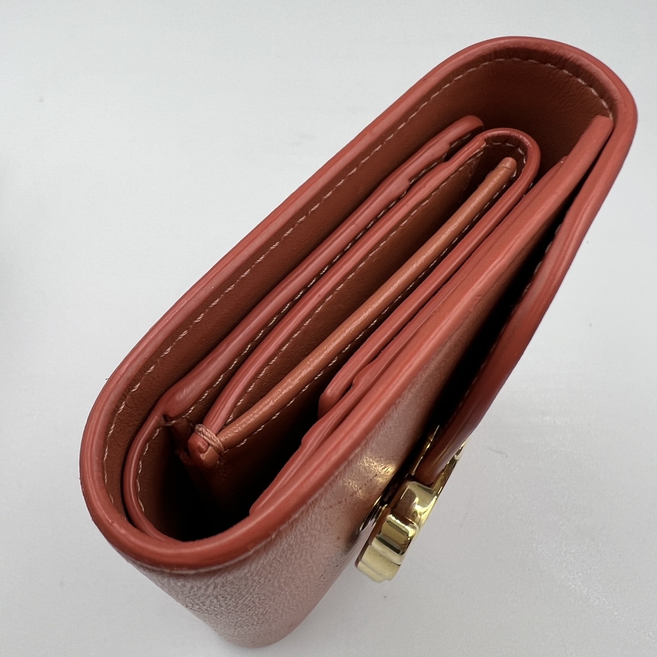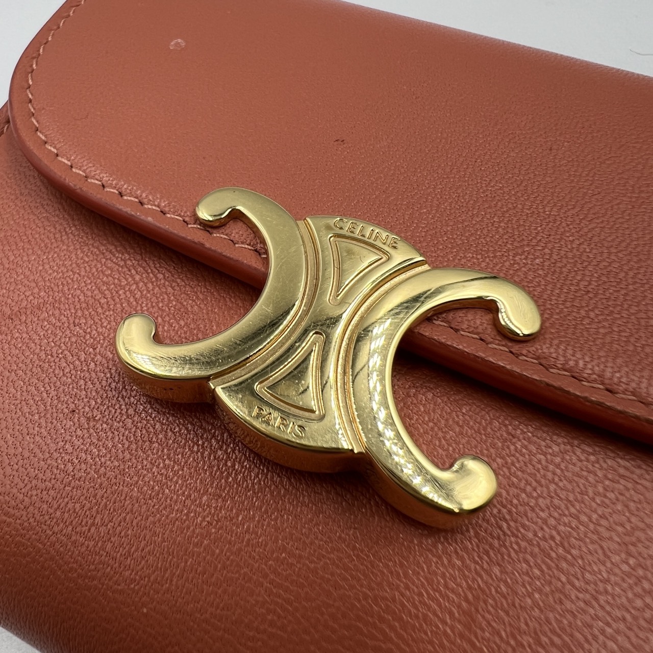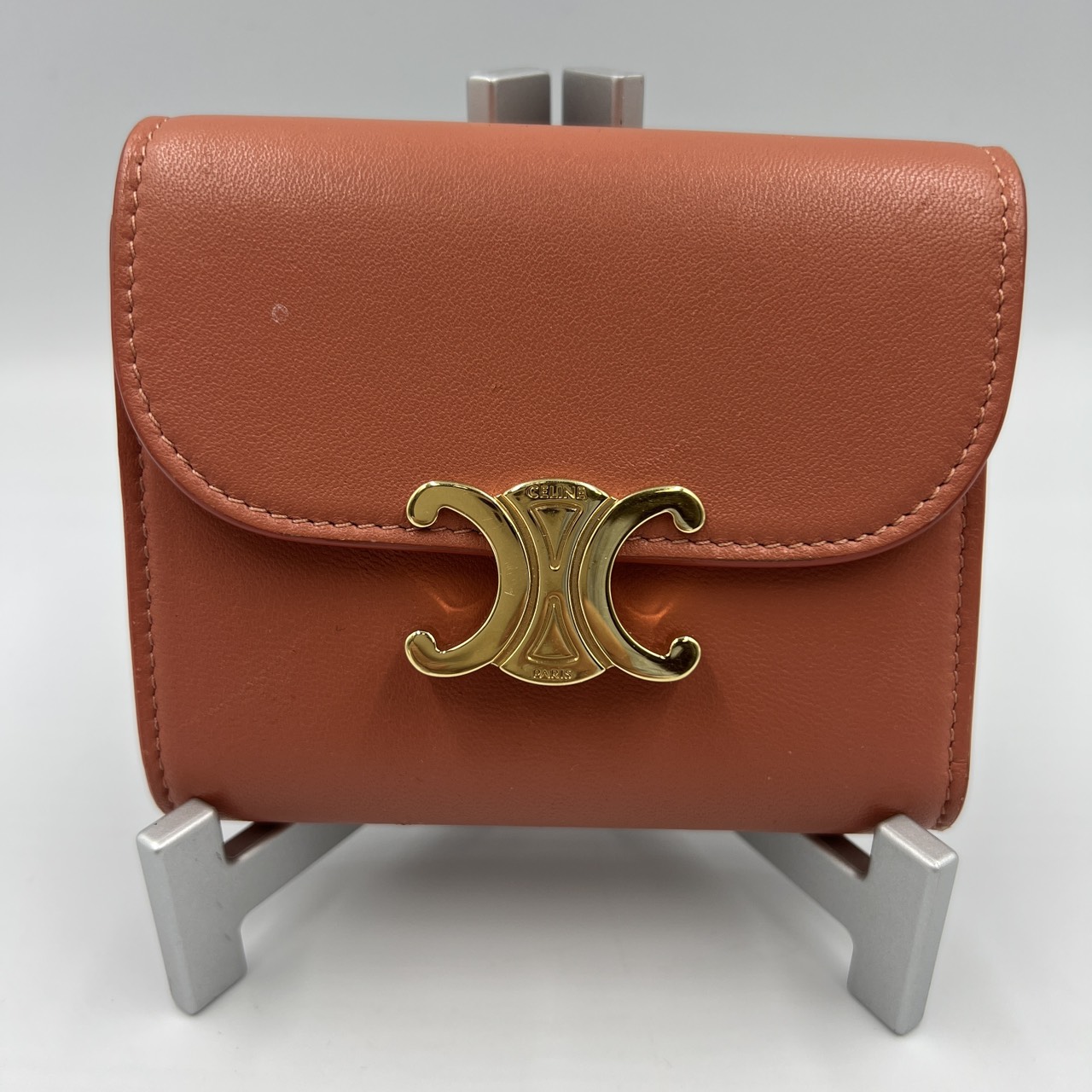 セリーヌ トリオンフ カーフレザー 三つ折り財布 オレンジ系