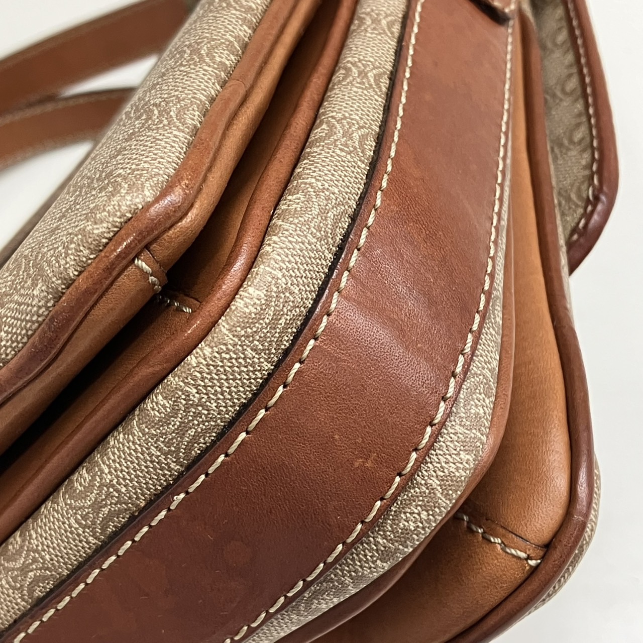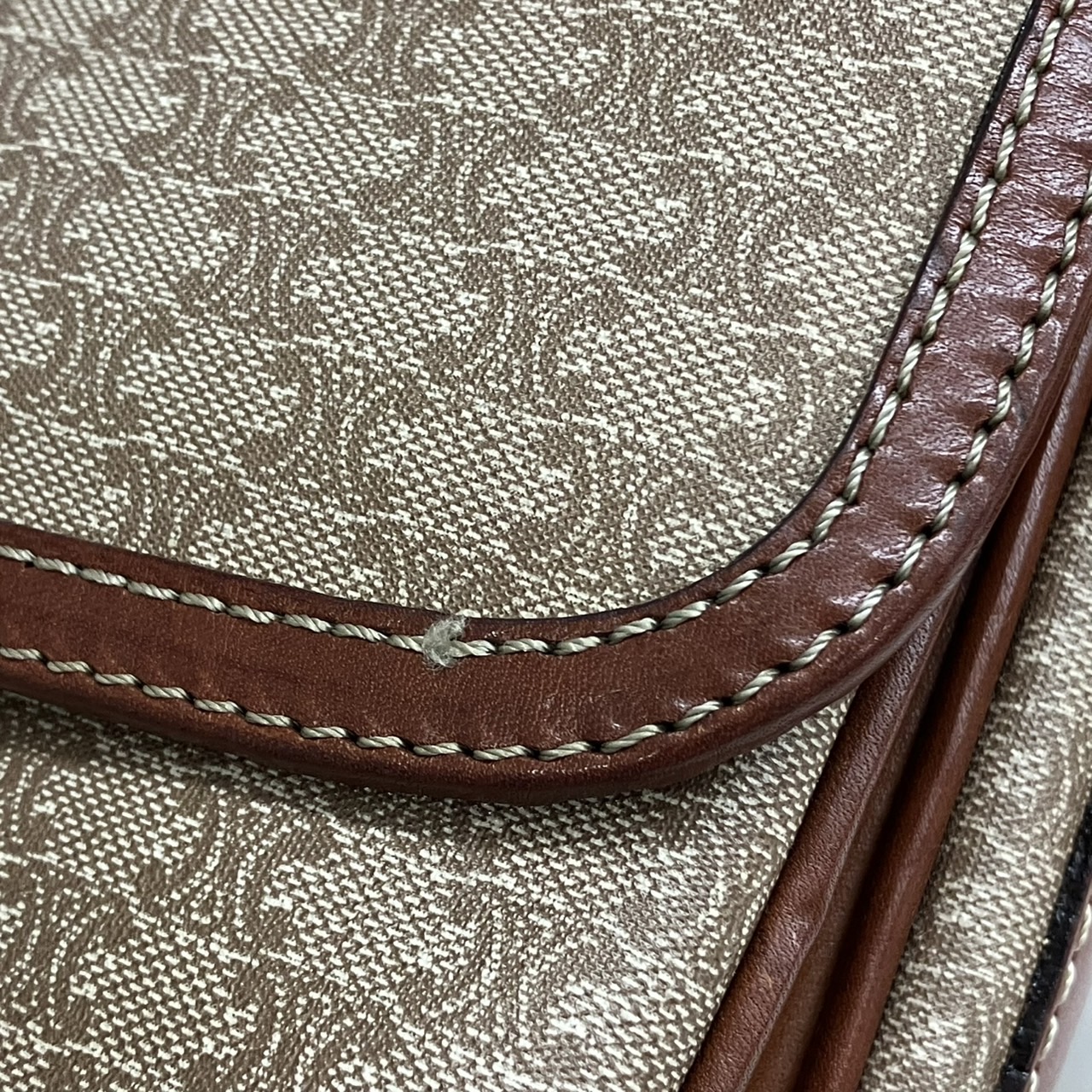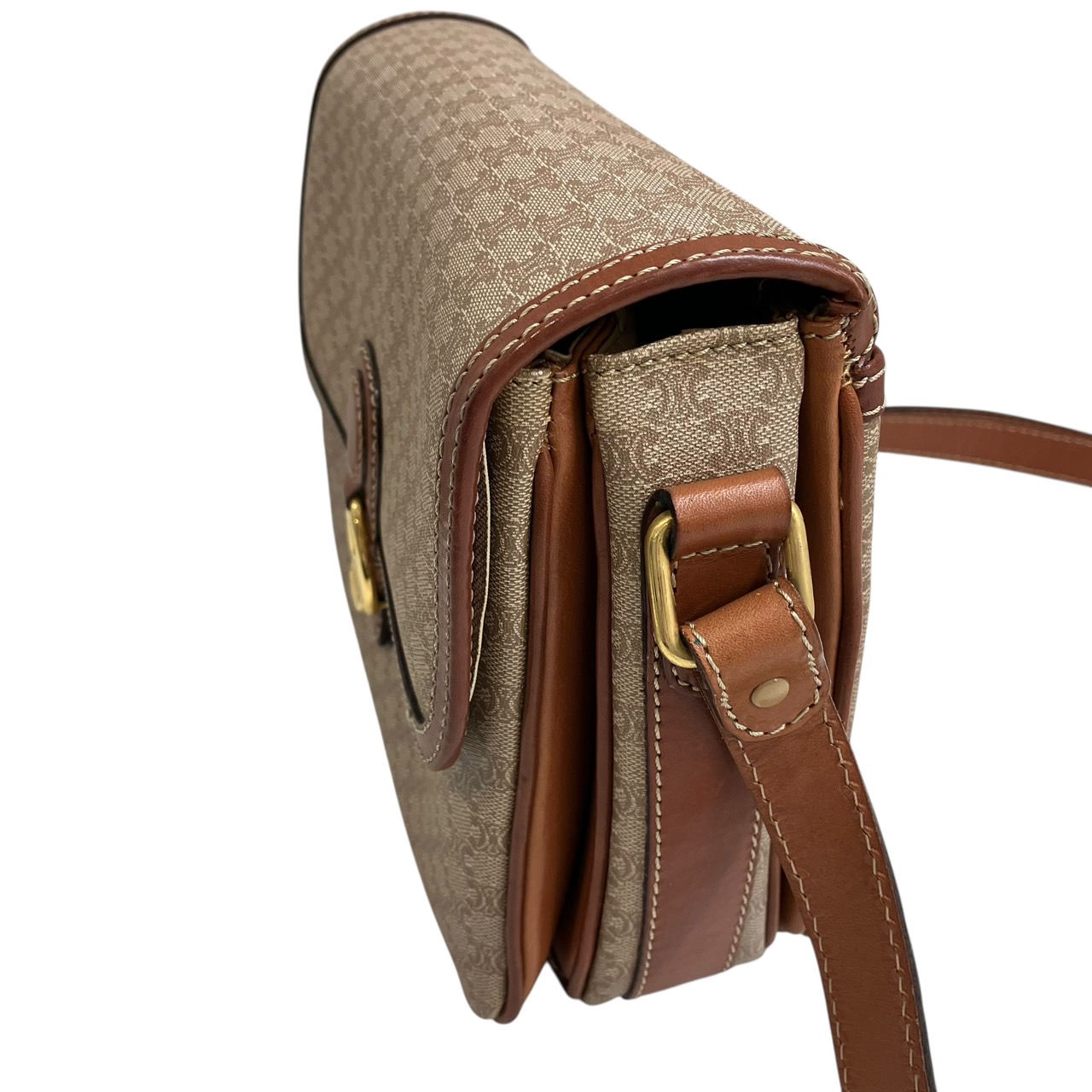 ショルダーバッグ ハーフフラップ マカダム柄 PVC レザー ベージュxブラウン系
