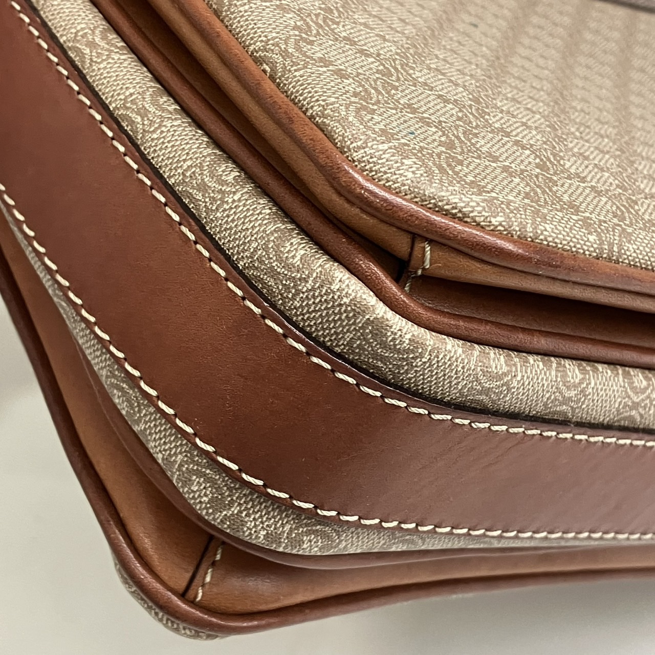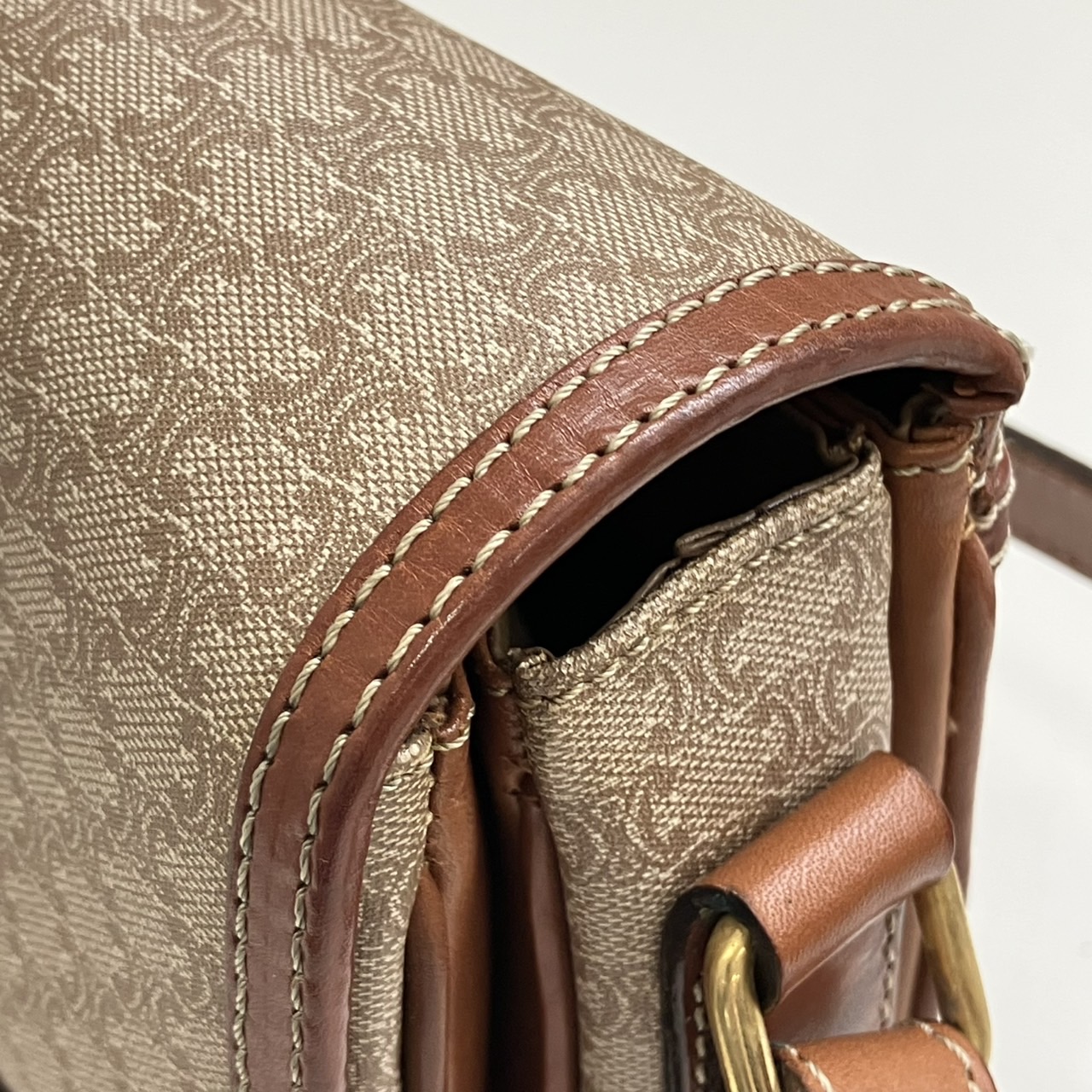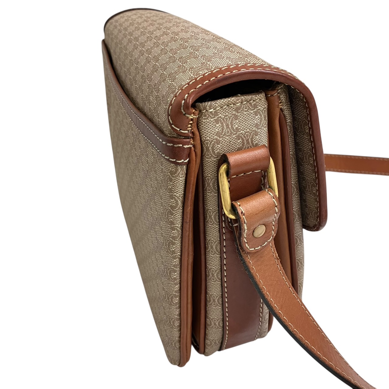 ショルダーバッグ ハーフフラップ マカダム柄 PVC レザー ベージュxブラウン系