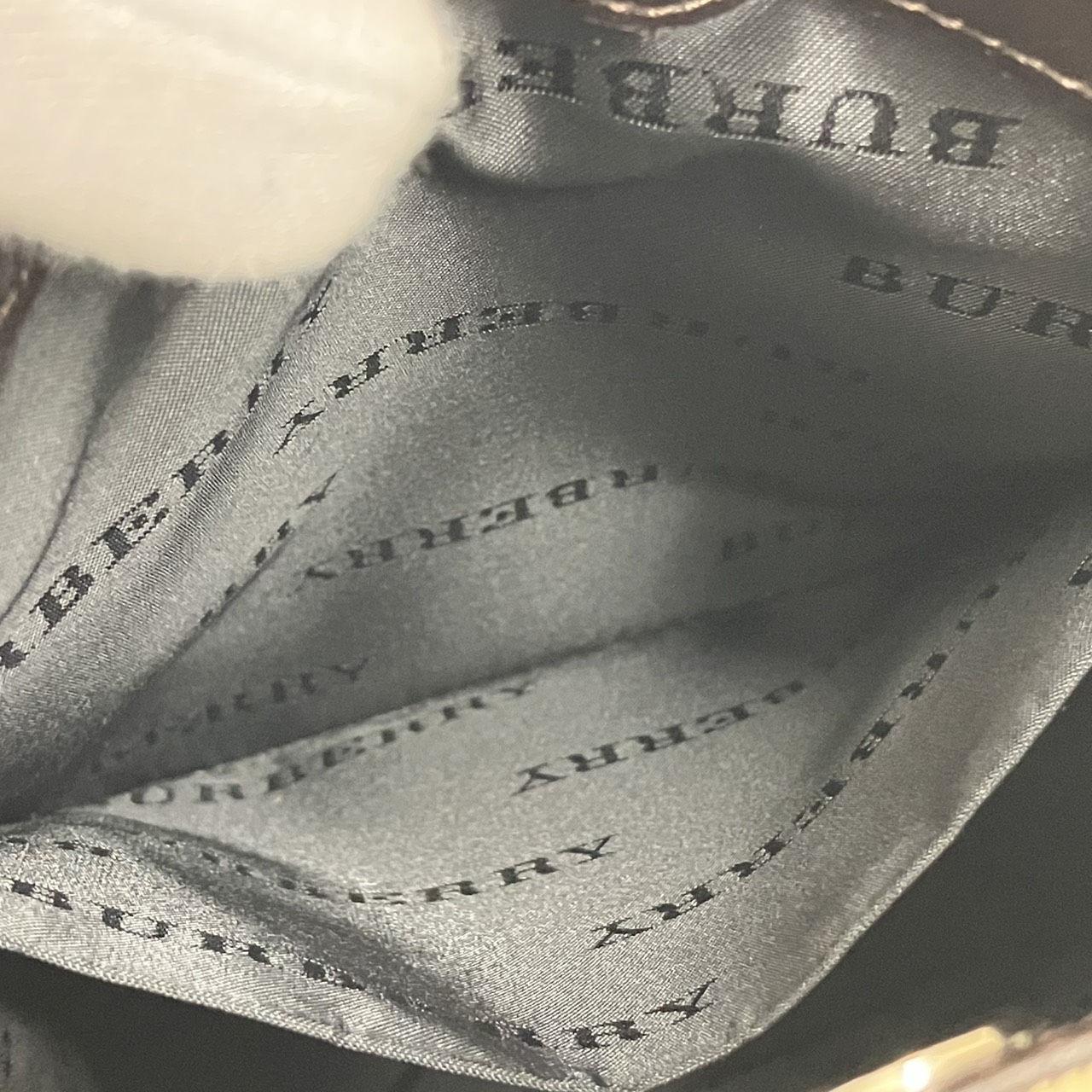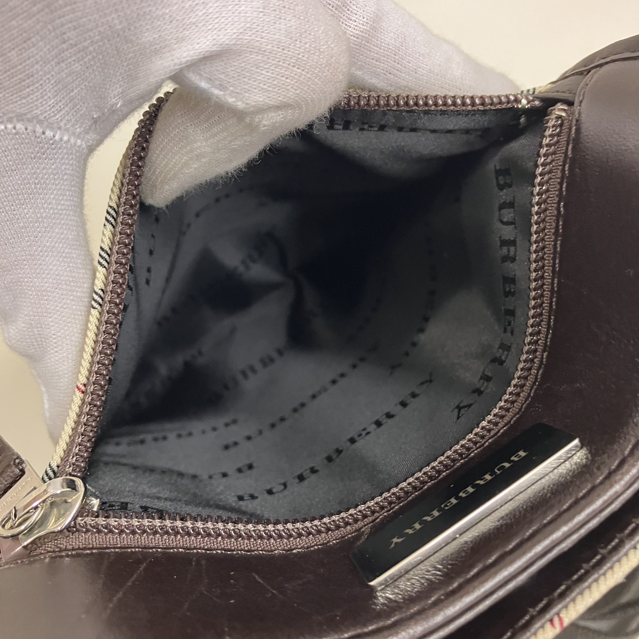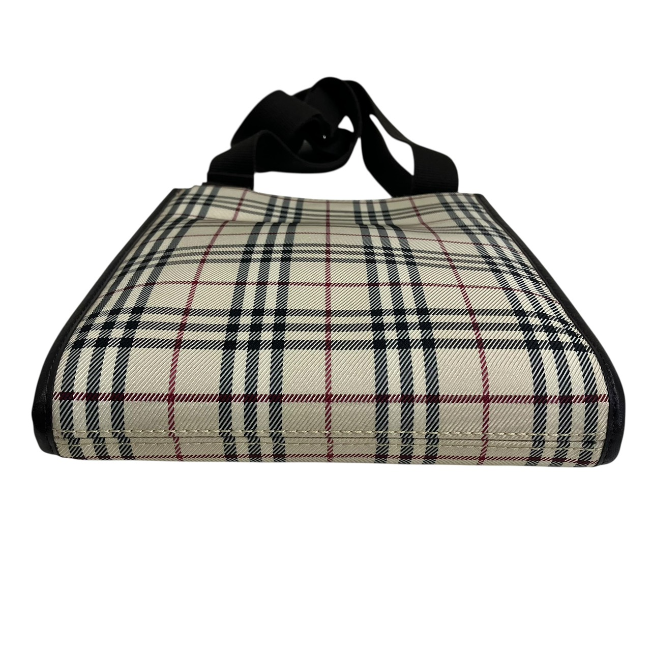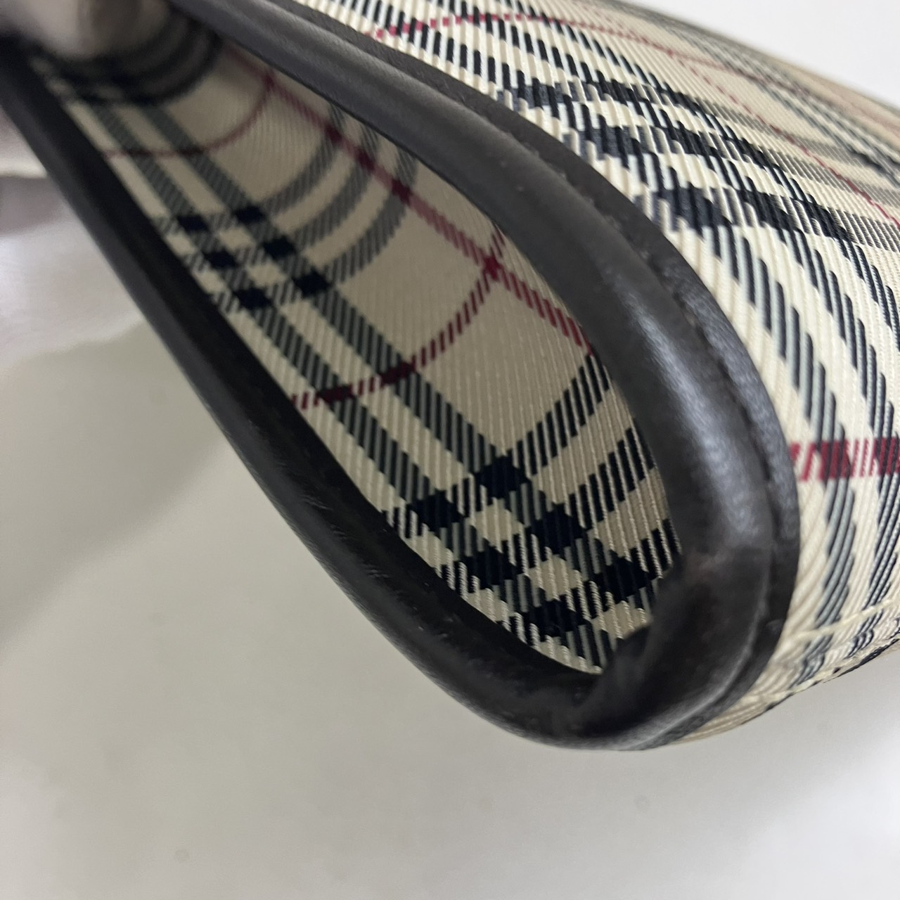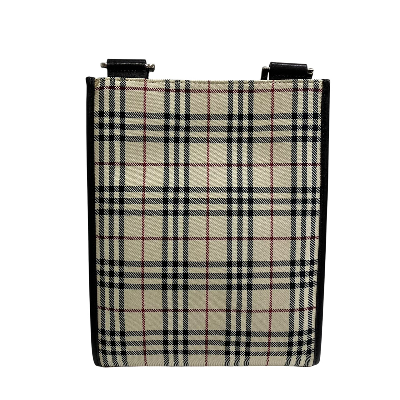 ショルダーバッグ クロスボディノバチェック柄 キャンバス レザー ベージュxダークブラウン系