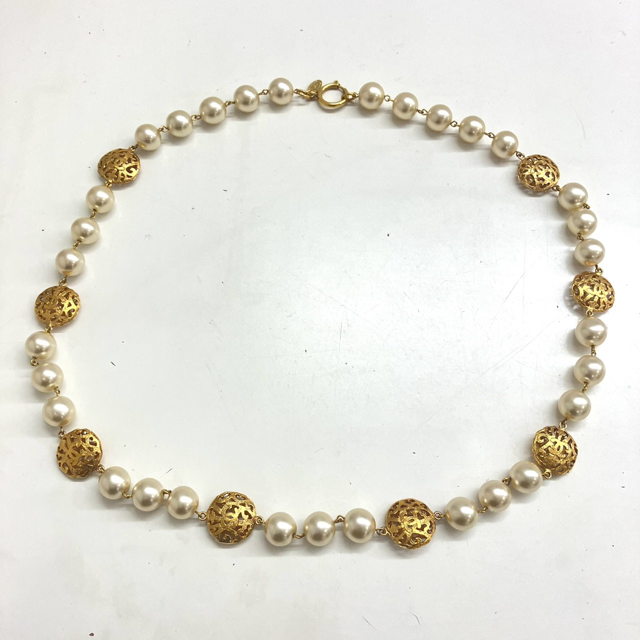 フェイクパールロングネックレス ココマーク ゴールドカラー #25