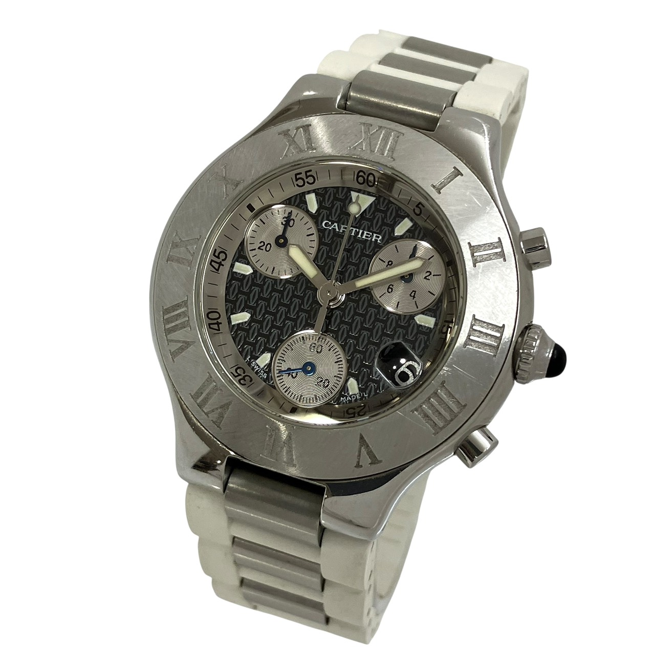 マスト21 クロノスカフ Qz SS 白ラバーベルト 黒文字盤 2424 稼働品
