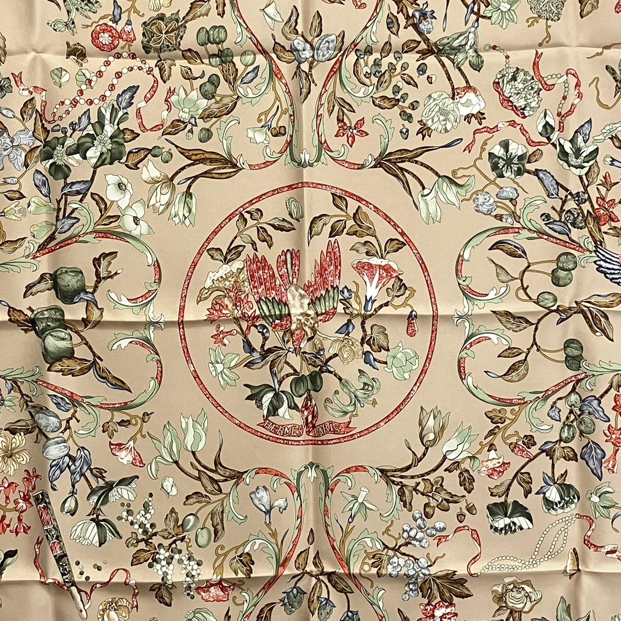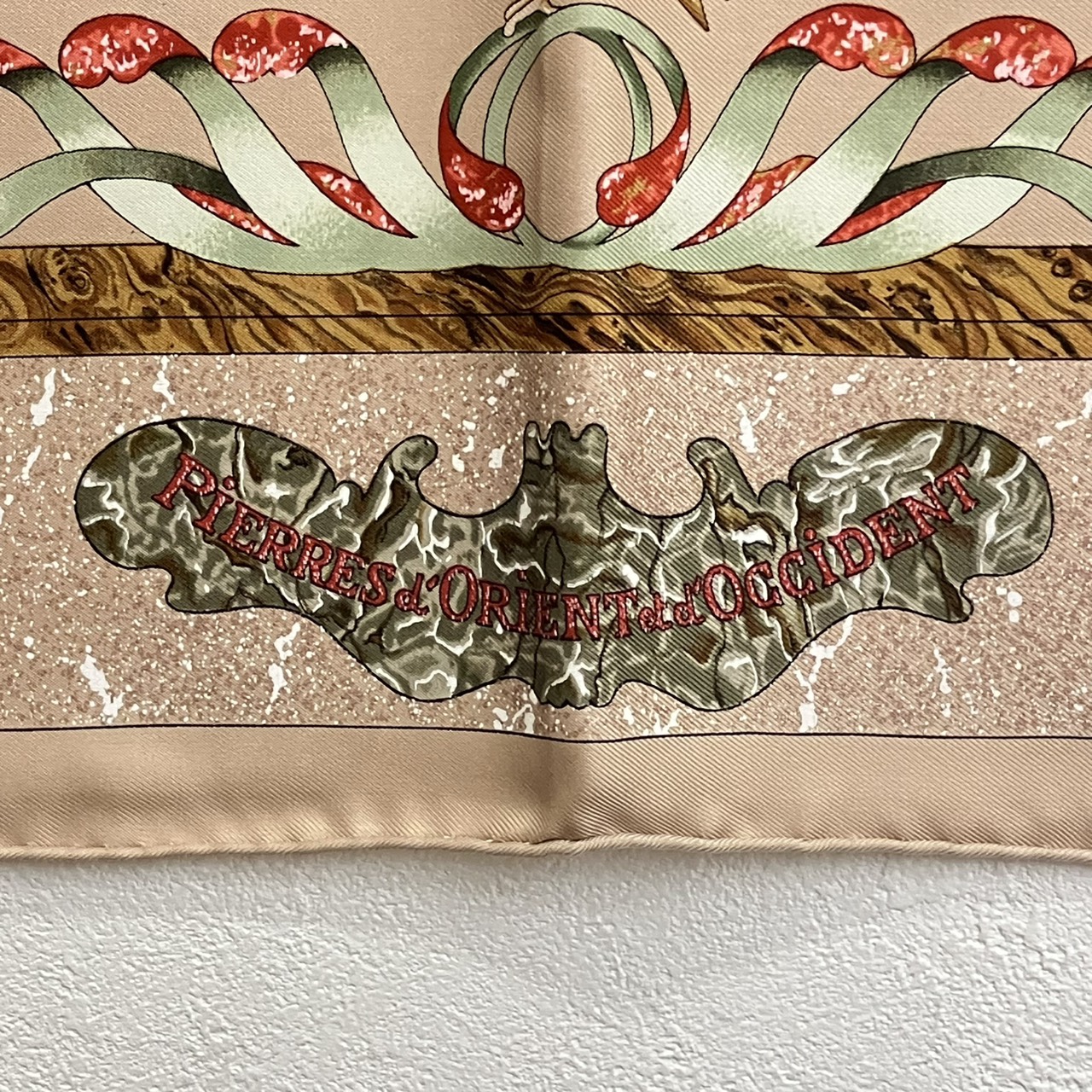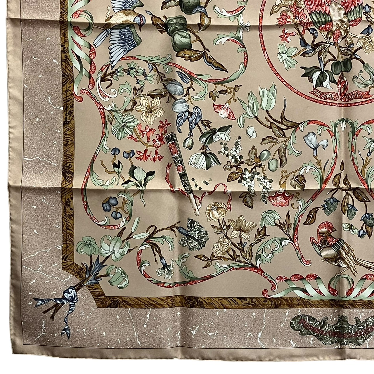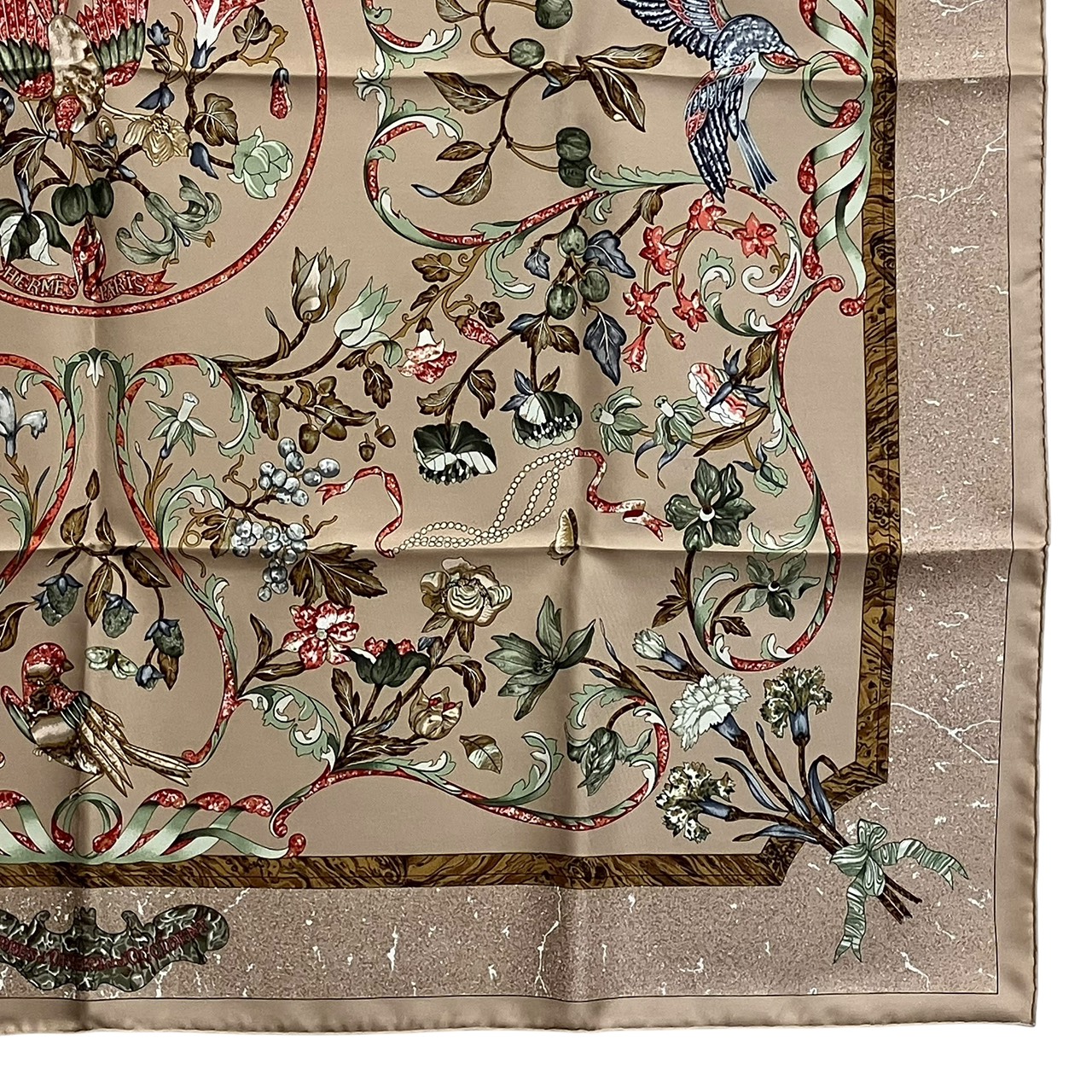 カレ90 スカーフ PIERRES d' ORIENT et d' OCCIDENT 東洋の石と西洋の石細工 シルク ベージュ系