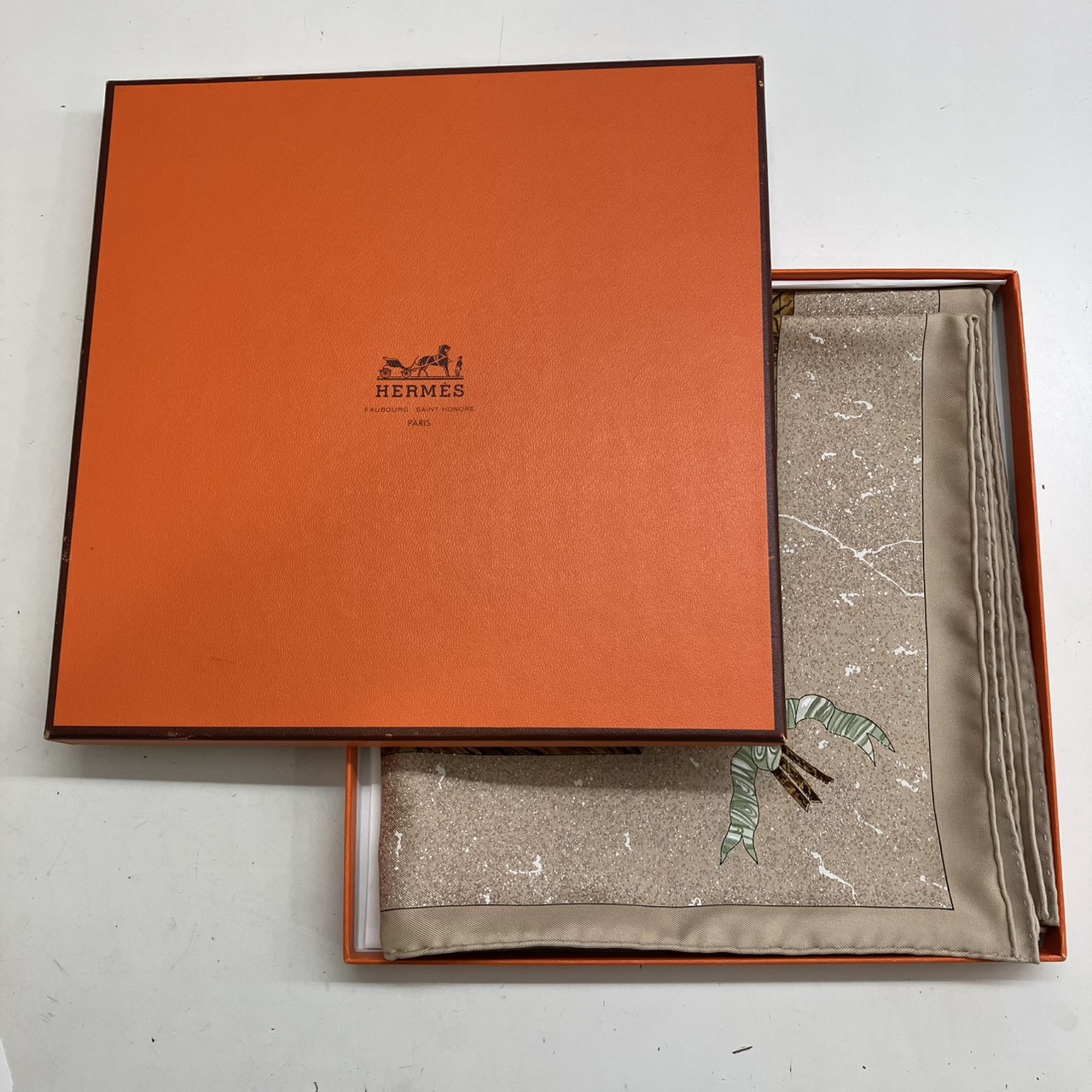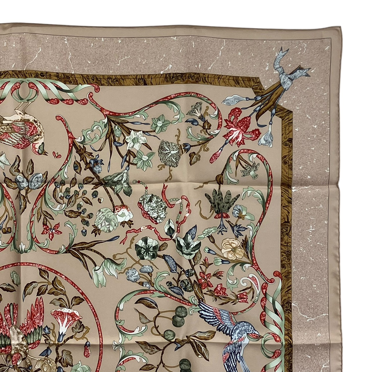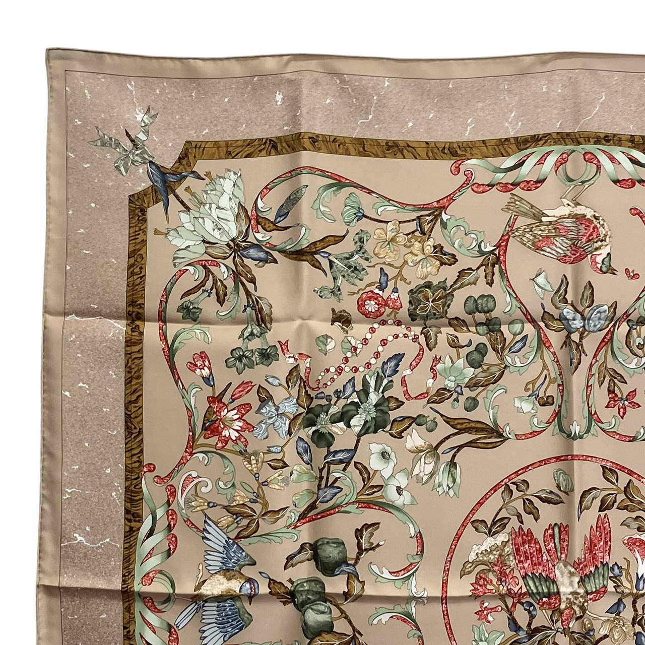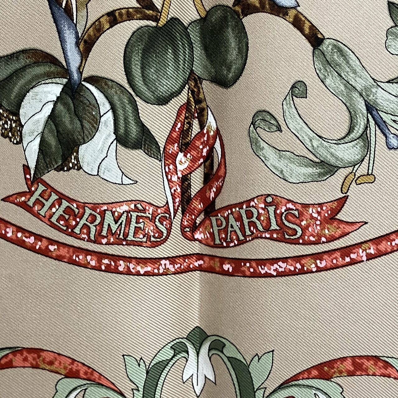 カレ90 スカーフ PIERRES d' ORIENT et d' OCCIDENT 東洋の石と西洋の石細工 シルク ベージュ系
