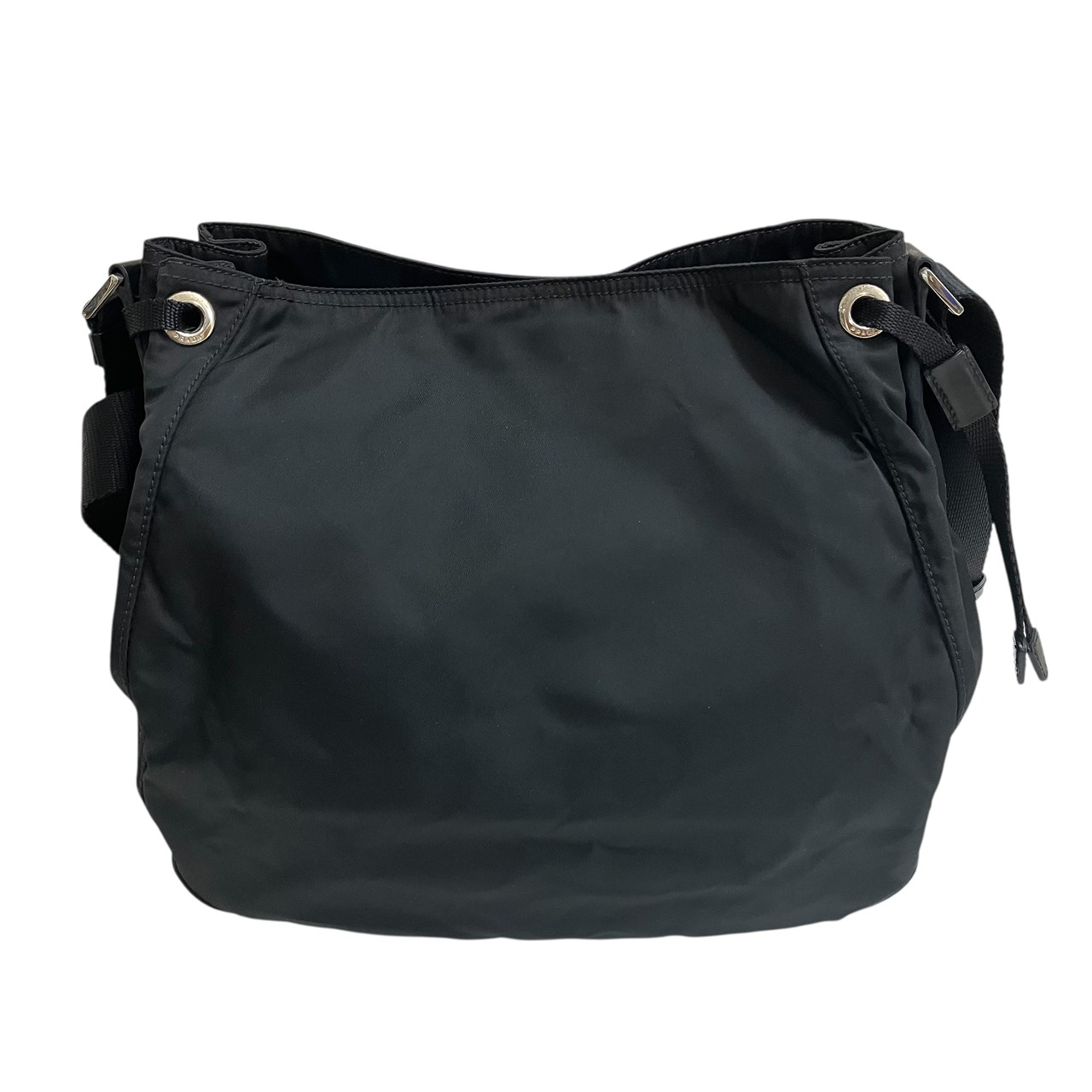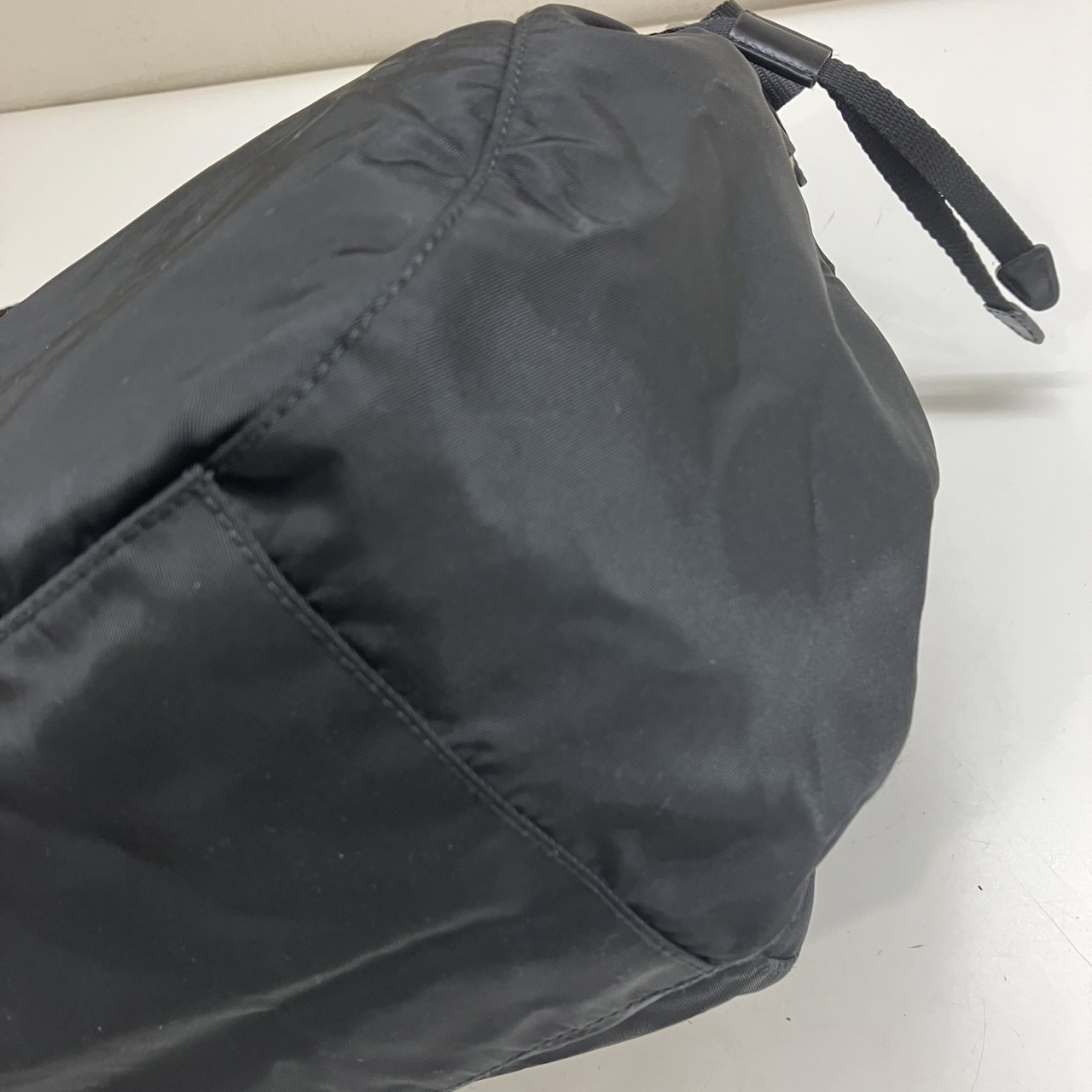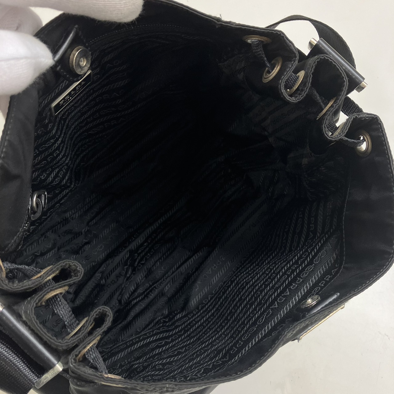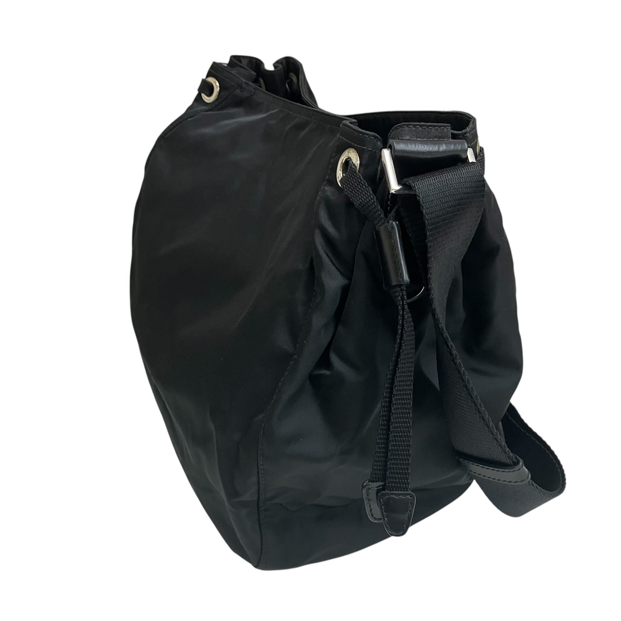 ショルダーバッグ 巾着 ナイロン 黒 三角ロゴプレート