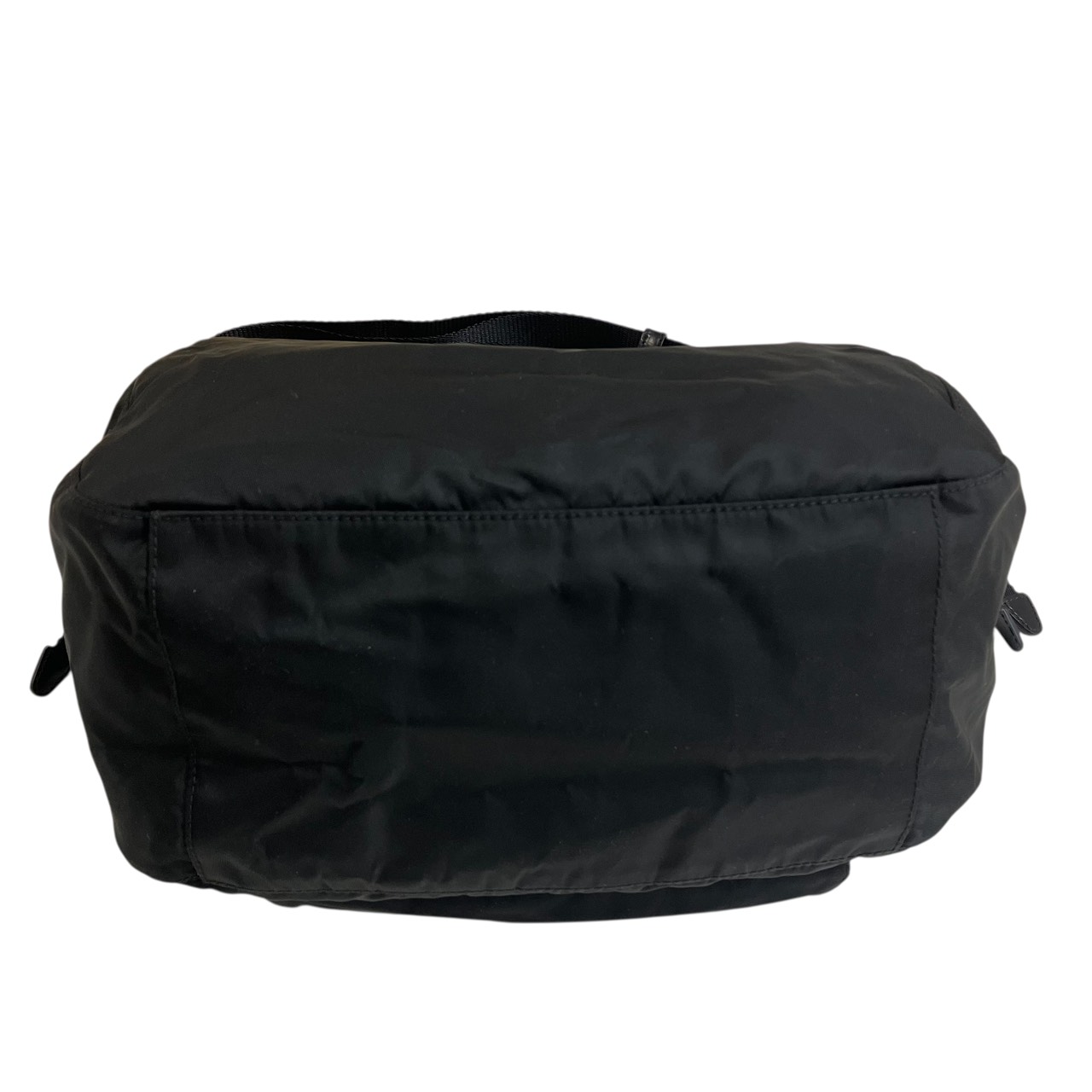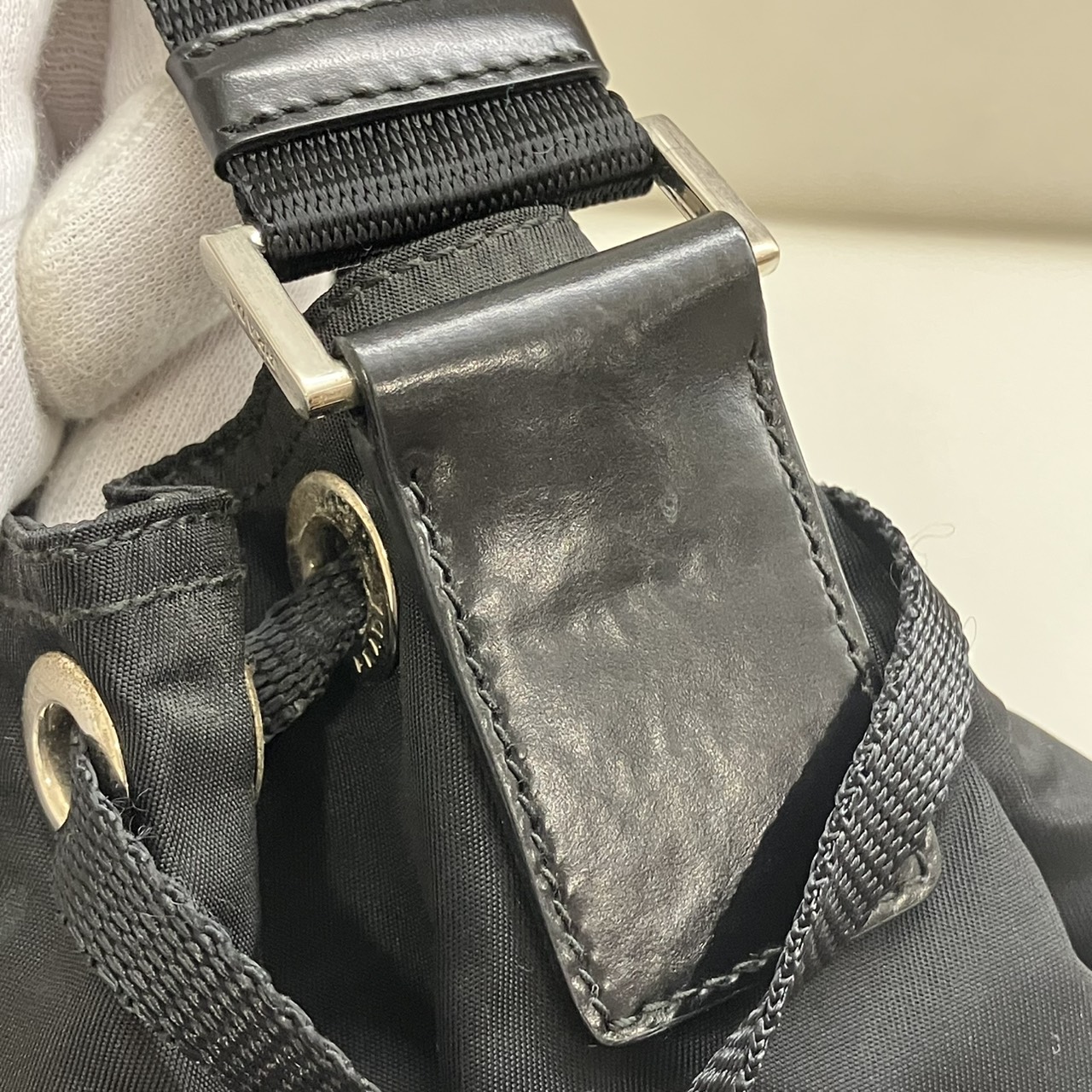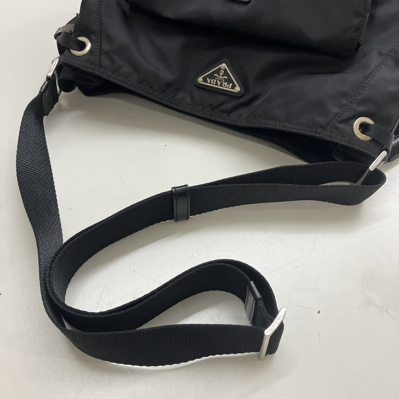 ショルダーバッグ 巾着 ナイロン 黒 三角ロゴプレート