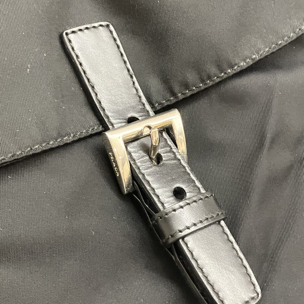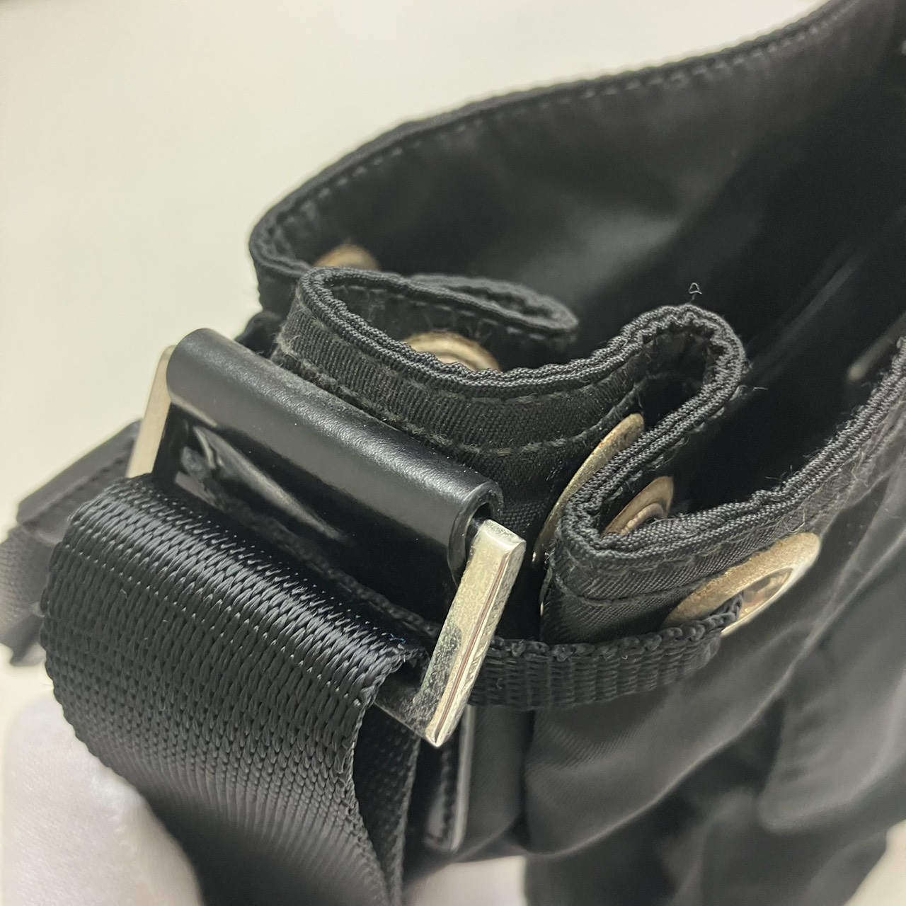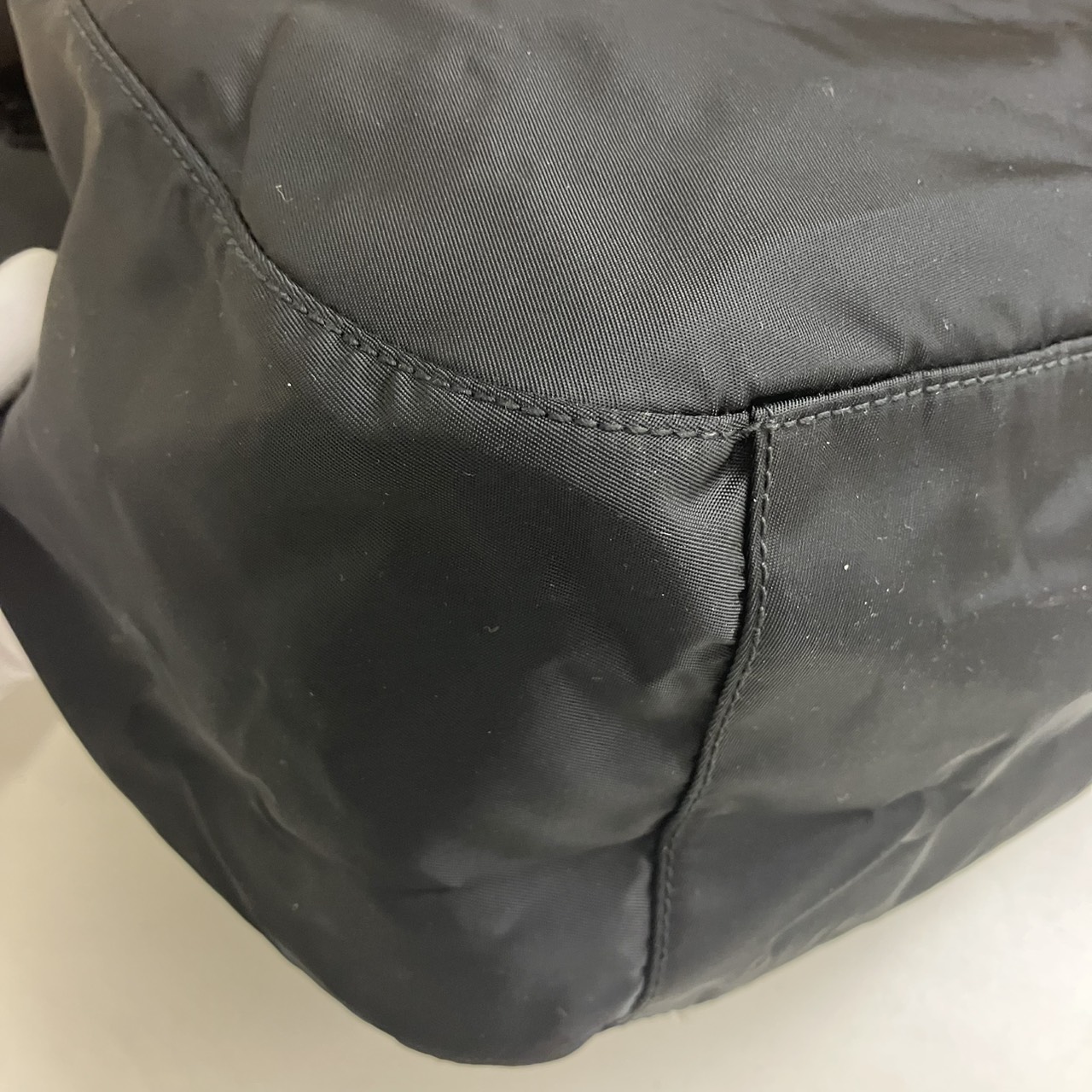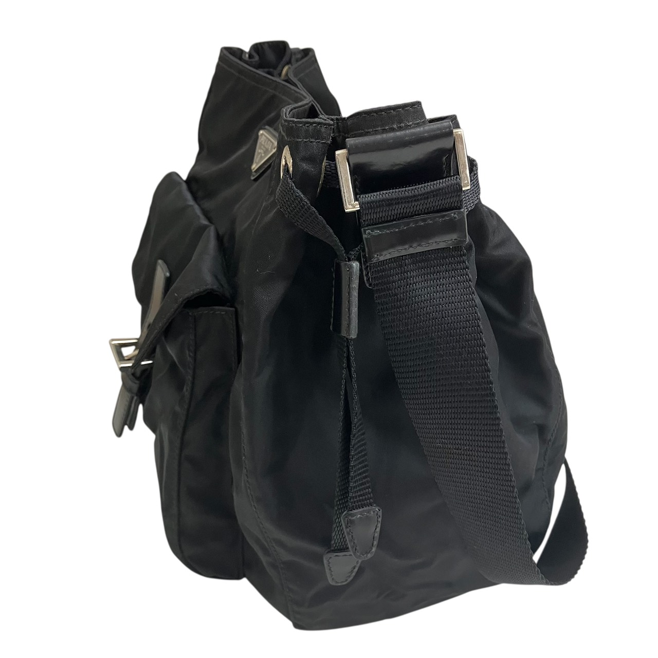 ショルダーバッグ 巾着 ナイロン 黒 三角ロゴプレート