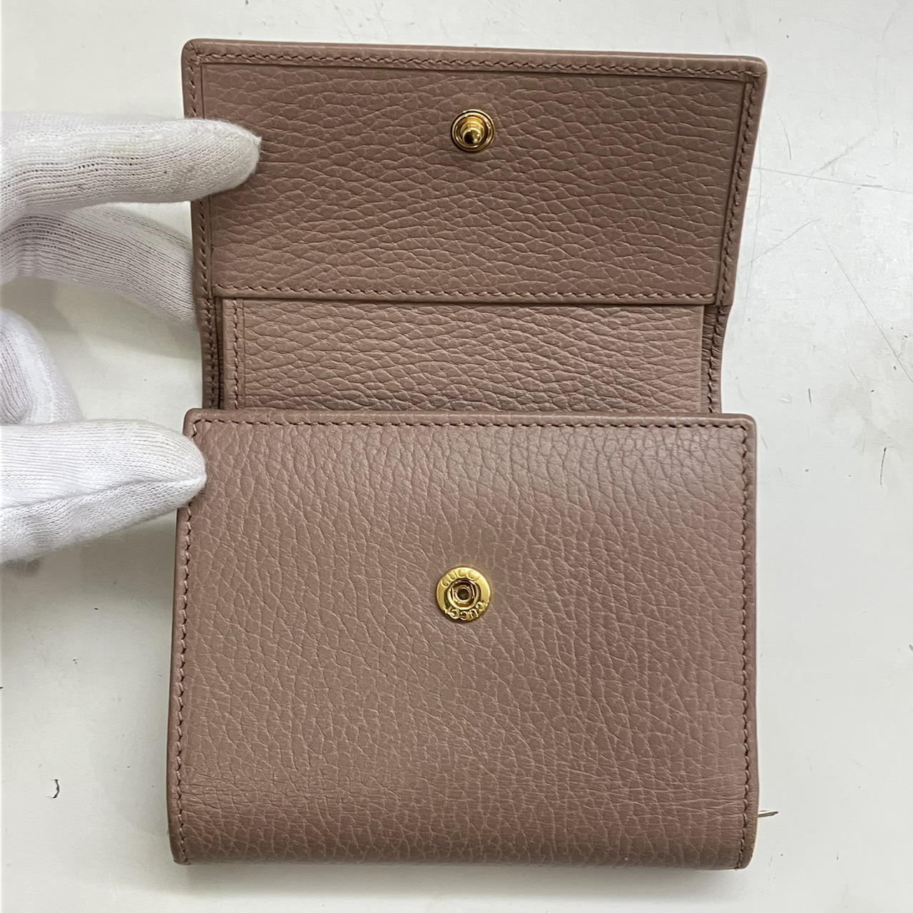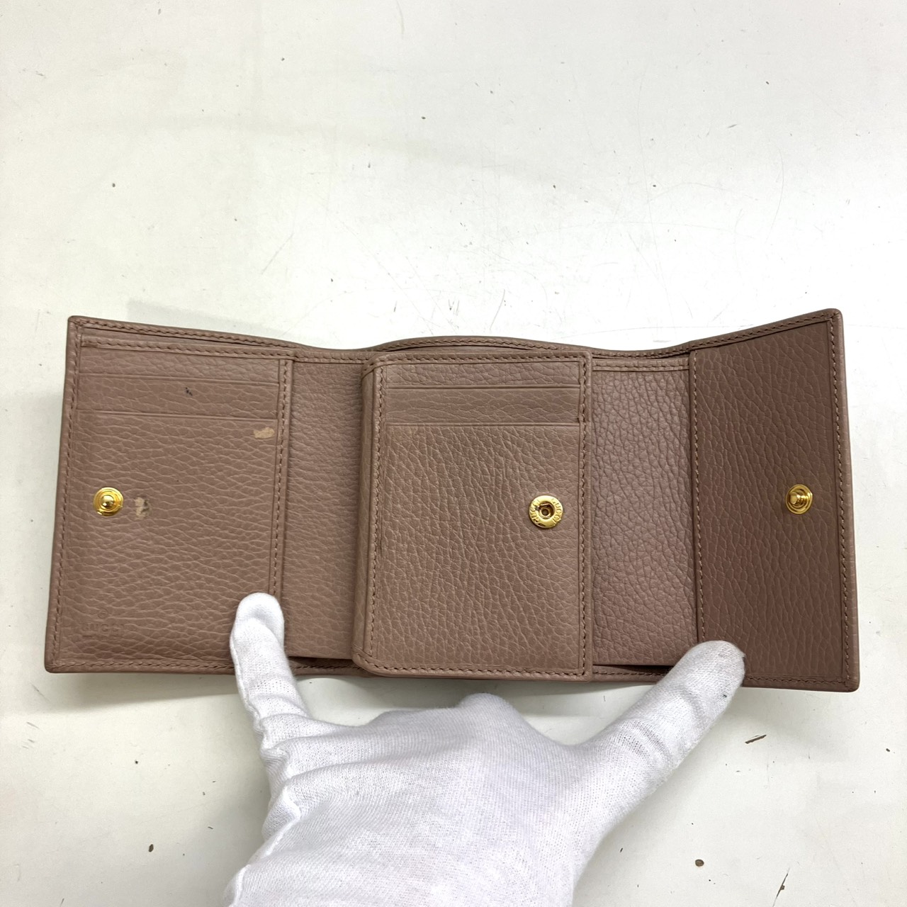 GGマーモント 三つ折り財布 レザー ピンクベージュ系 546584