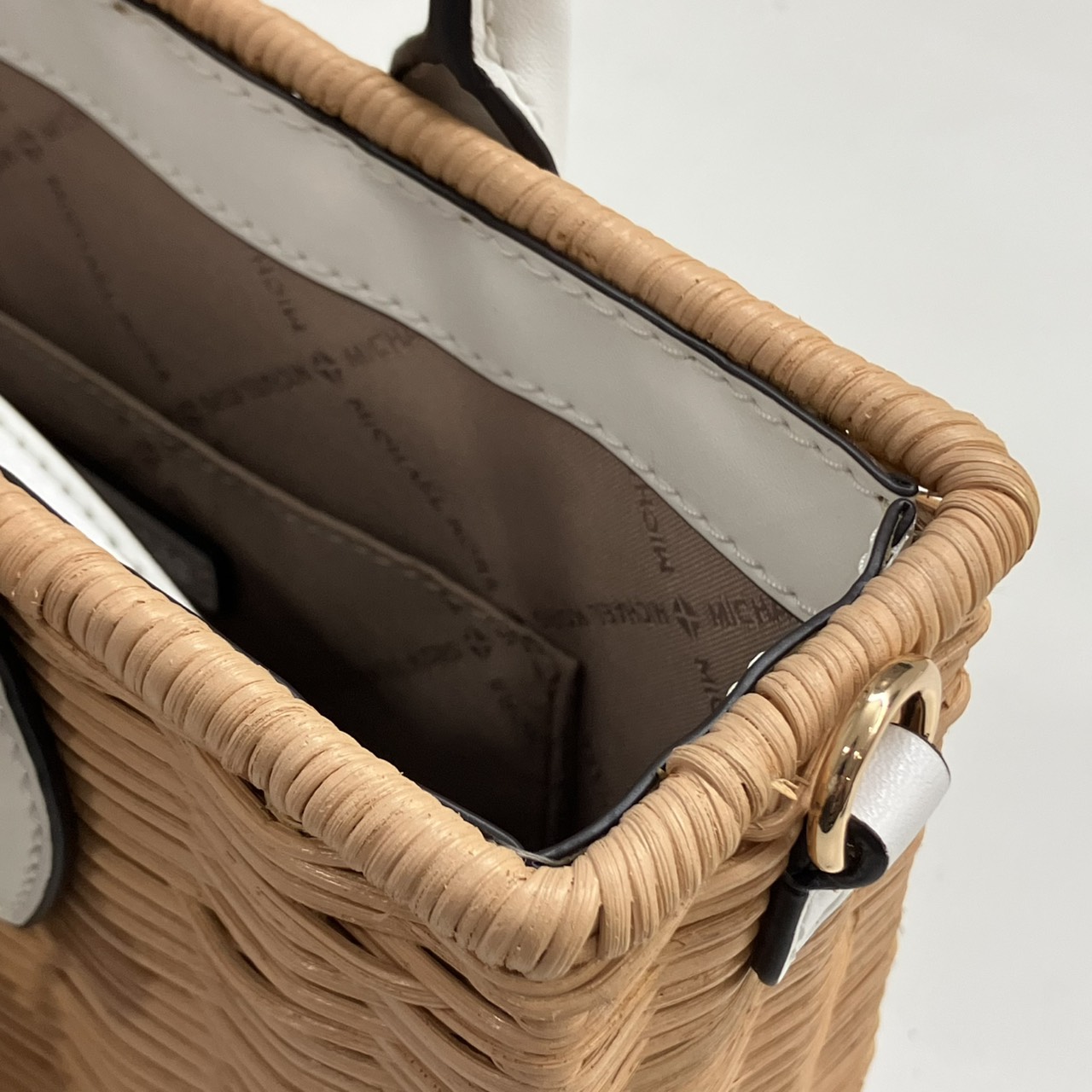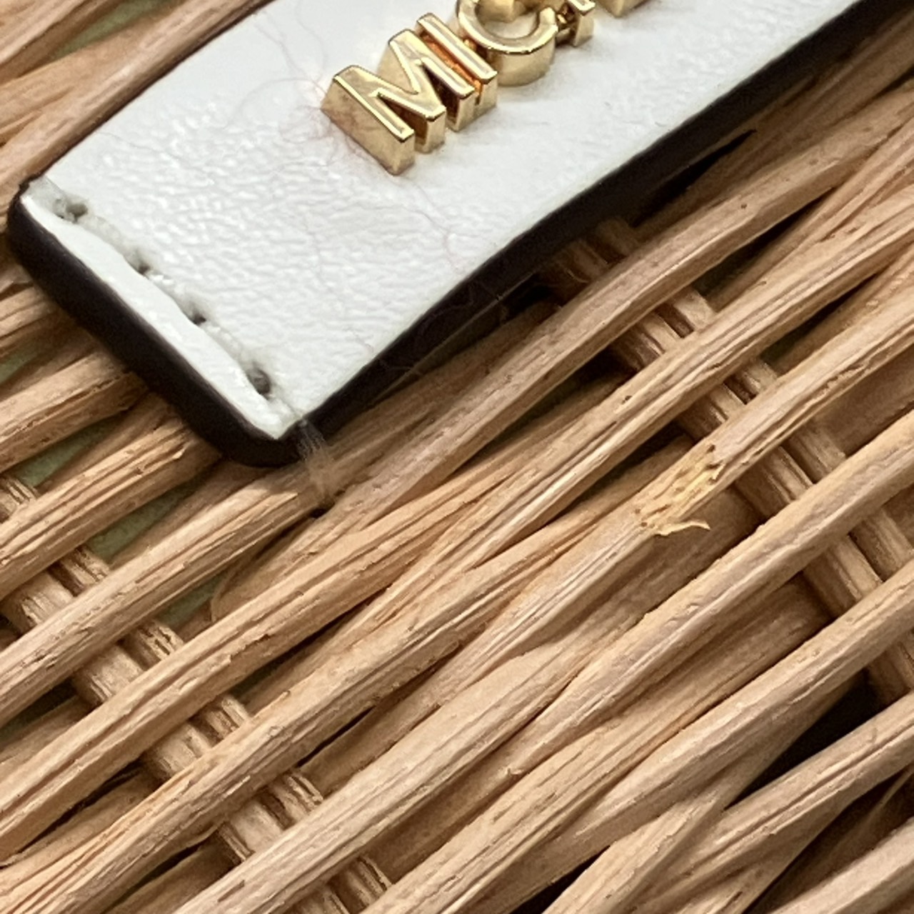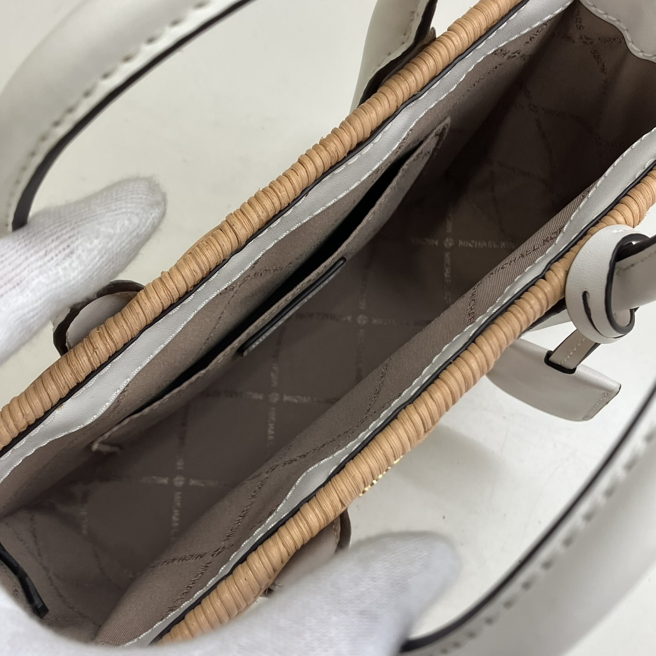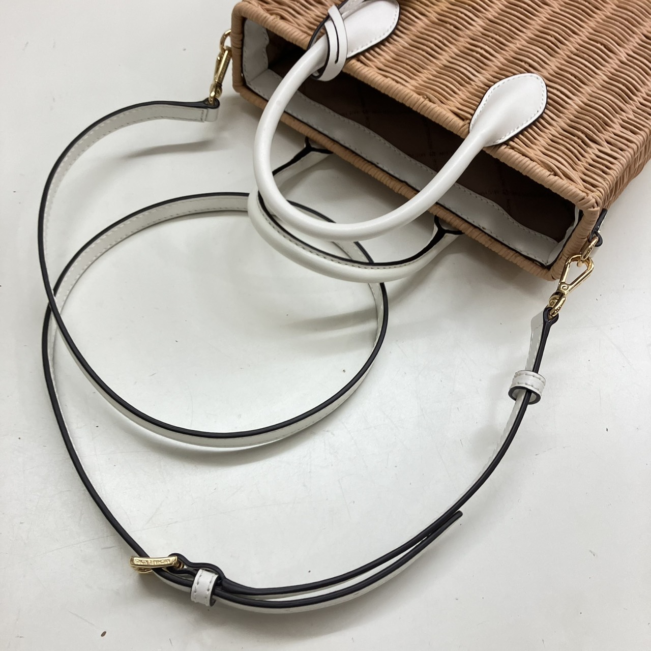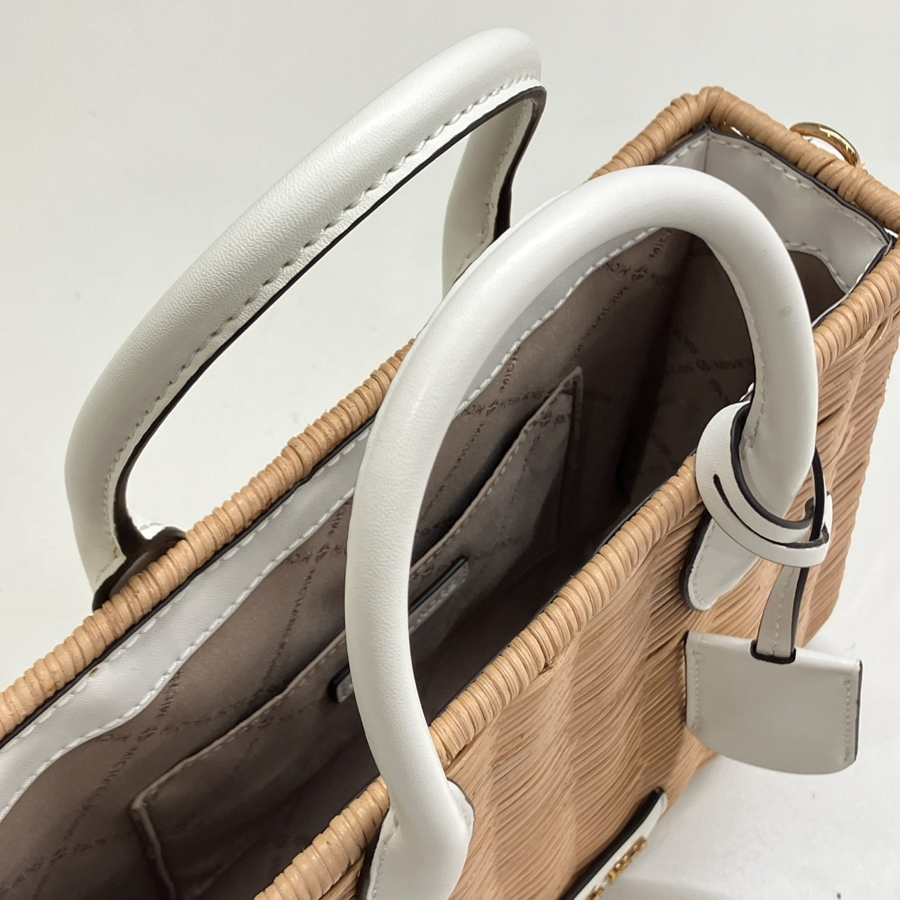 ミレラ スモールショッパー 2WAYハンドバッグ ストロー レザー ベージュ系x白 35T4G7ZC5W