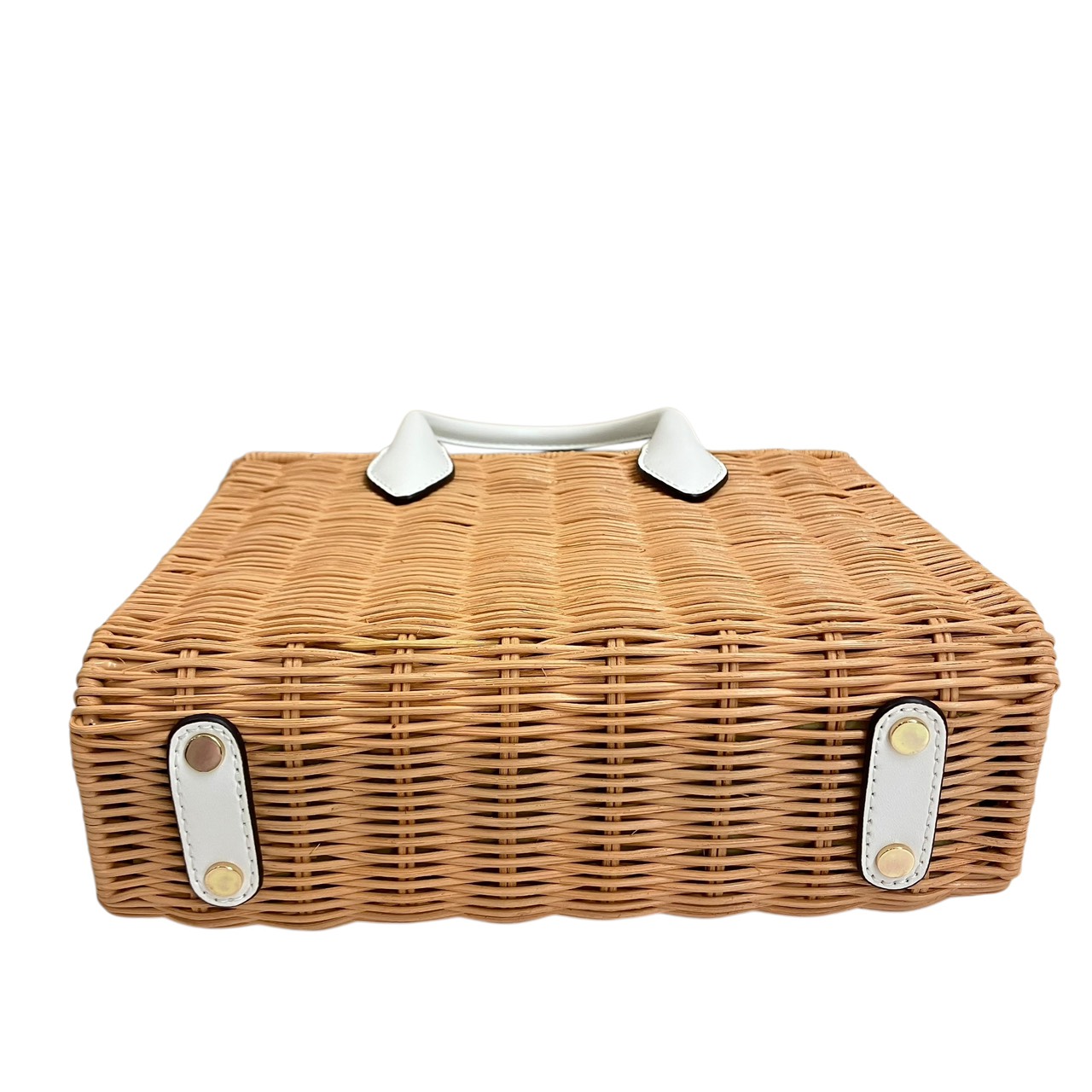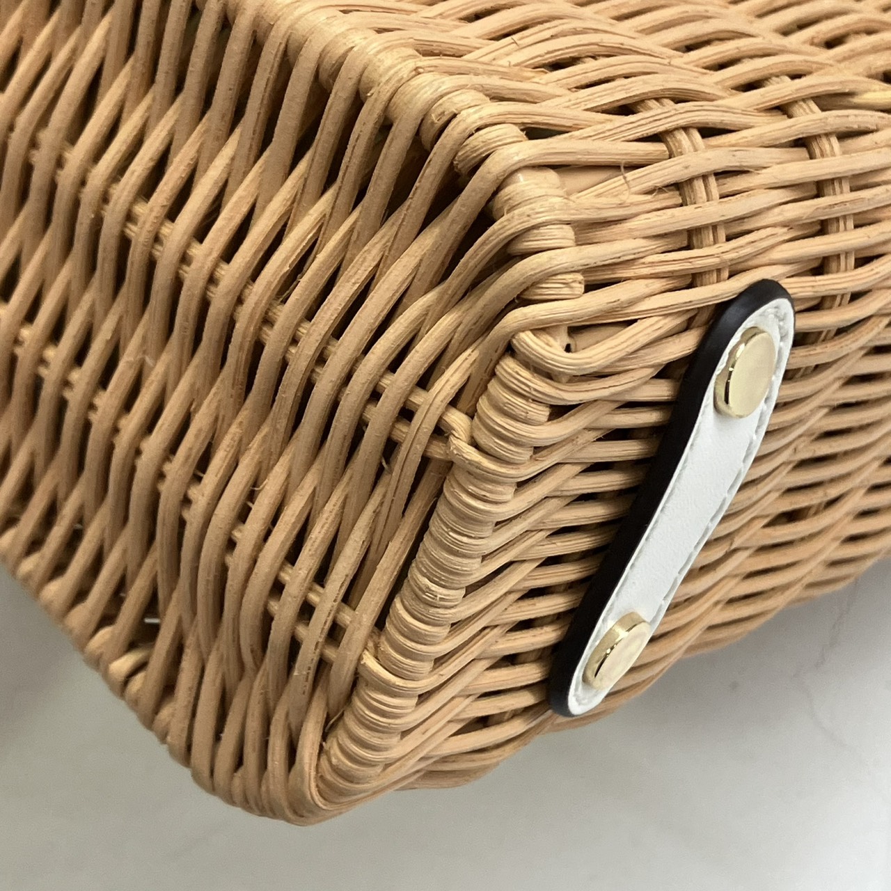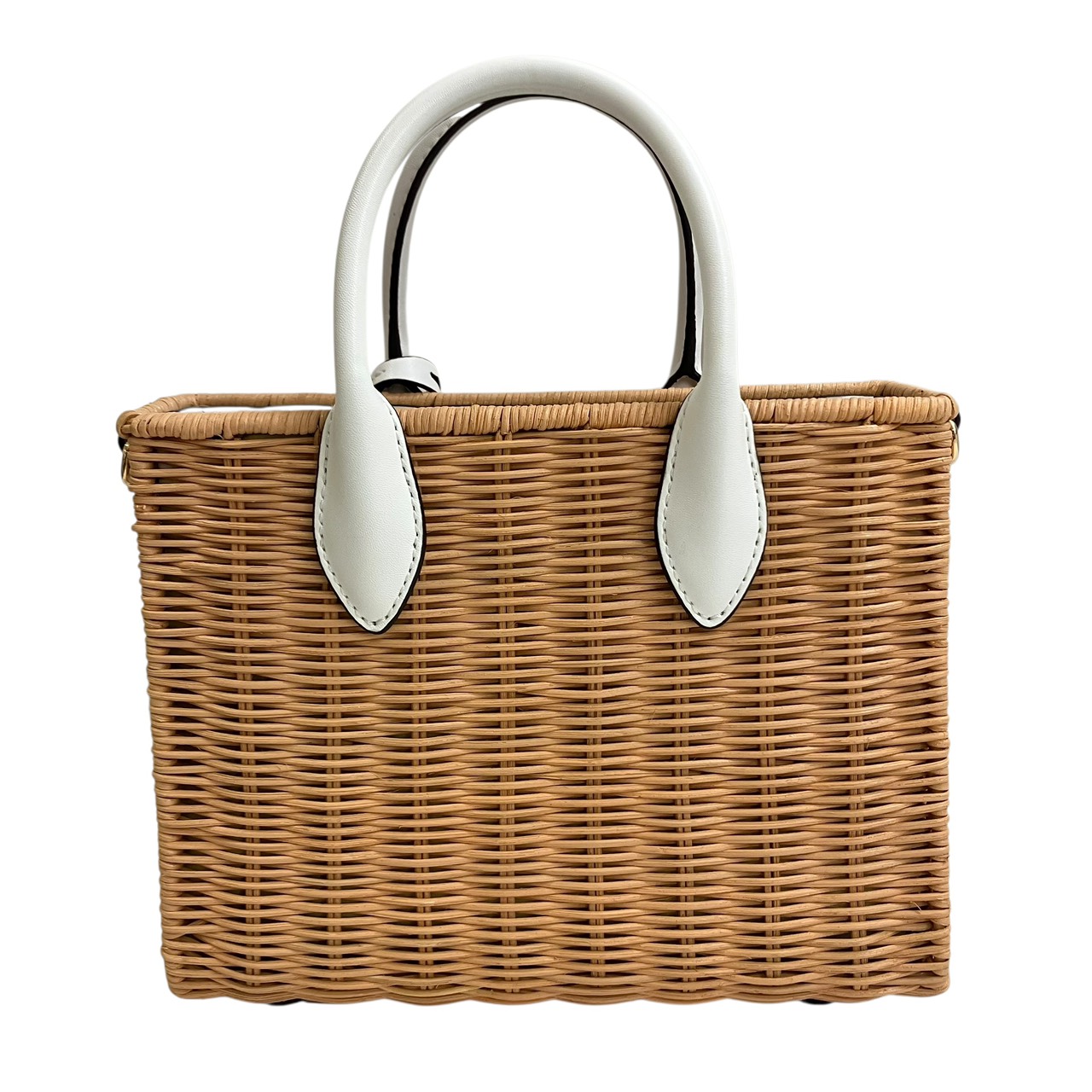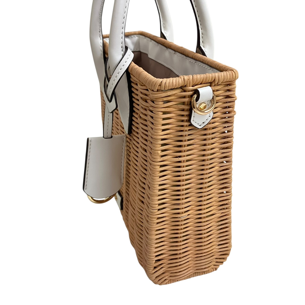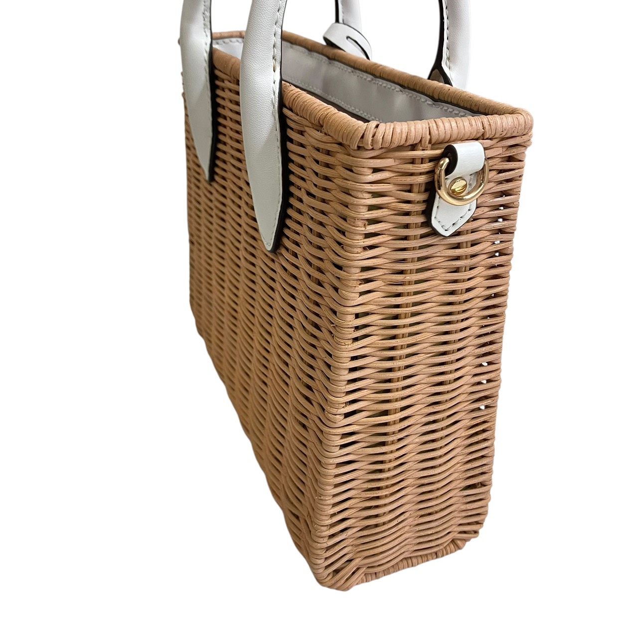 ミレラ スモールショッパー 2WAYハンドバッグ ストロー レザー ベージュ系x白 35T4G7ZC5W