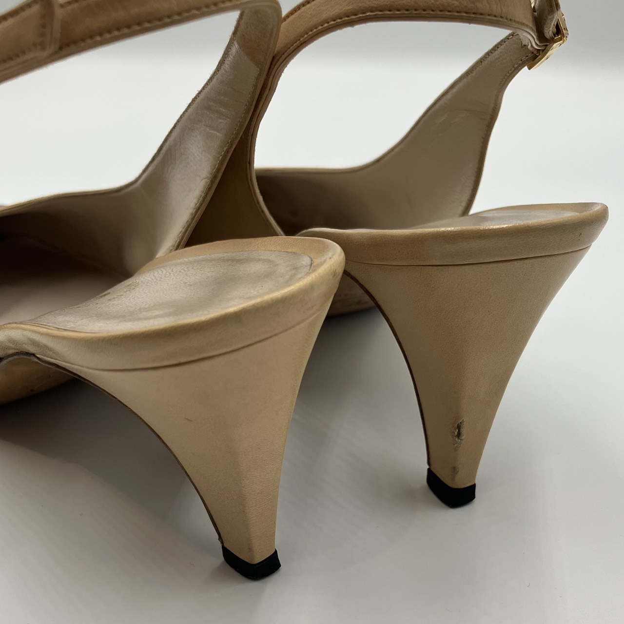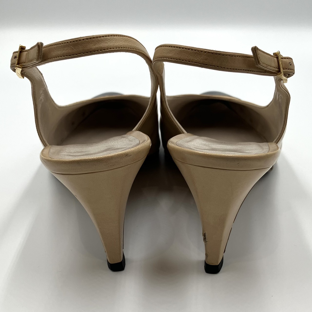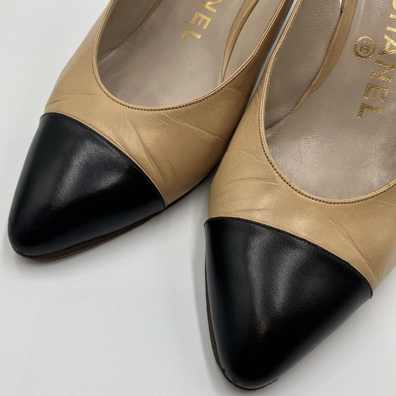 レザー パンプス ヒール バイカラー ベージュ系 サイズ36 1/2