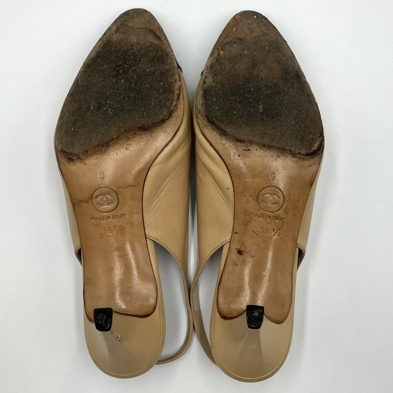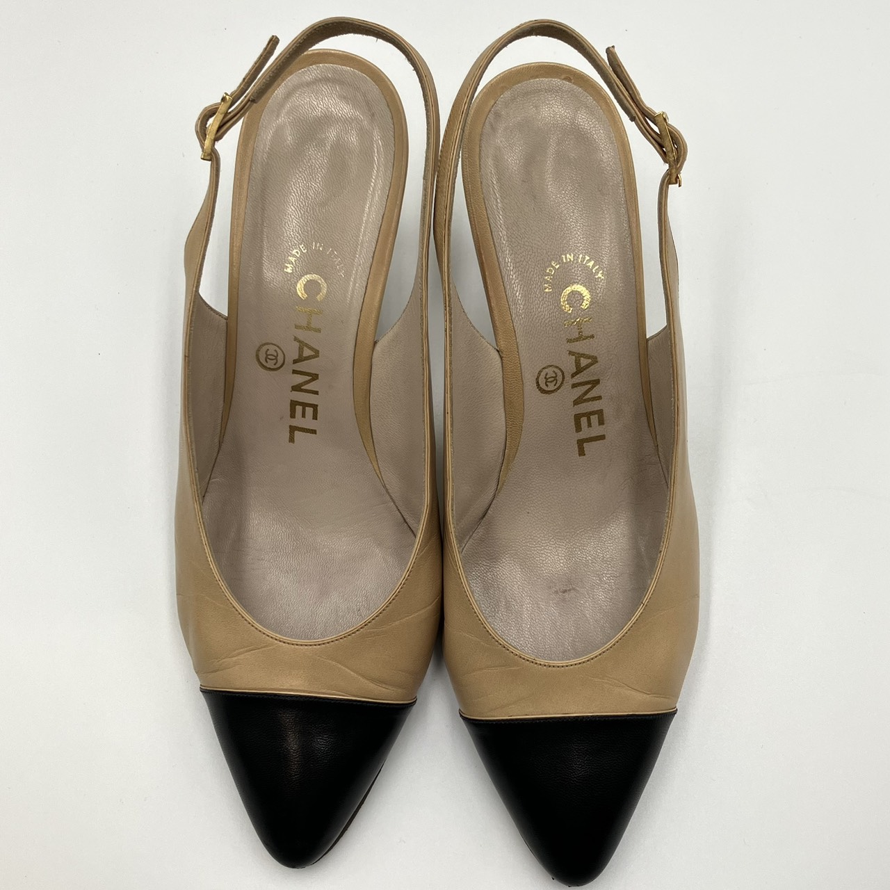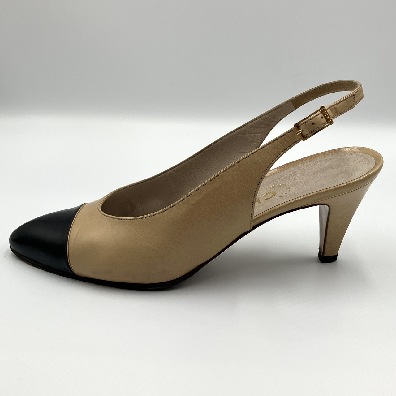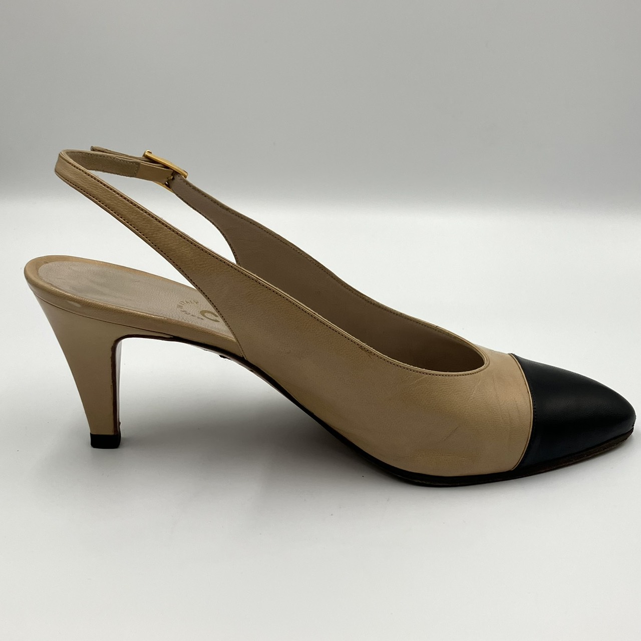 レザー パンプス ヒール バイカラー ベージュ系 サイズ36 1/2