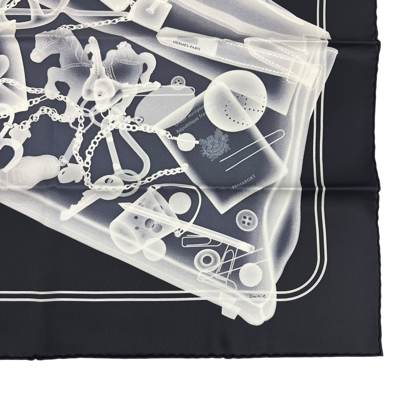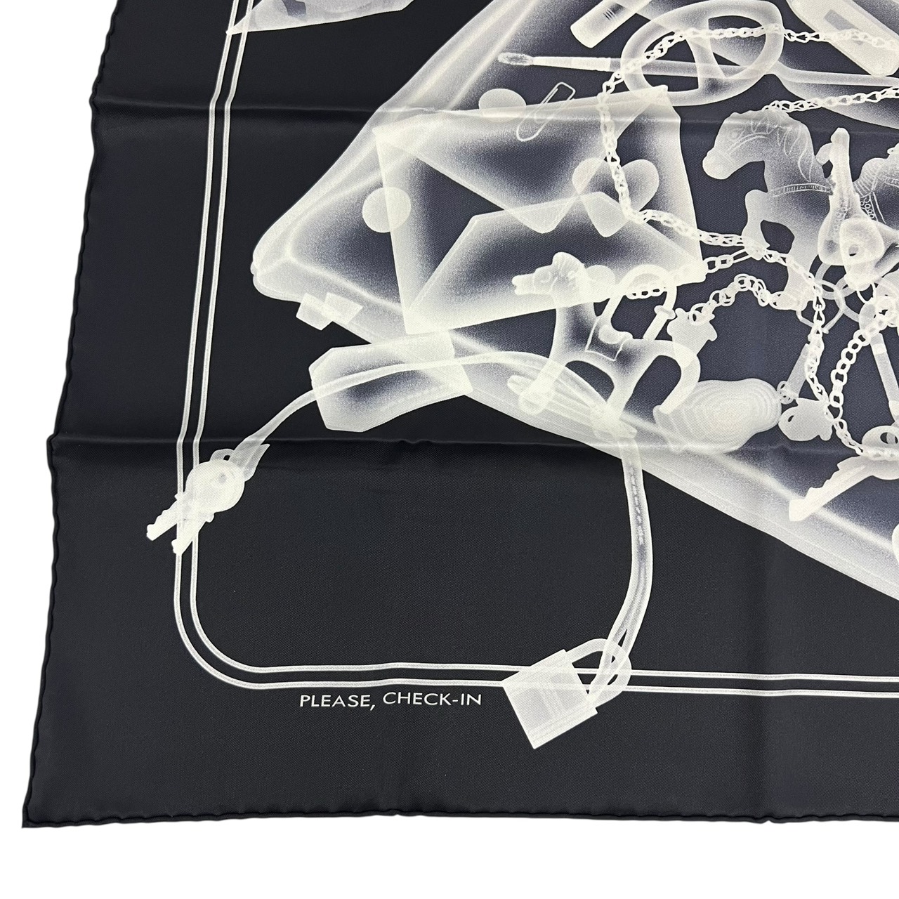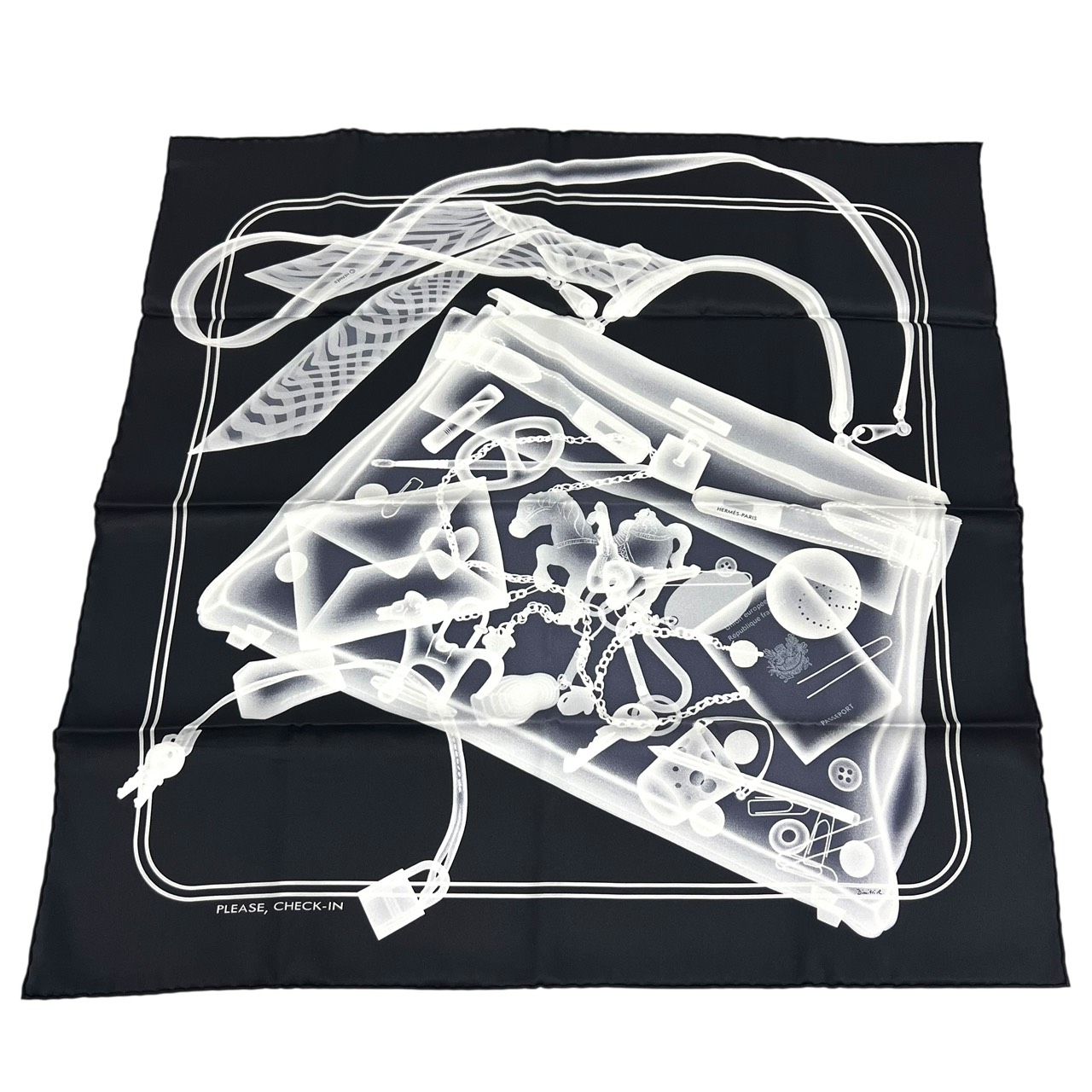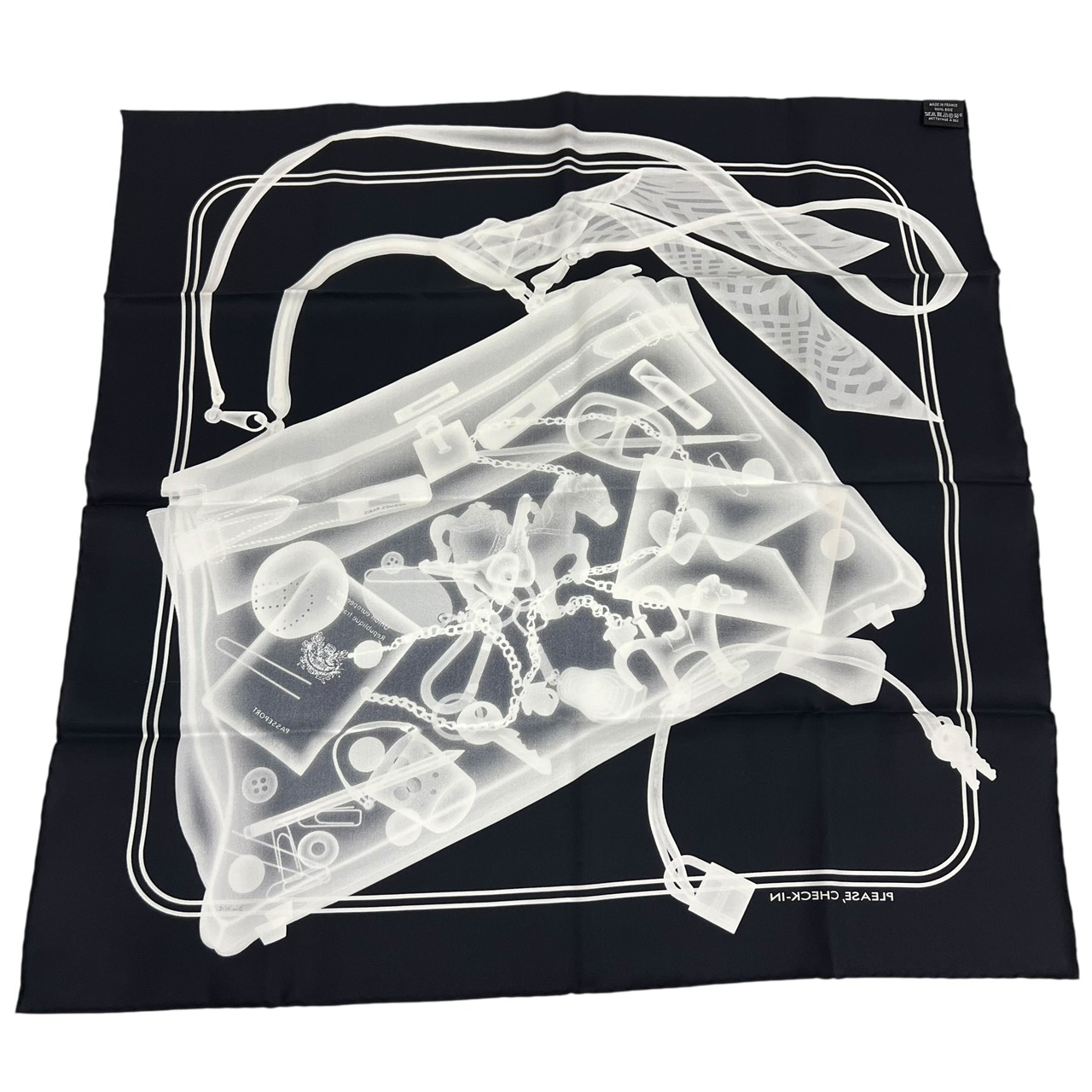カレ65 大判シルクスカーフ プリーズチェックイン ブラック×ホワイト系 美品