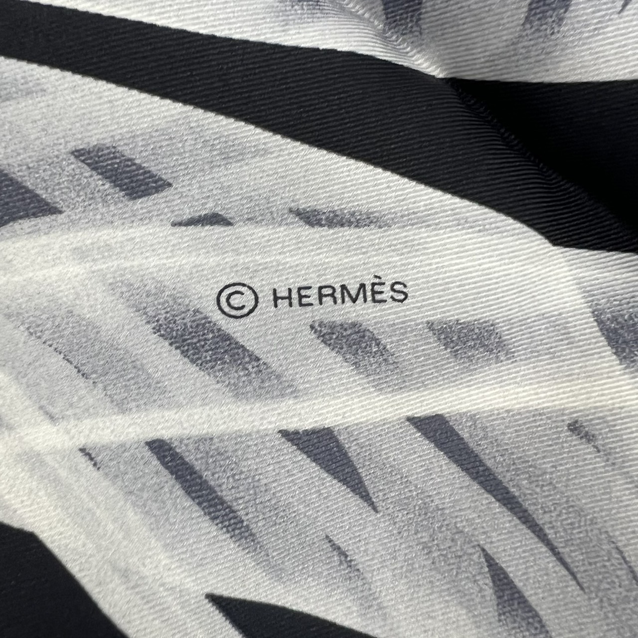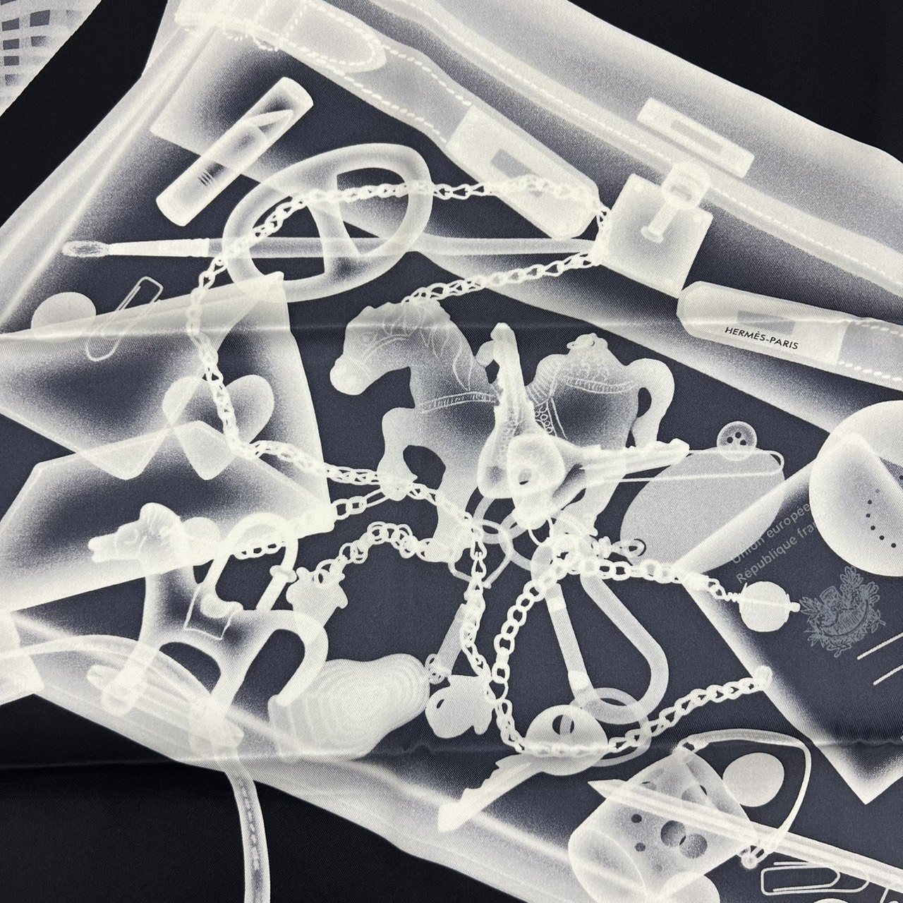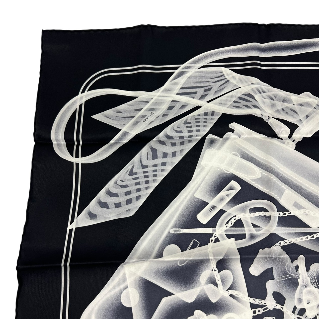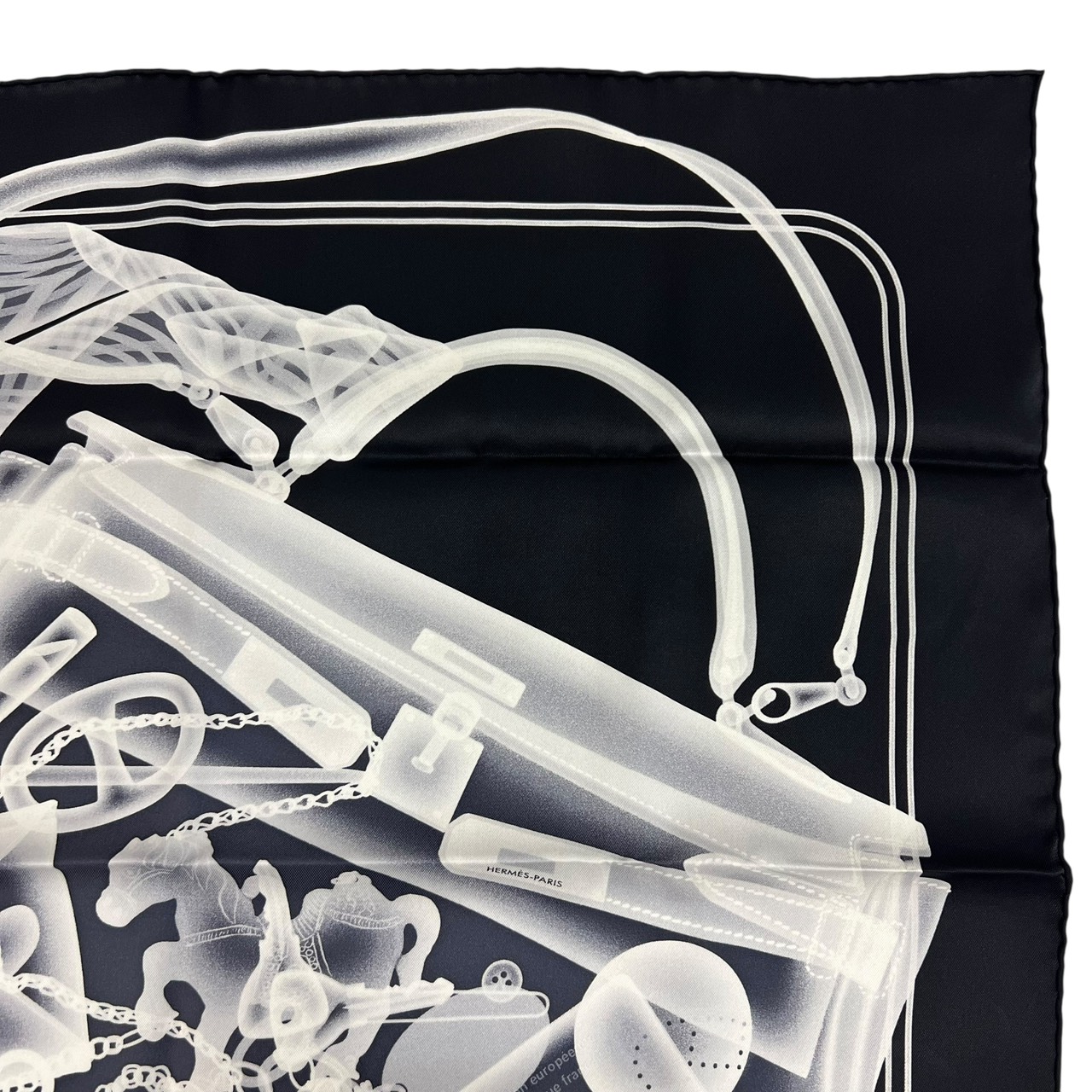 カレ65 大判シルクスカーフ プリーズチェックイン ブラック×ホワイト系 美品
