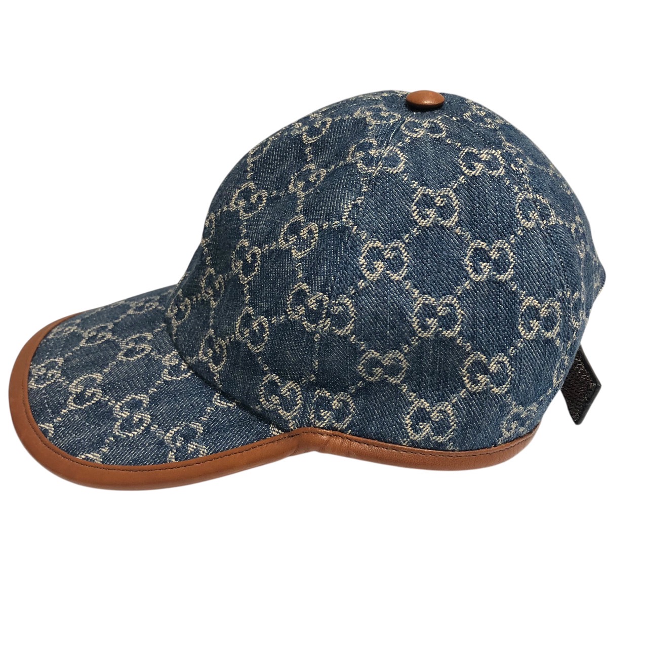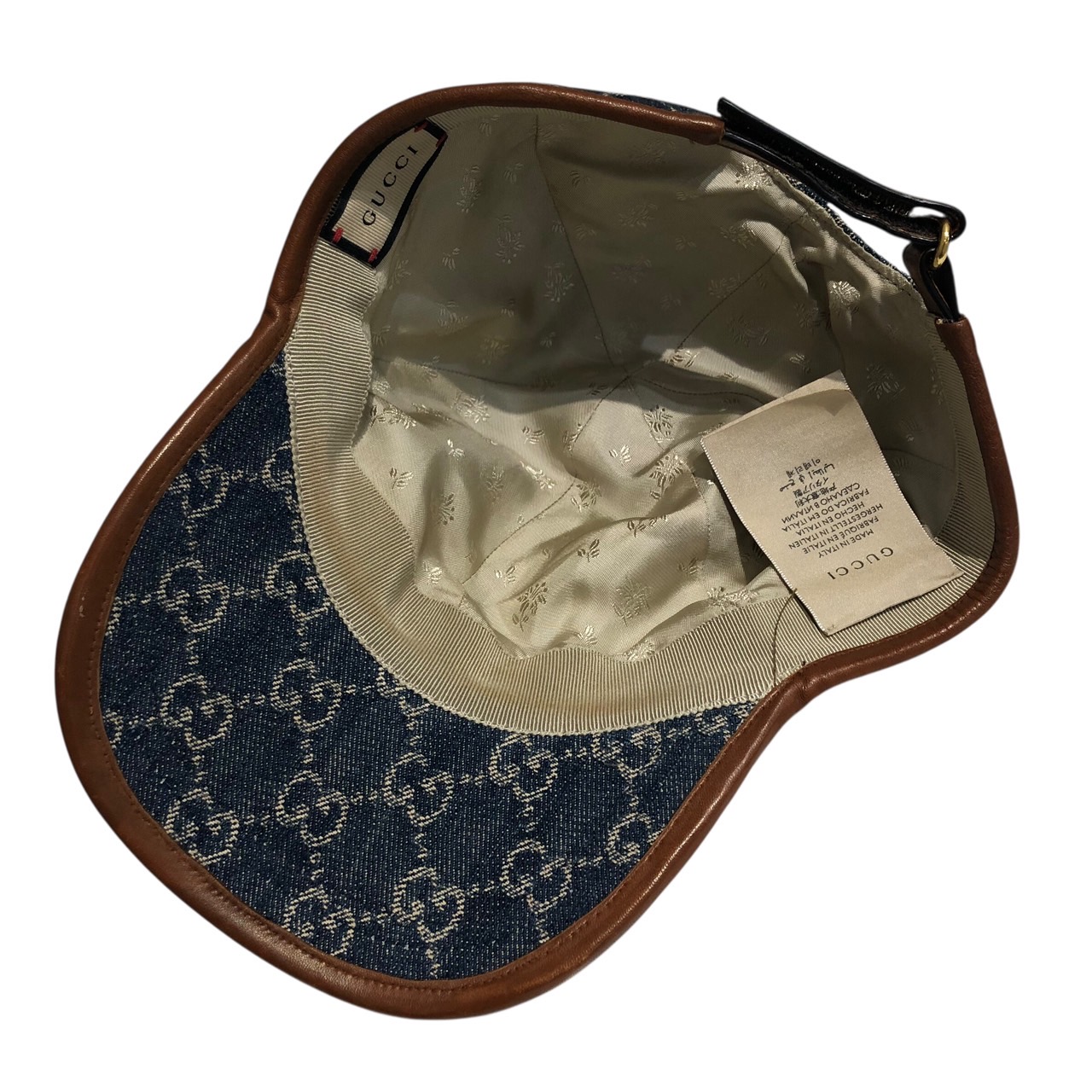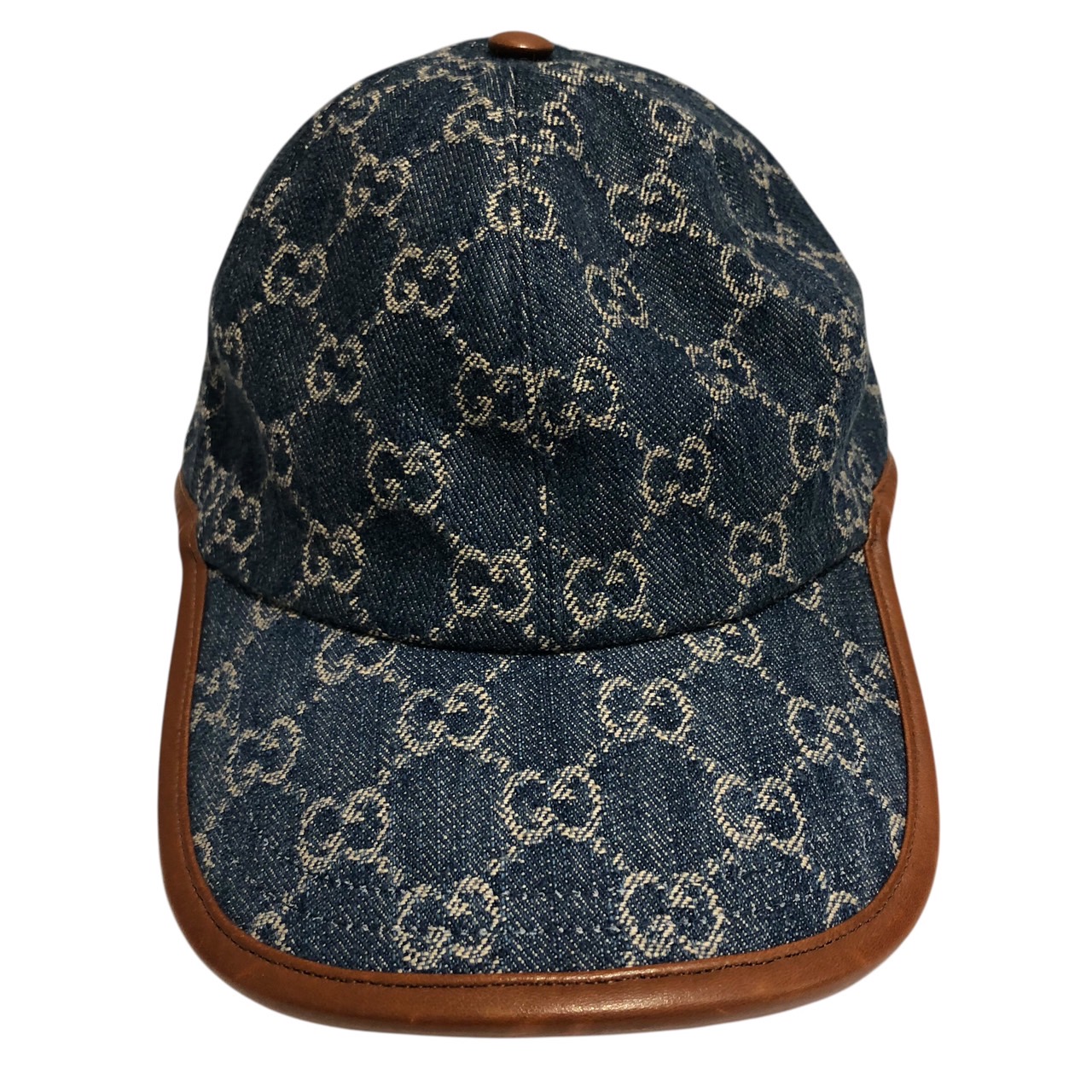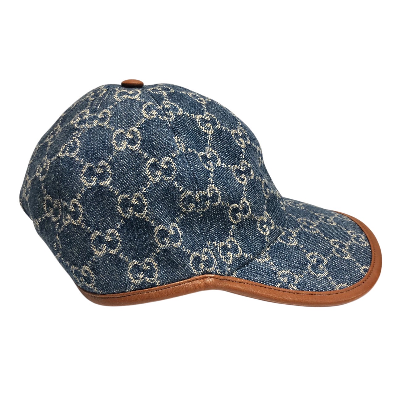 キャップ GG デニム×レザー インディゴ 帽子 S/57cm