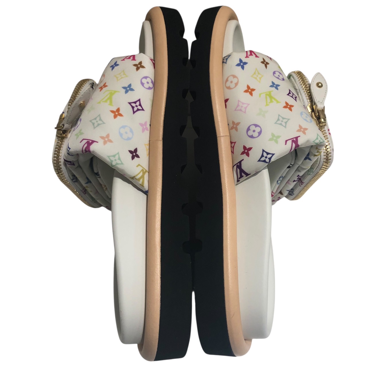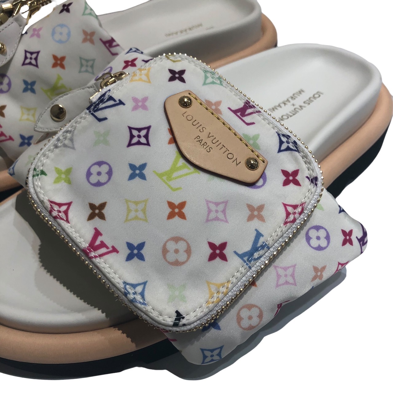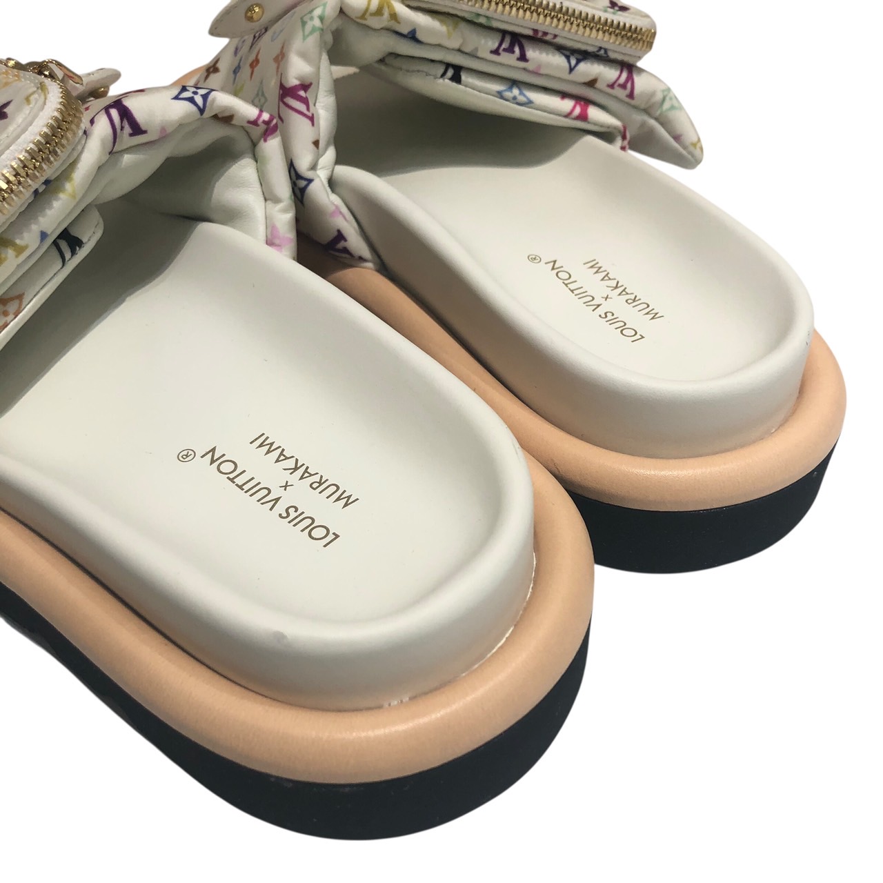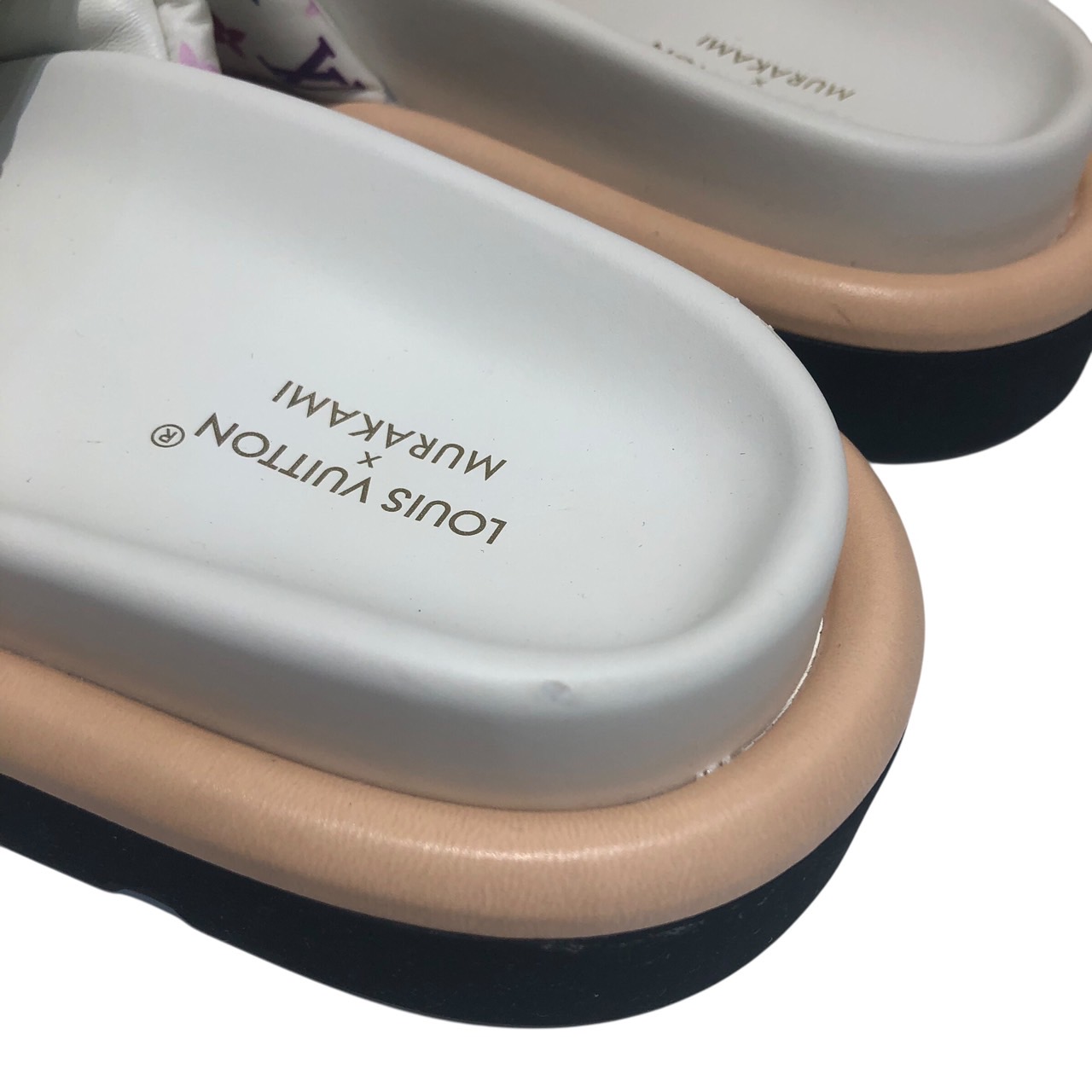 村上隆 モノグラム マルチカラー LV × TM ミュール プールピロー・ライン 白 #35 サンダル