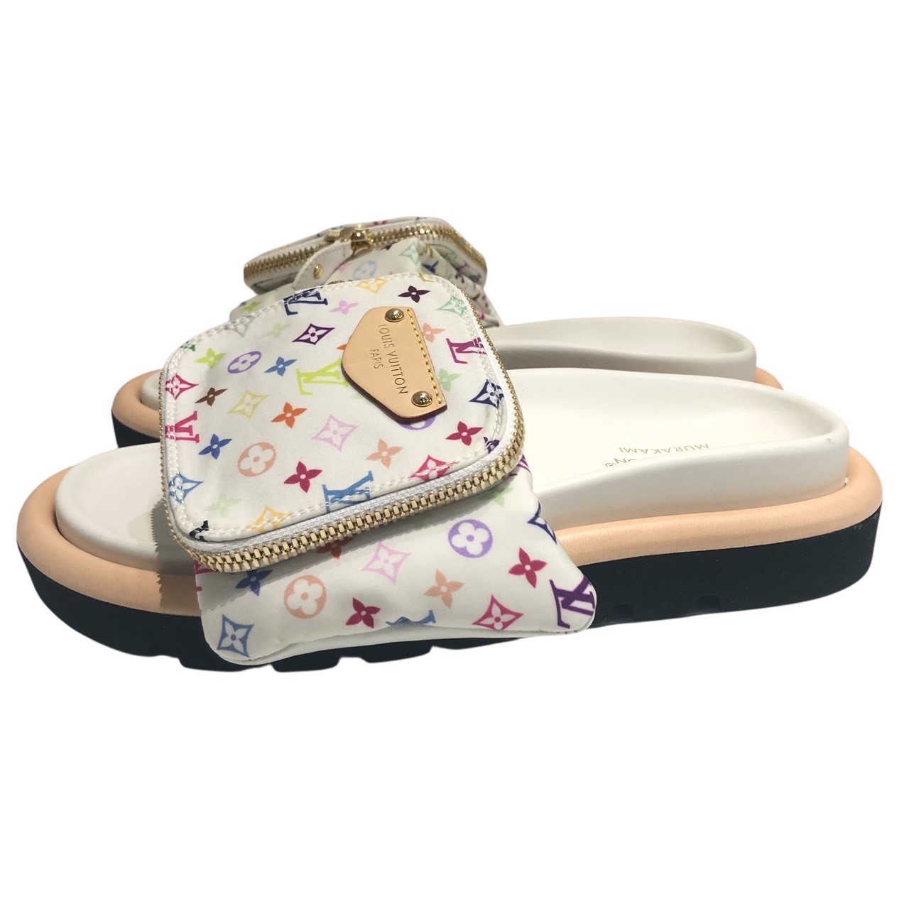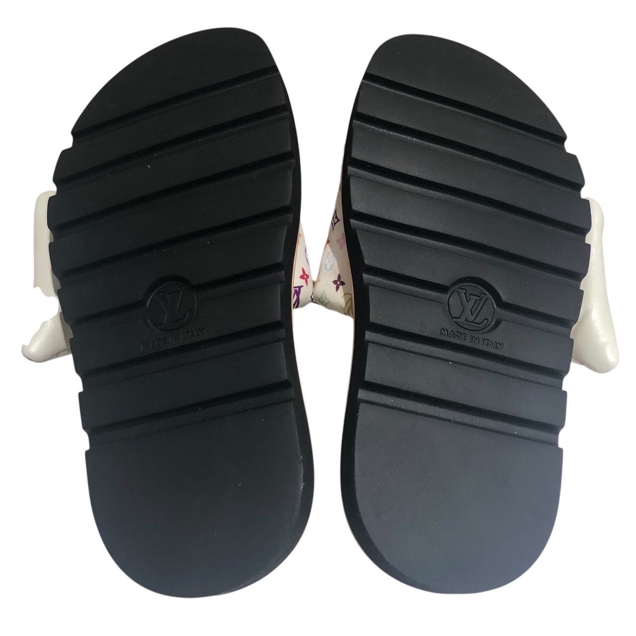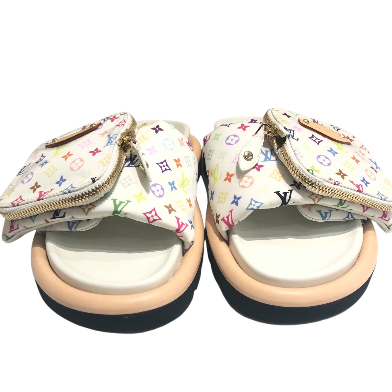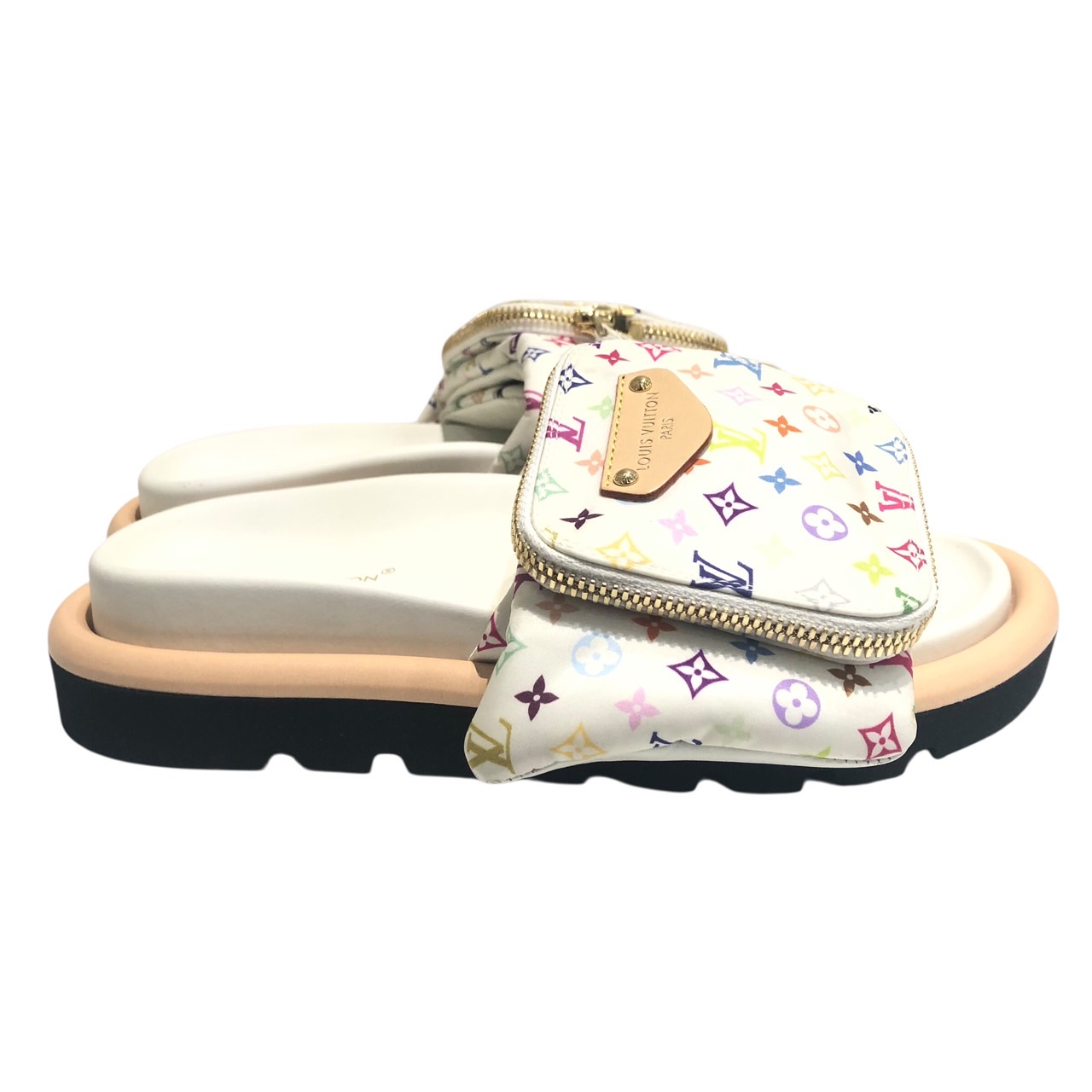 村上隆 モノグラム マルチカラー LV × TM ミュール プールピロー・ライン 白 #35 サンダル