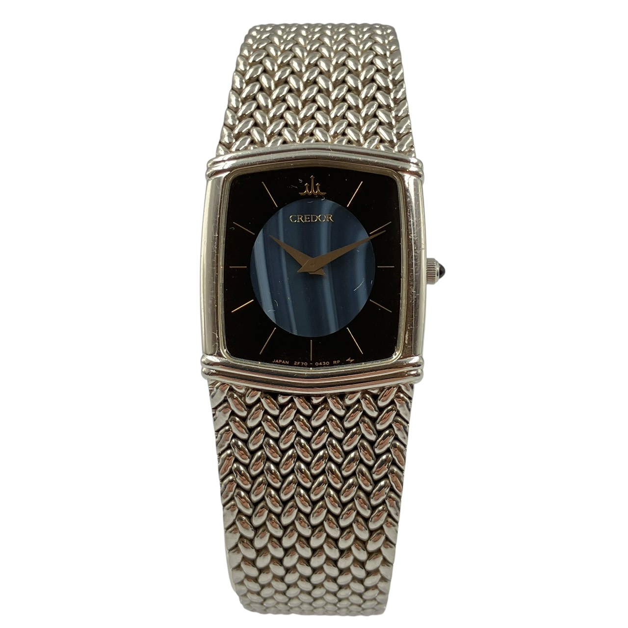 クォーツ 稼働品 クレドール スクエア めのう ネイビー文字盤 シルバーカラー 腕時計 2F70-5390