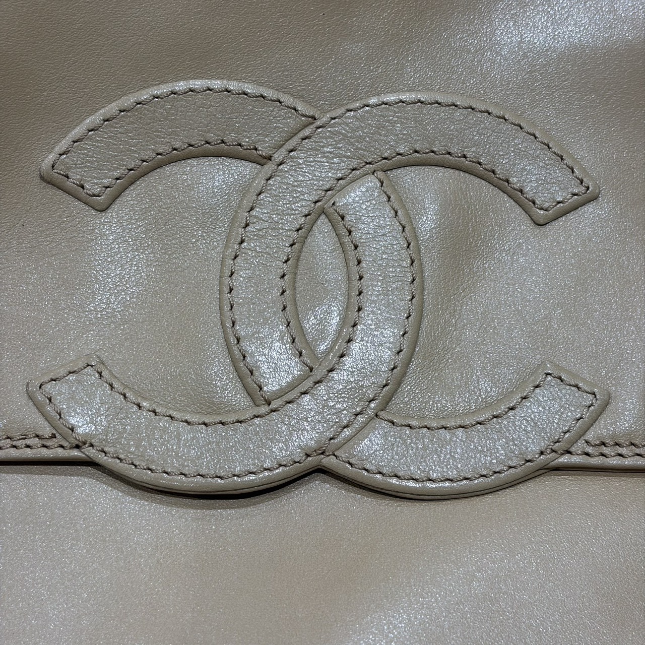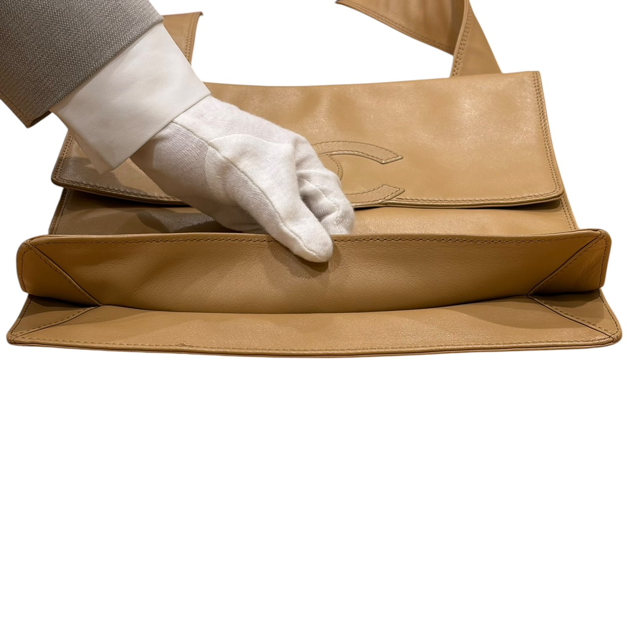 ココマーク フラップ ショルダーバッグ レザー ベージュ系