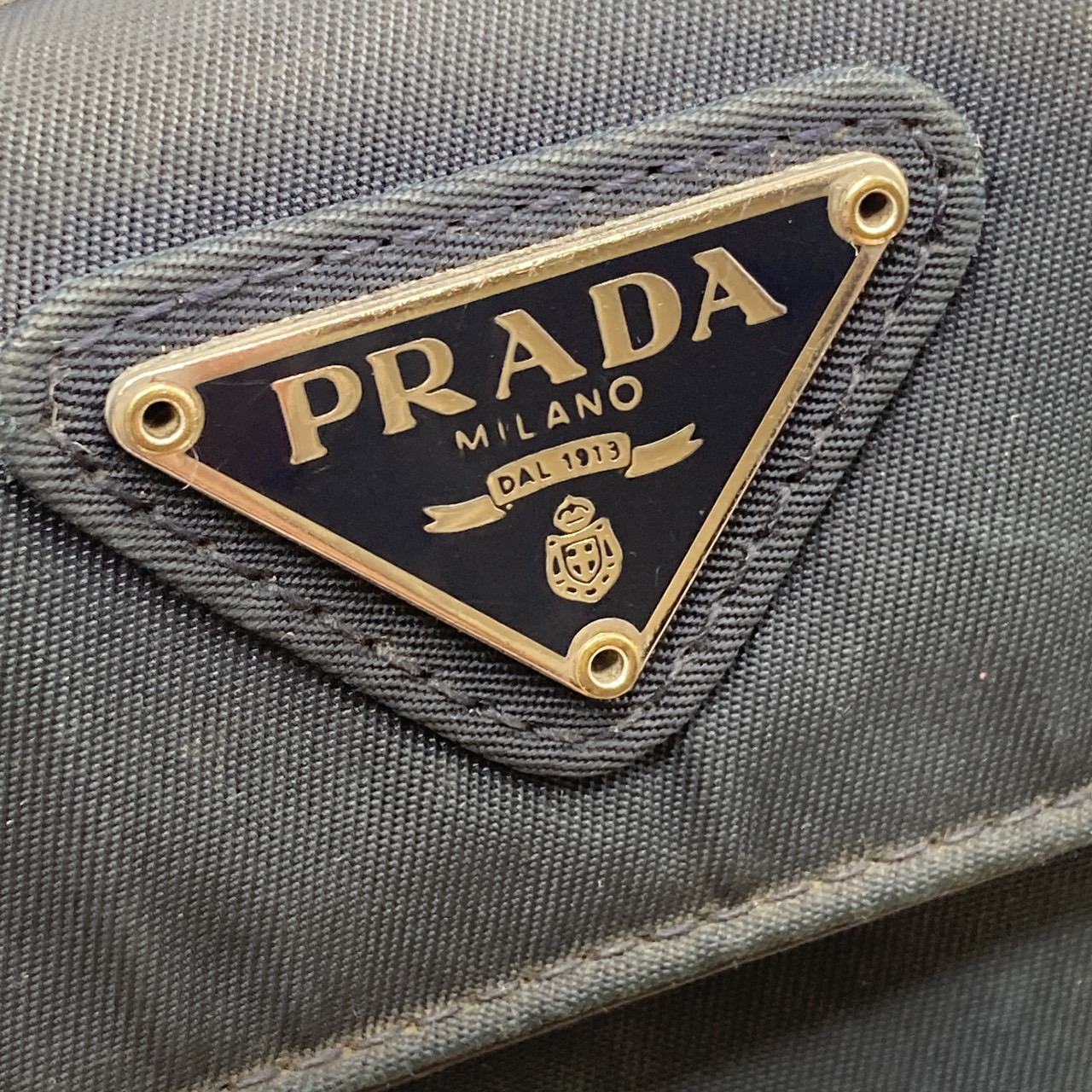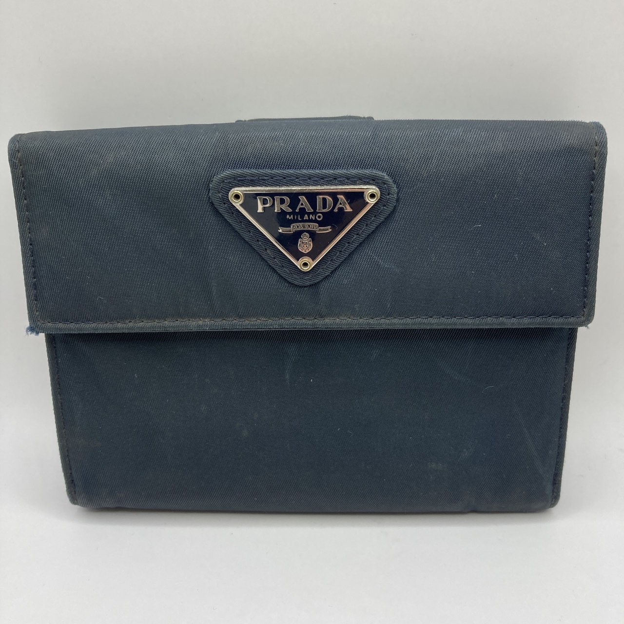 二つ折り財布 三角ロゴプレート テスート ナイロン 黒 ブラック M523