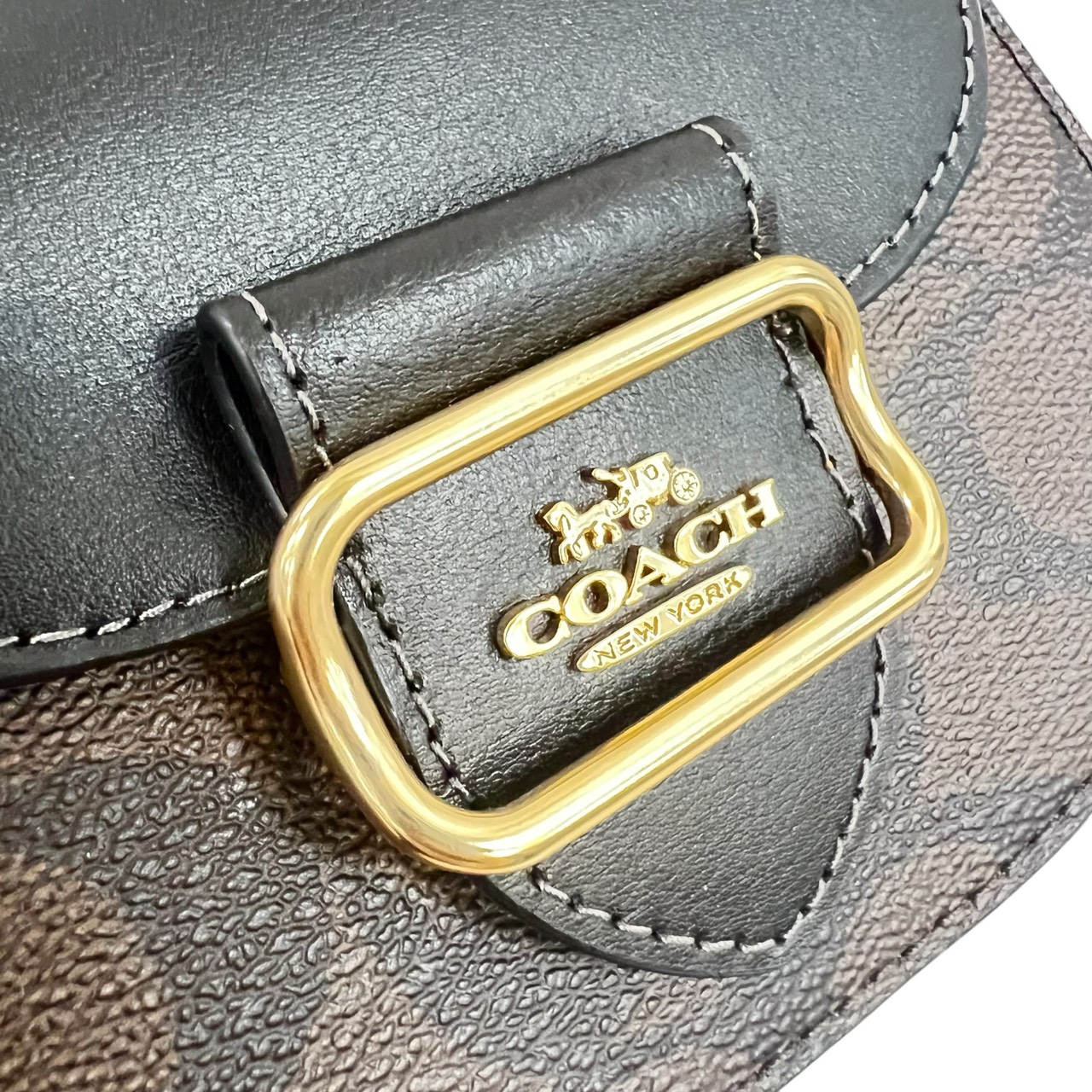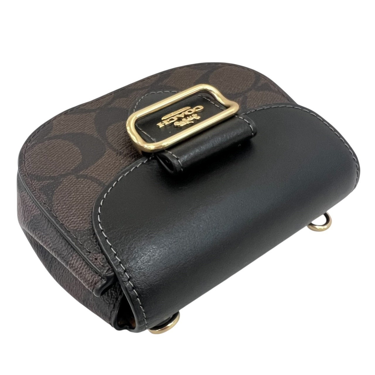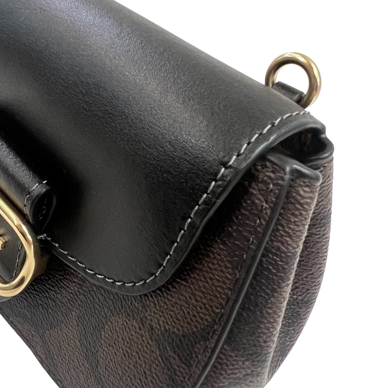 シグネチャー柄 馬車金具 PVC×レザー チェーンショルダー ブラウン系