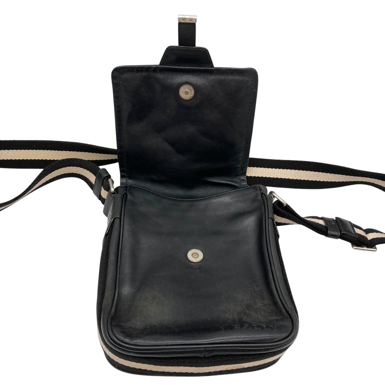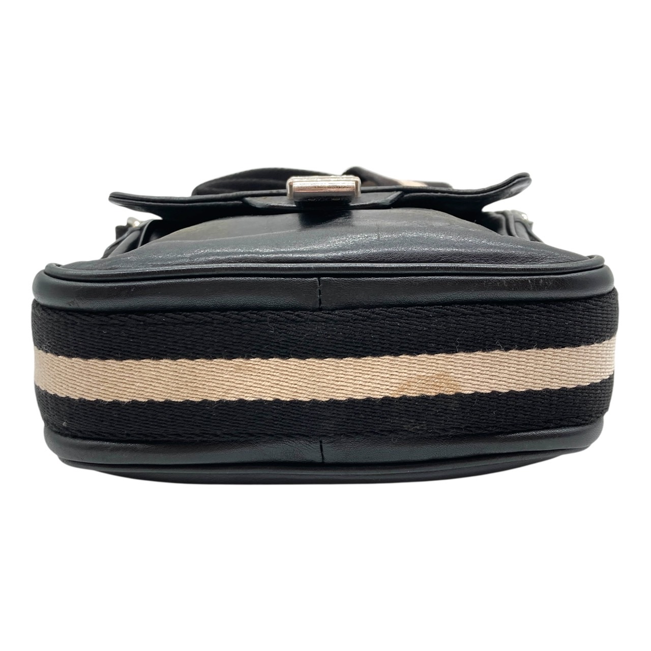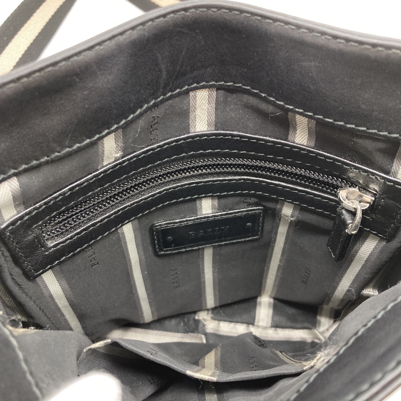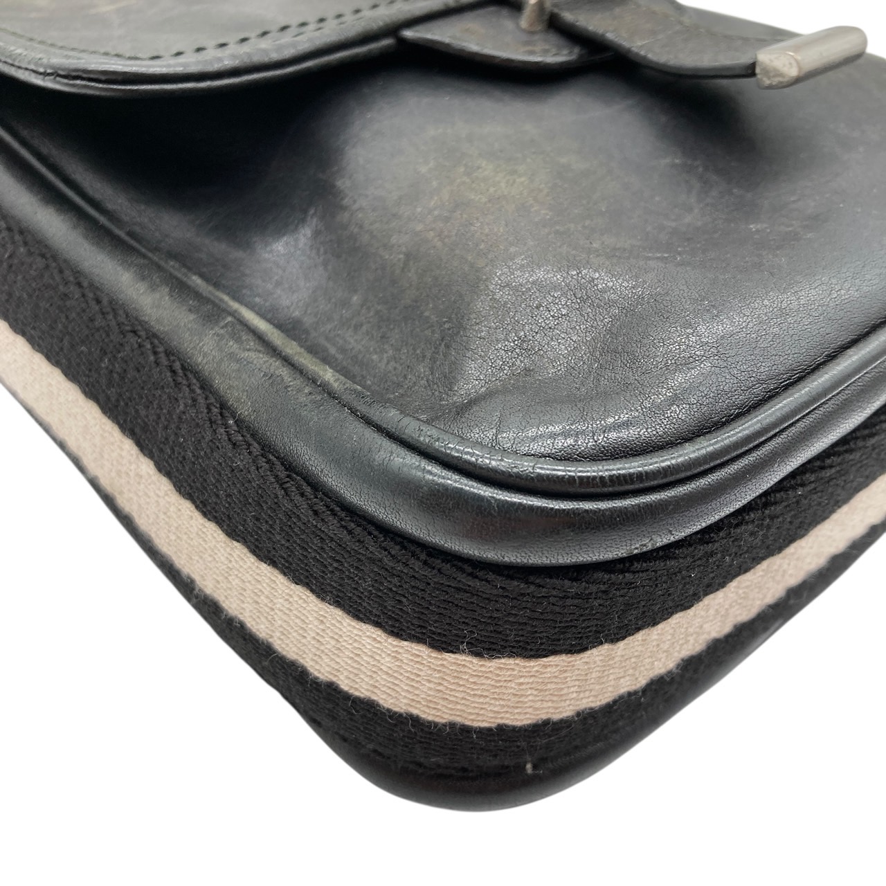 フラップ ショルダーバッグ 斜め掛け 裏地ストライプ シルバー金具 本革 ブラック