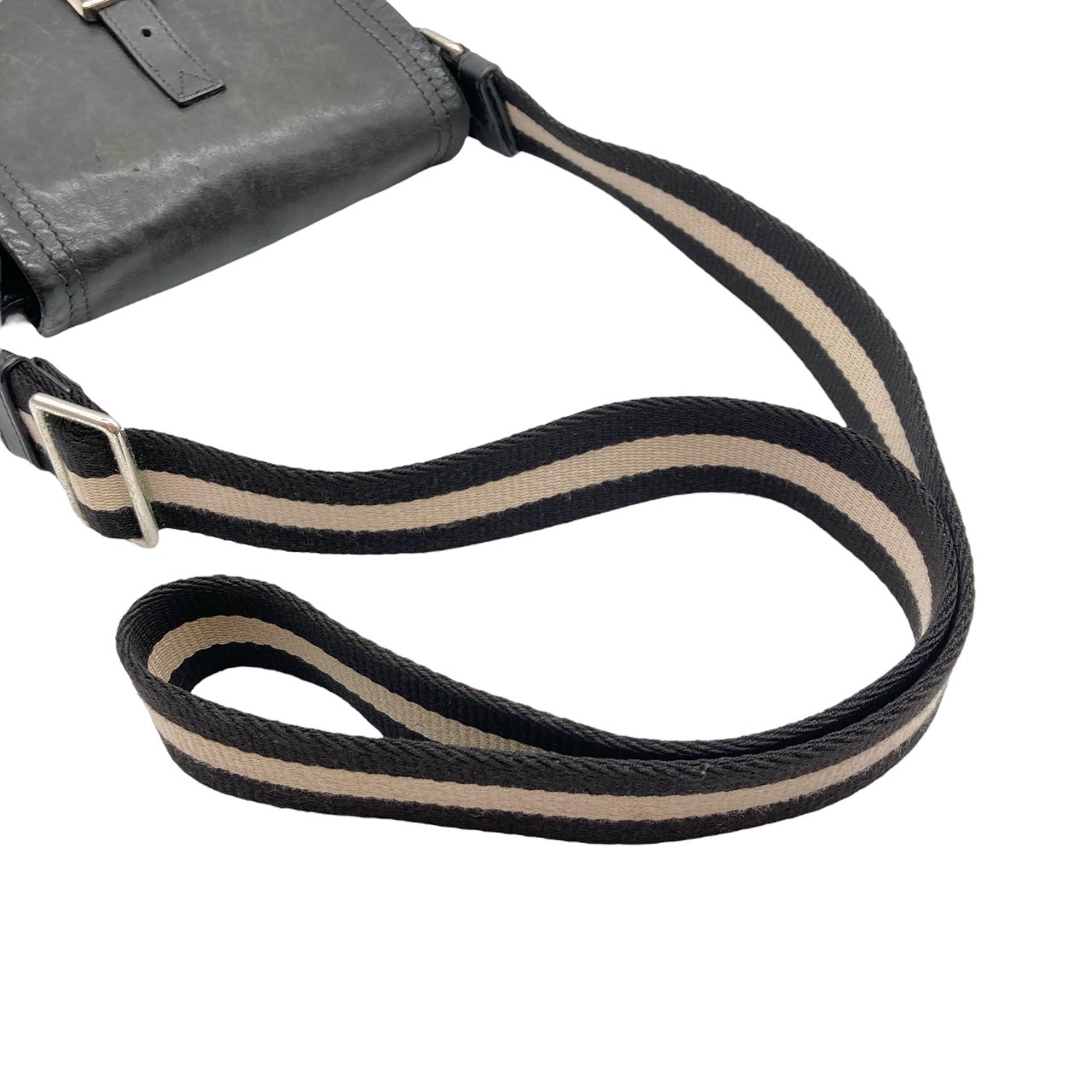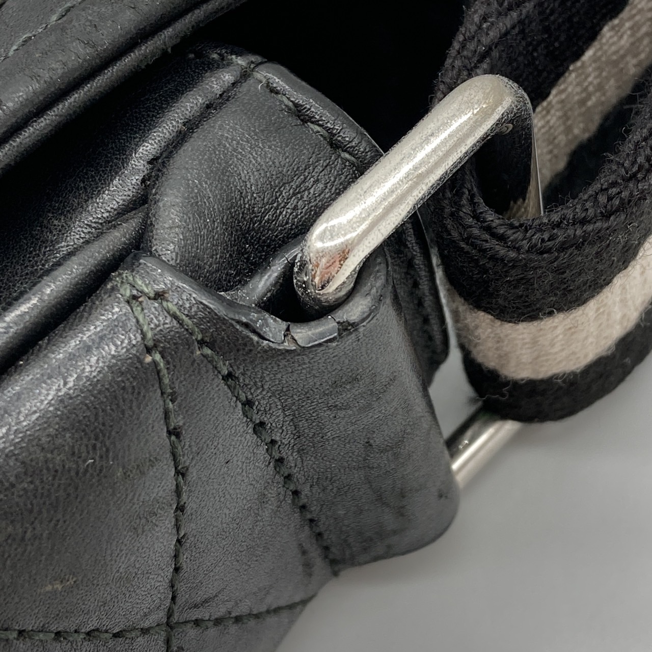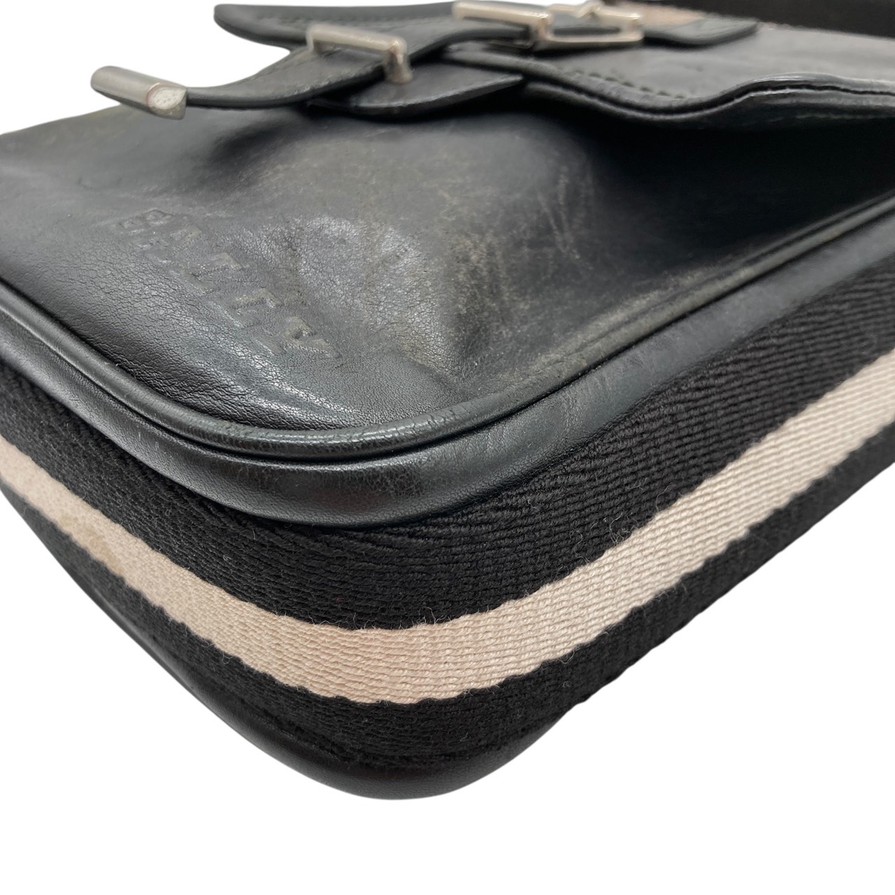 フラップ ショルダーバッグ 斜め掛け 裏地ストライプ シルバー金具 本革 ブラック
