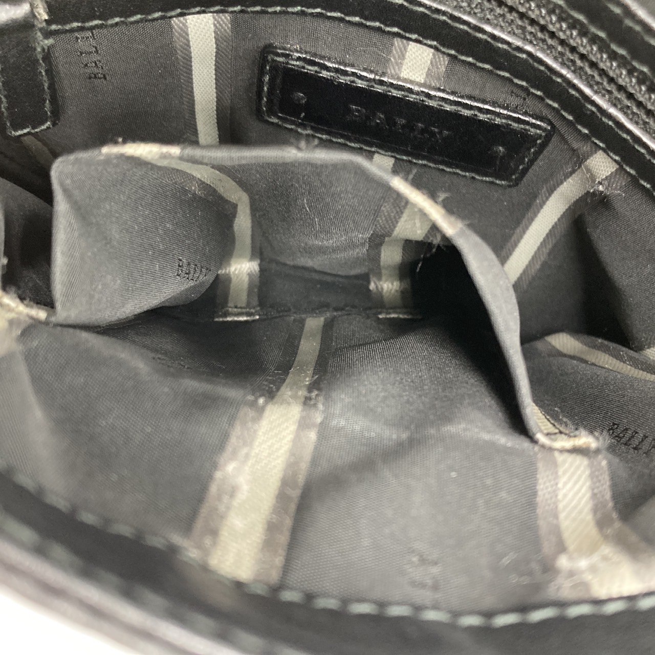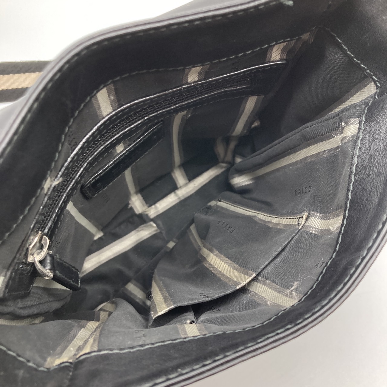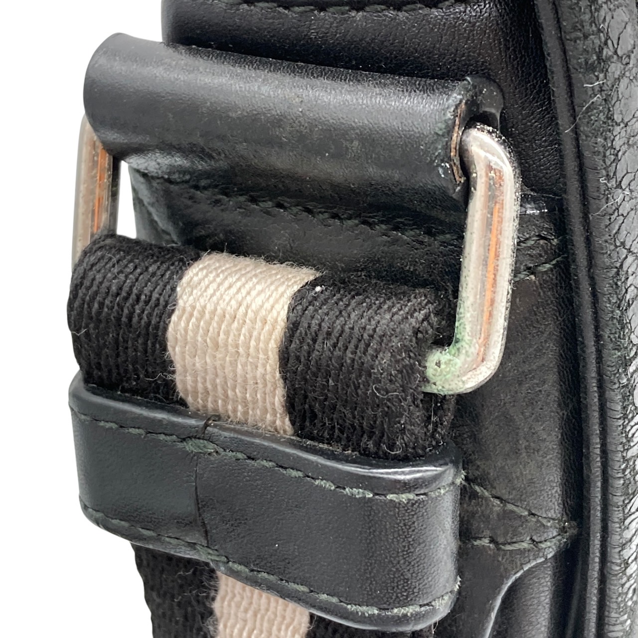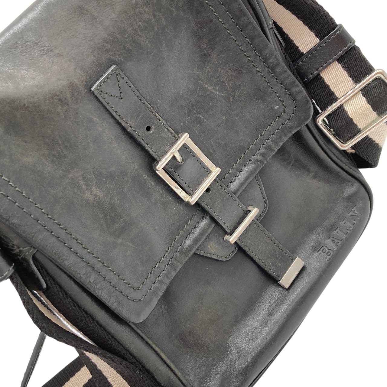 フラップ ショルダーバッグ 斜め掛け 裏地ストライプ シルバー金具 本革 ブラック