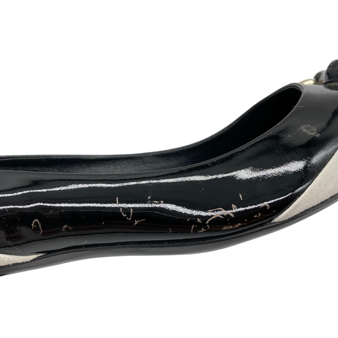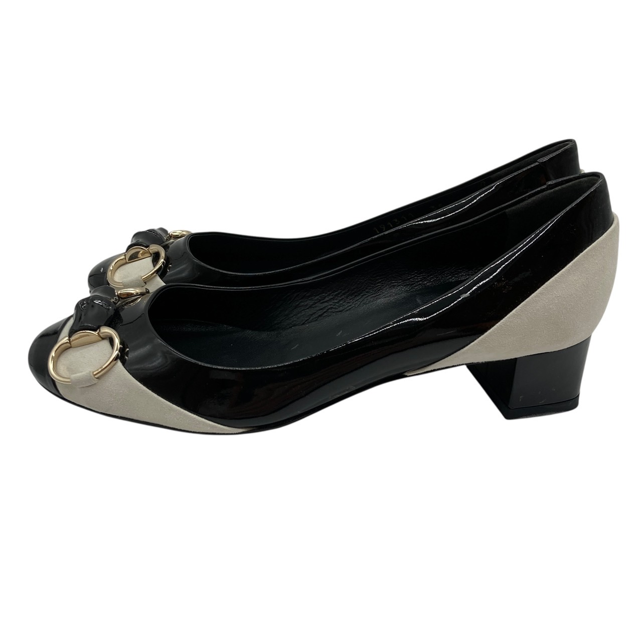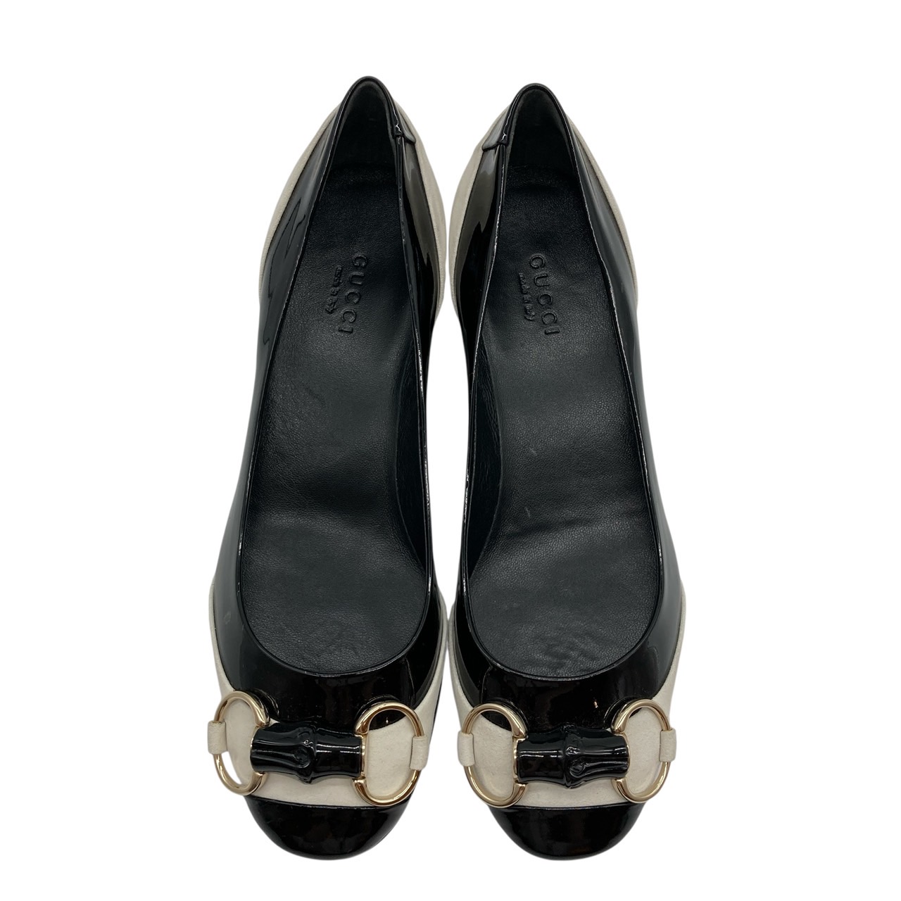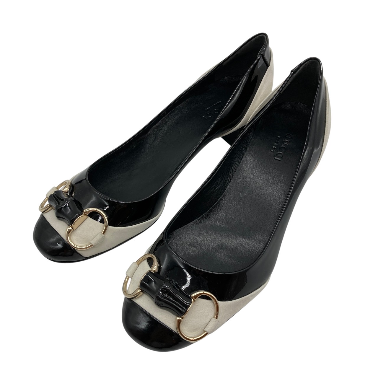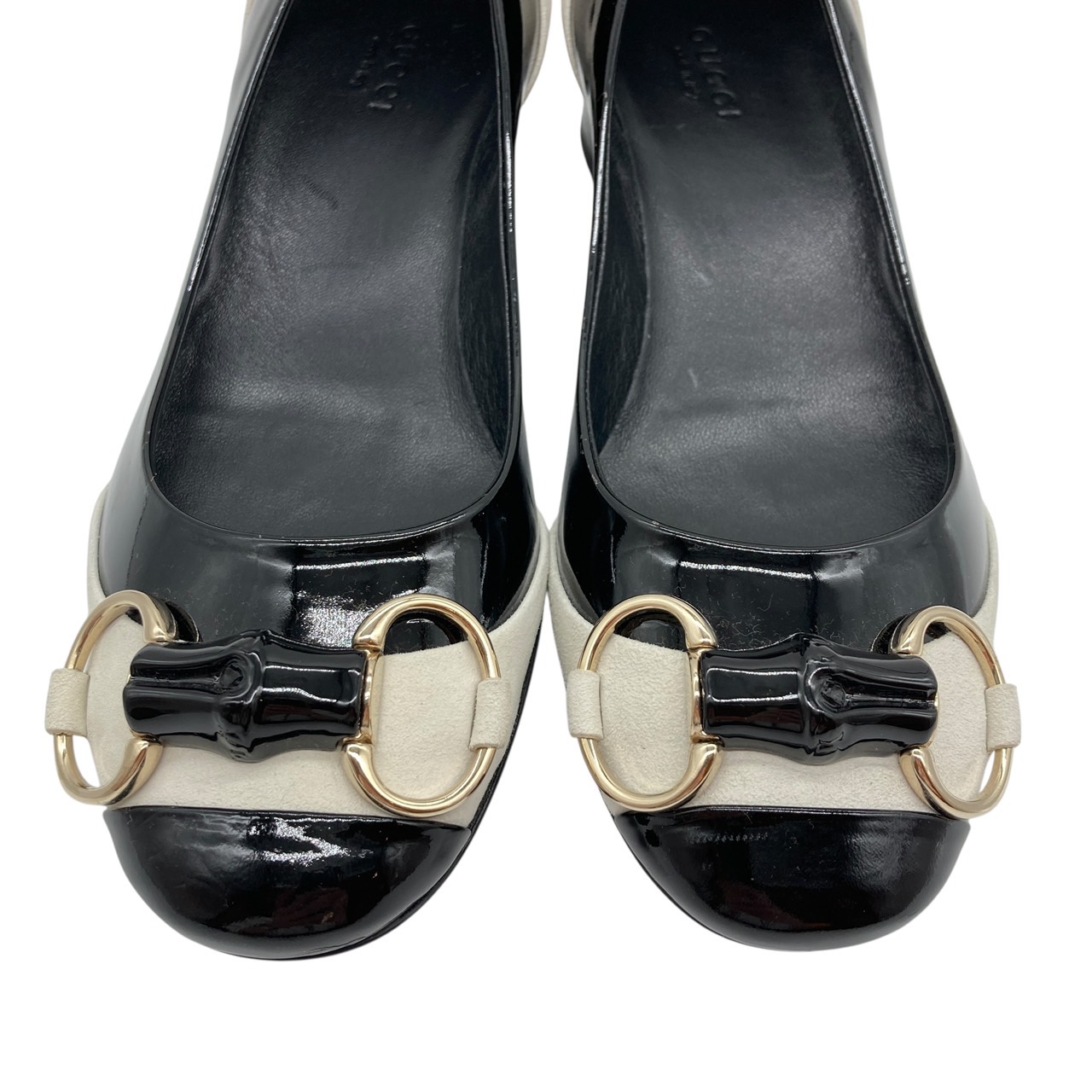 バンブー ホースビット エナメル スエード ヒール パンプス 白×黒 35C エナメル剥げ
