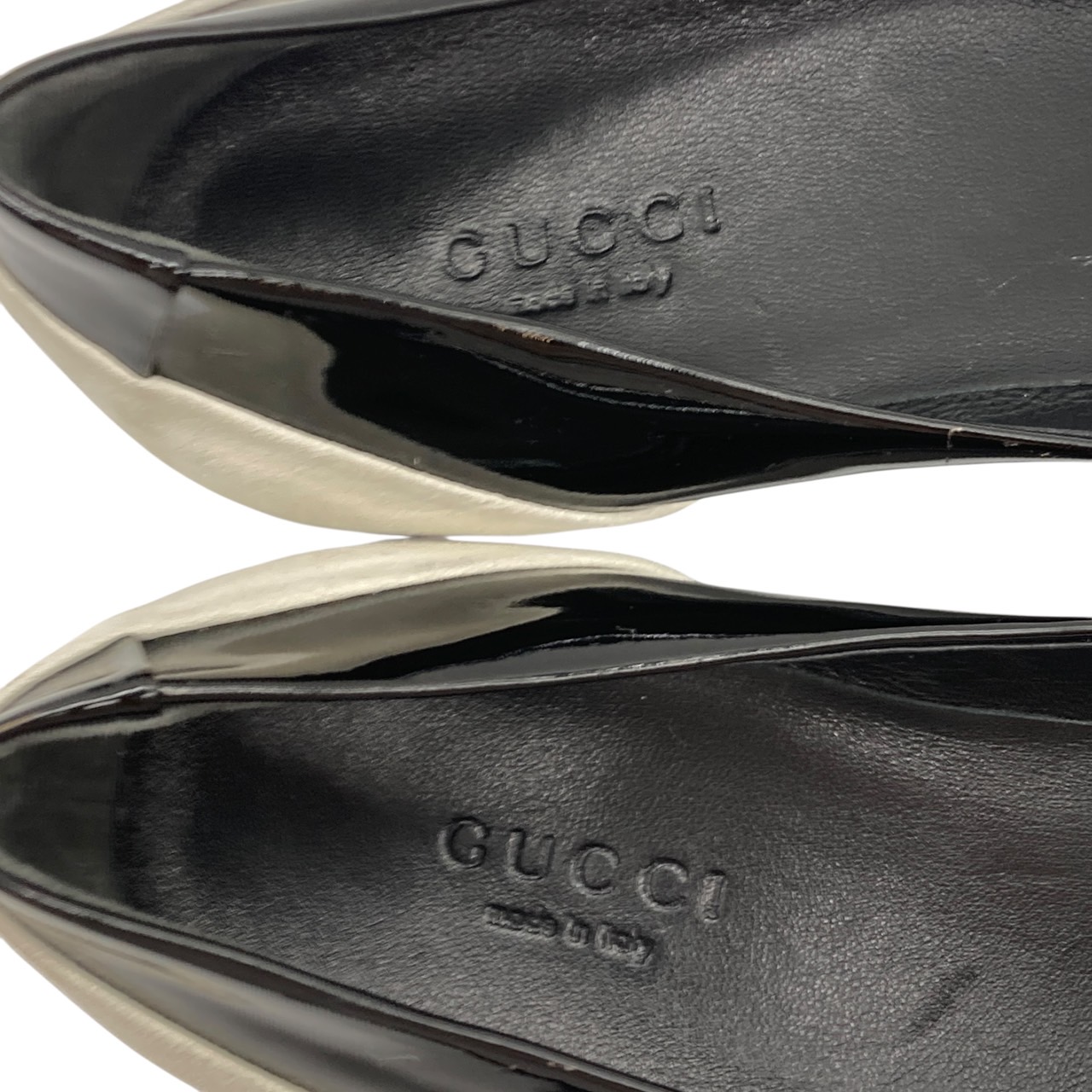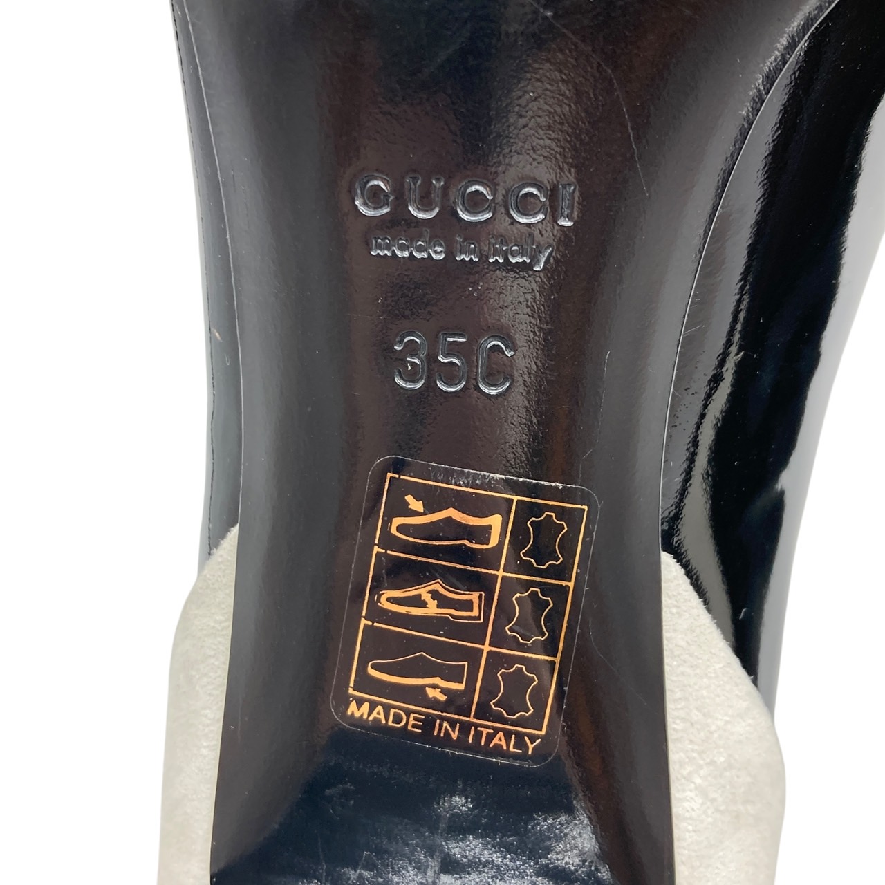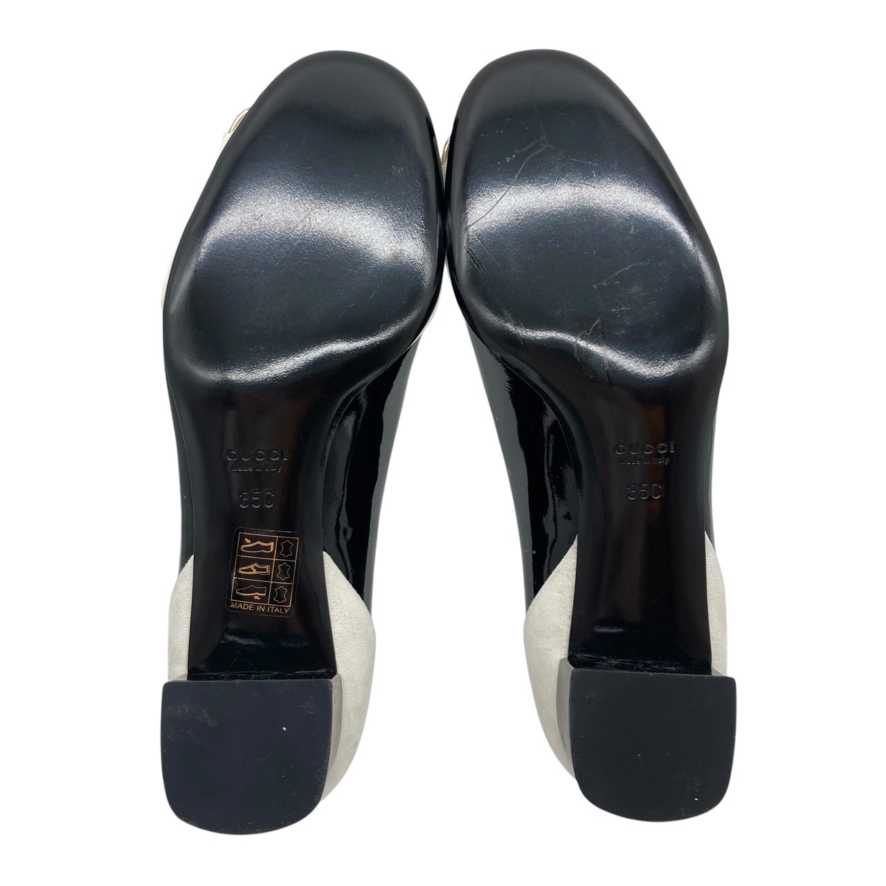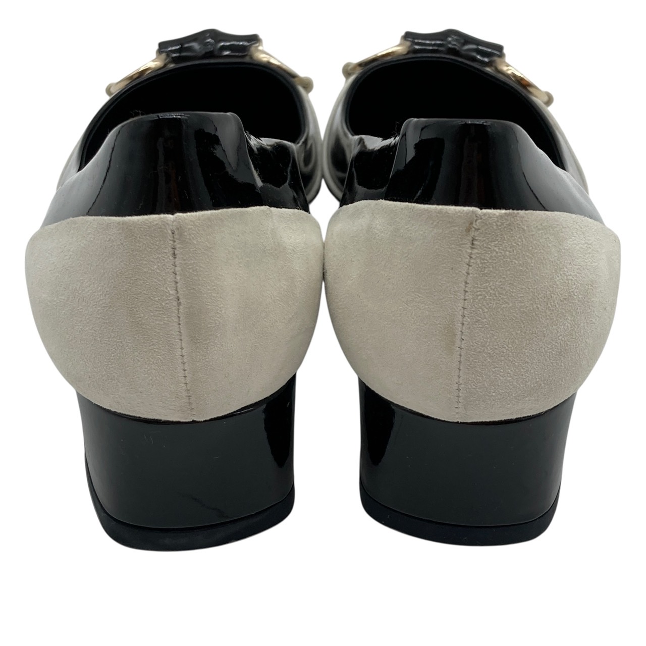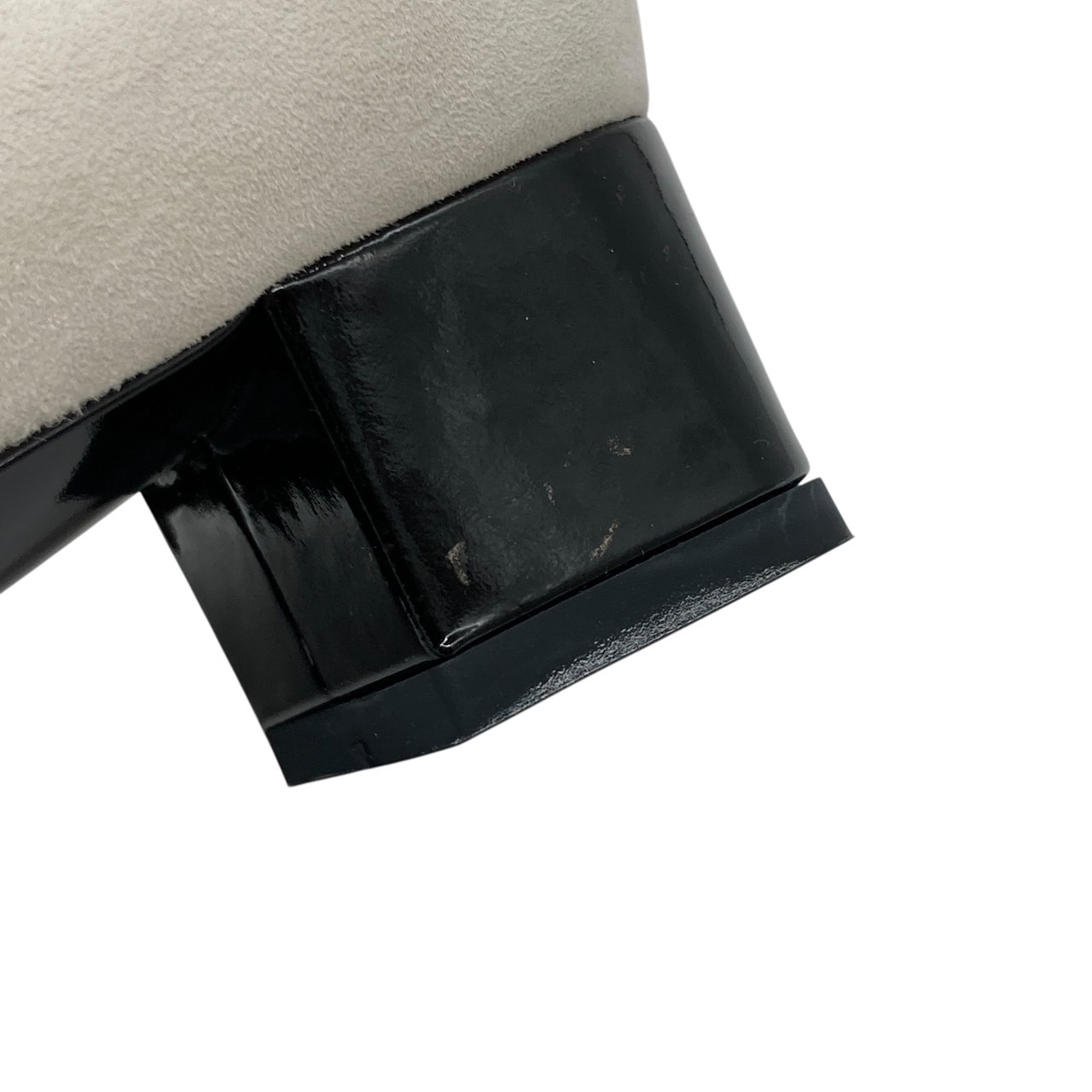 バンブー ホースビット エナメル スエード ヒール パンプス 白×黒 35C エナメル剥げ