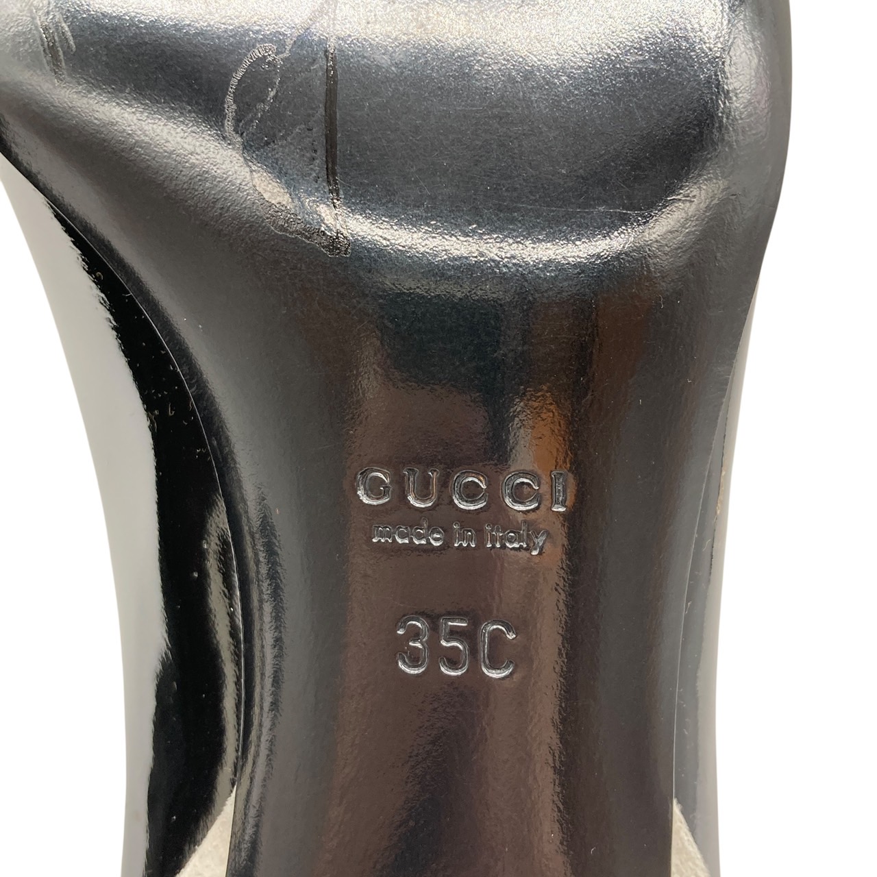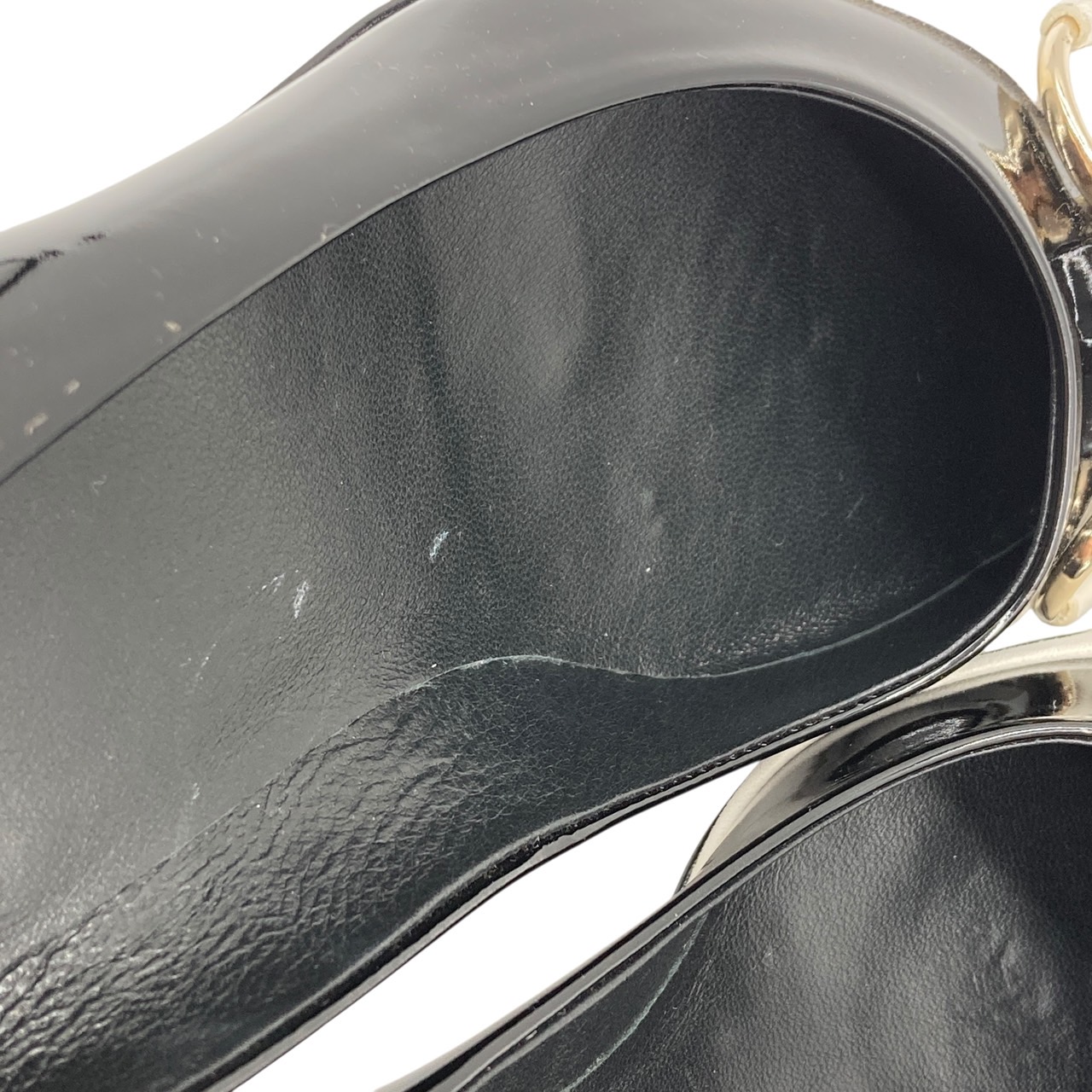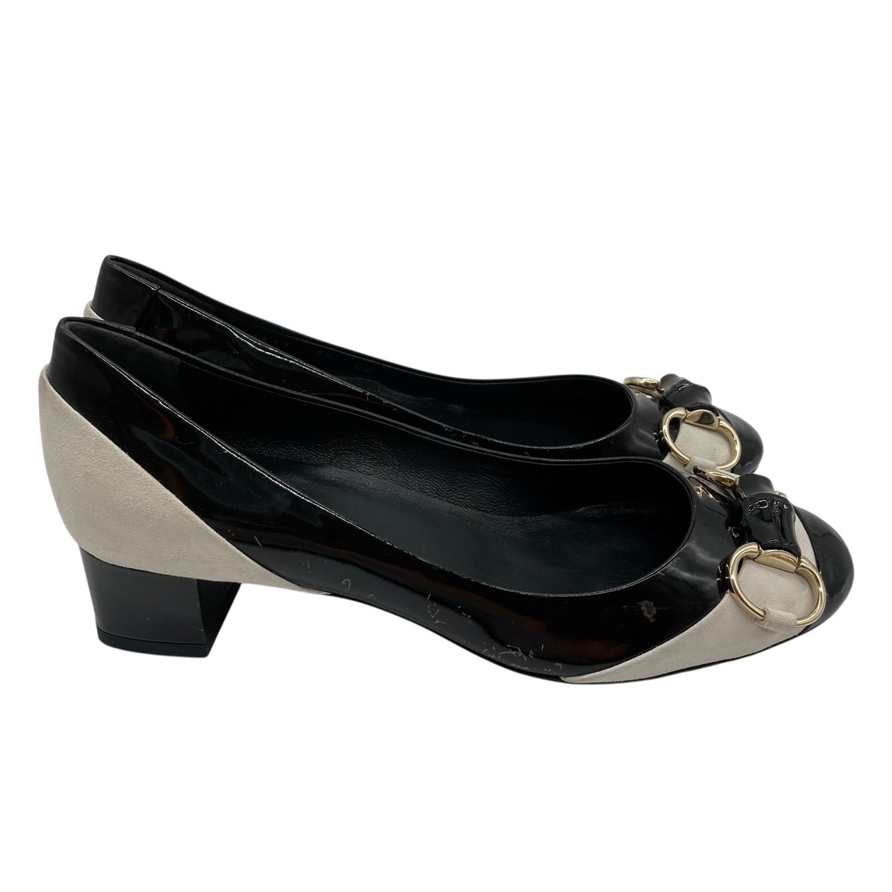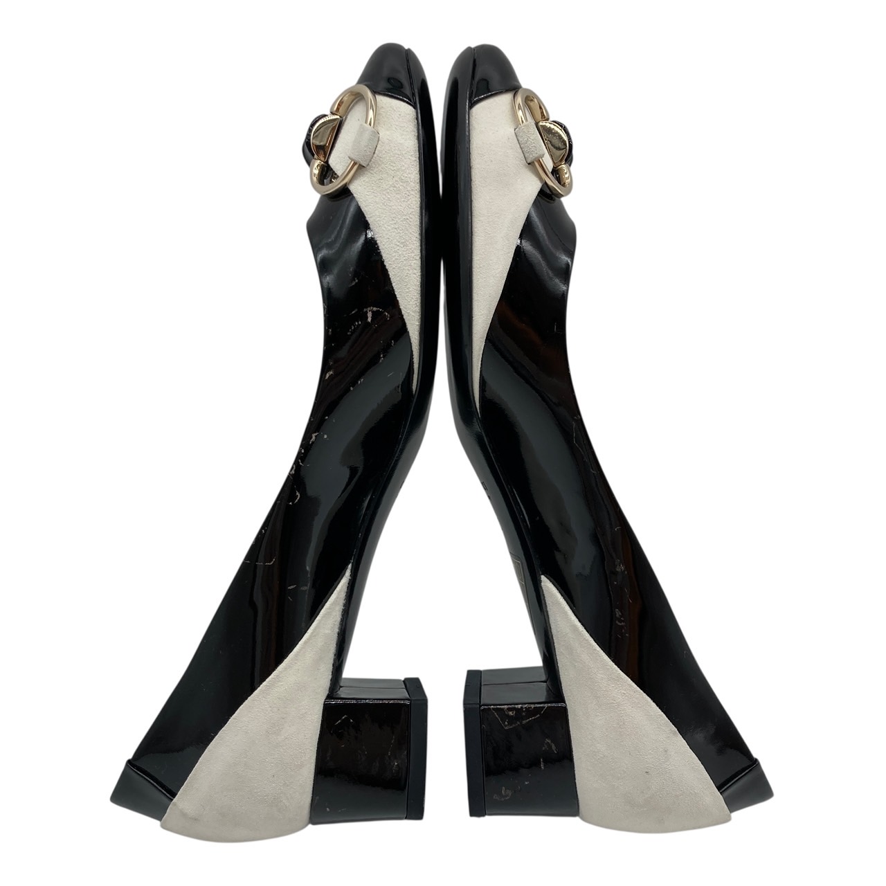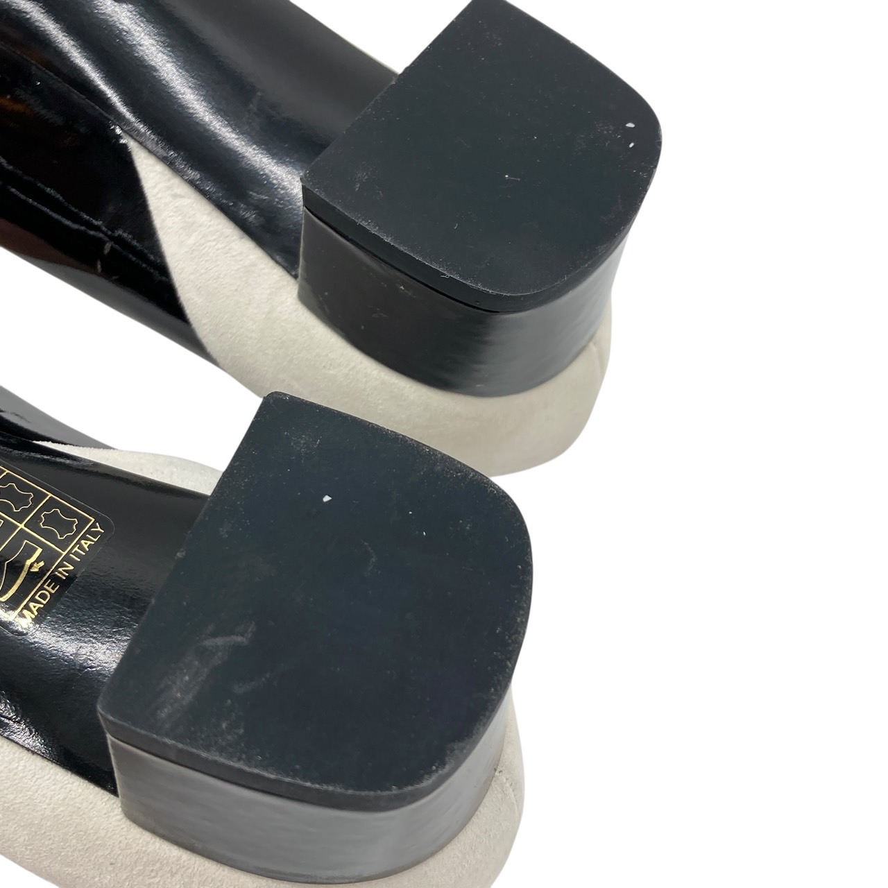 バンブー ホースビット エナメル スエード ヒール パンプス 白×黒 35C エナメル剥げ