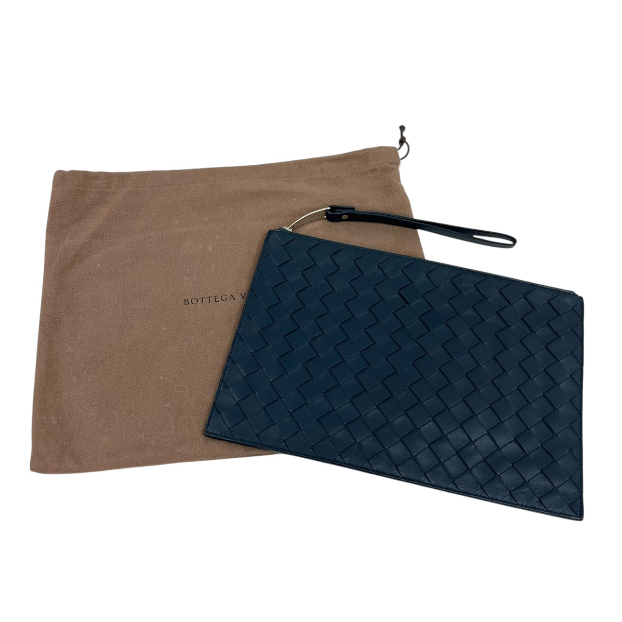 イントレチャート クラッチバッグ レザー セカンドバッグ ネイビー系