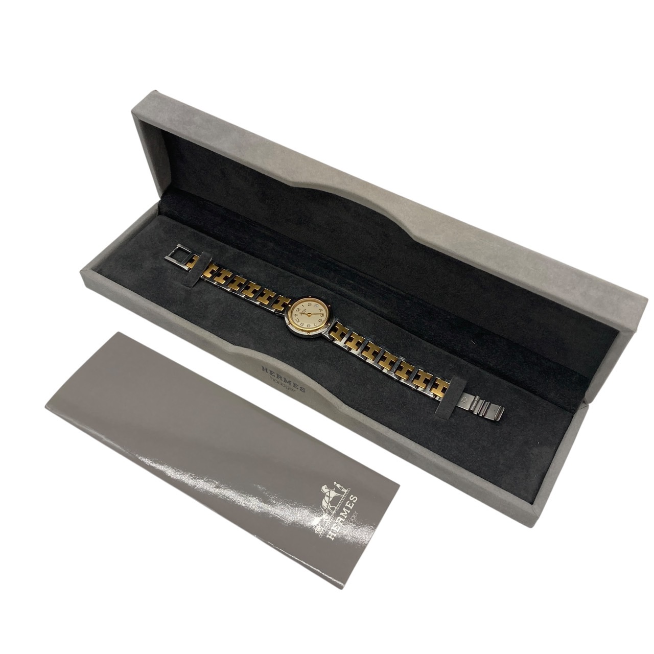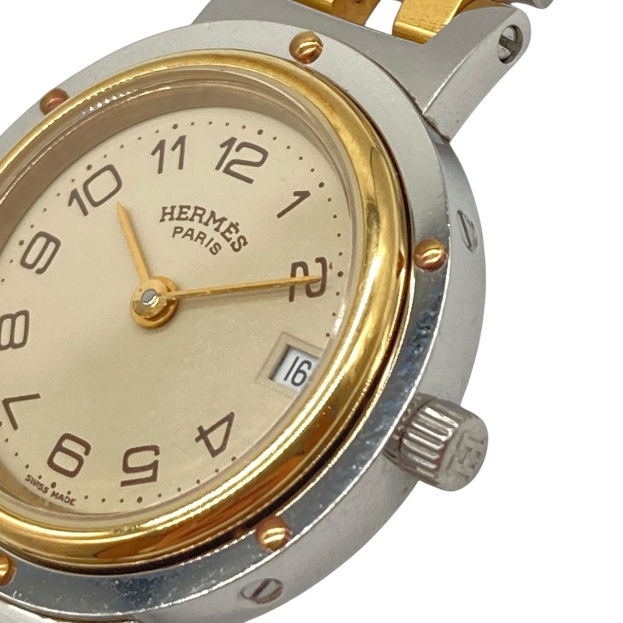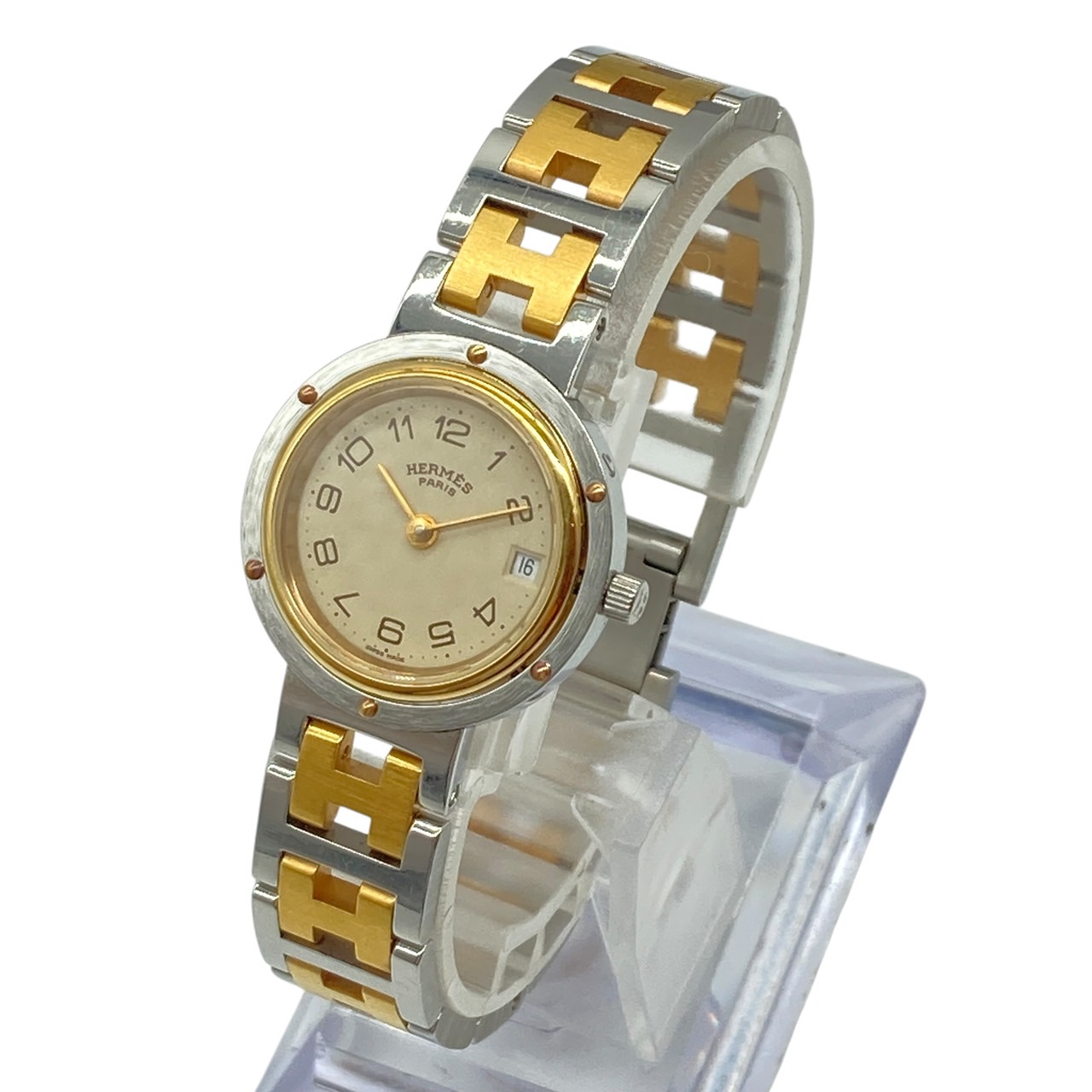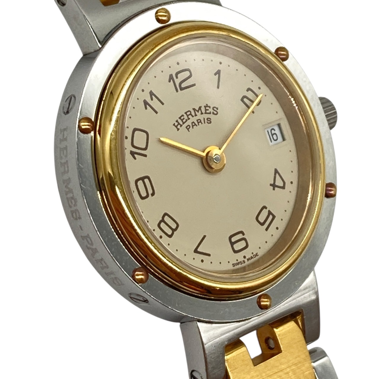 クリッパー クォーツ 稼働品 コンビ アイボリー文字盤 デイト レディース腕時計