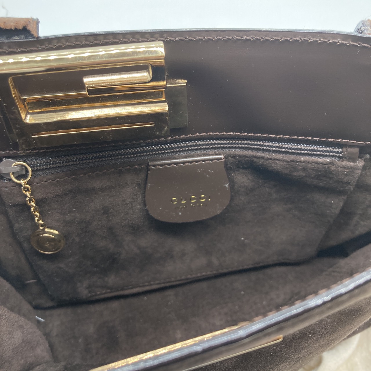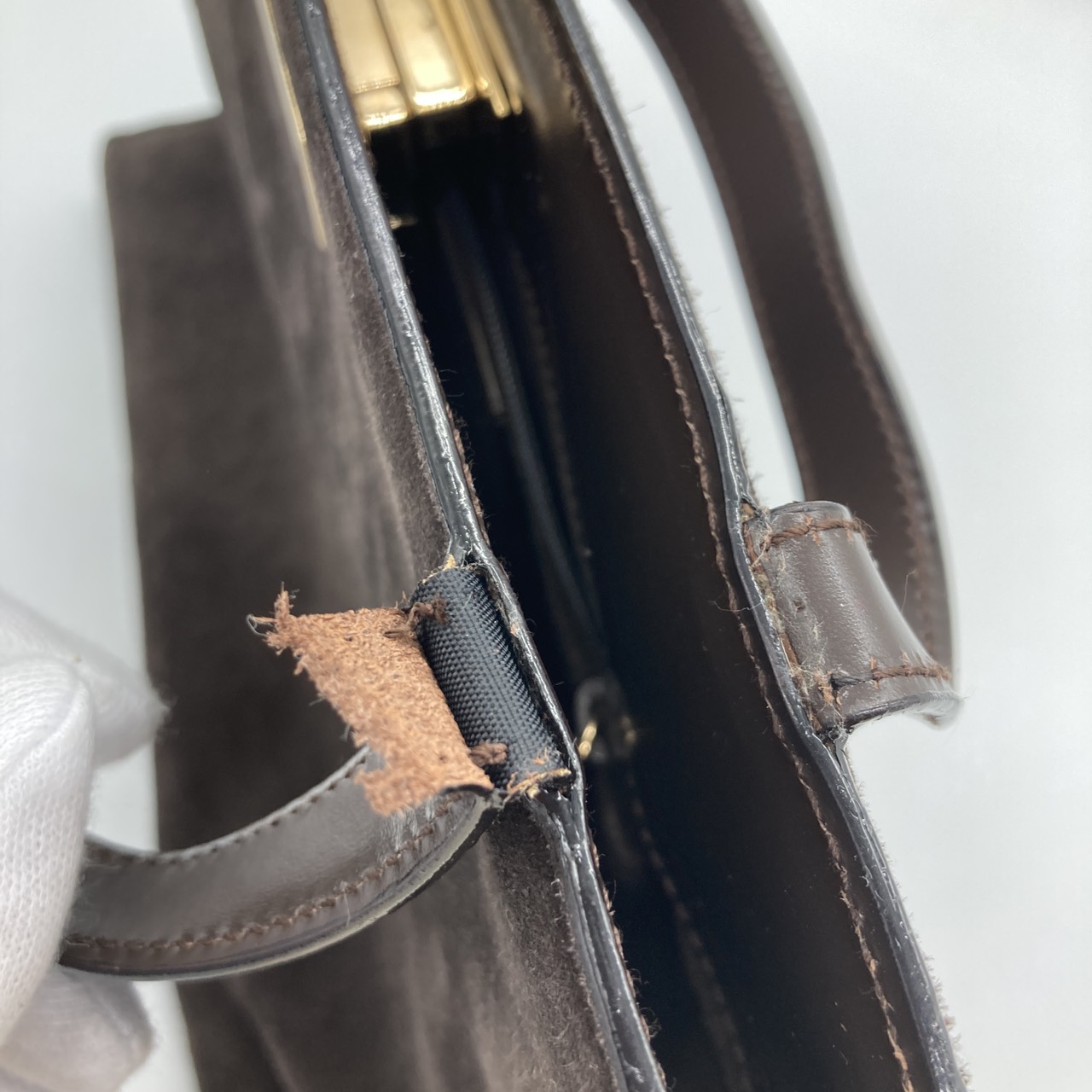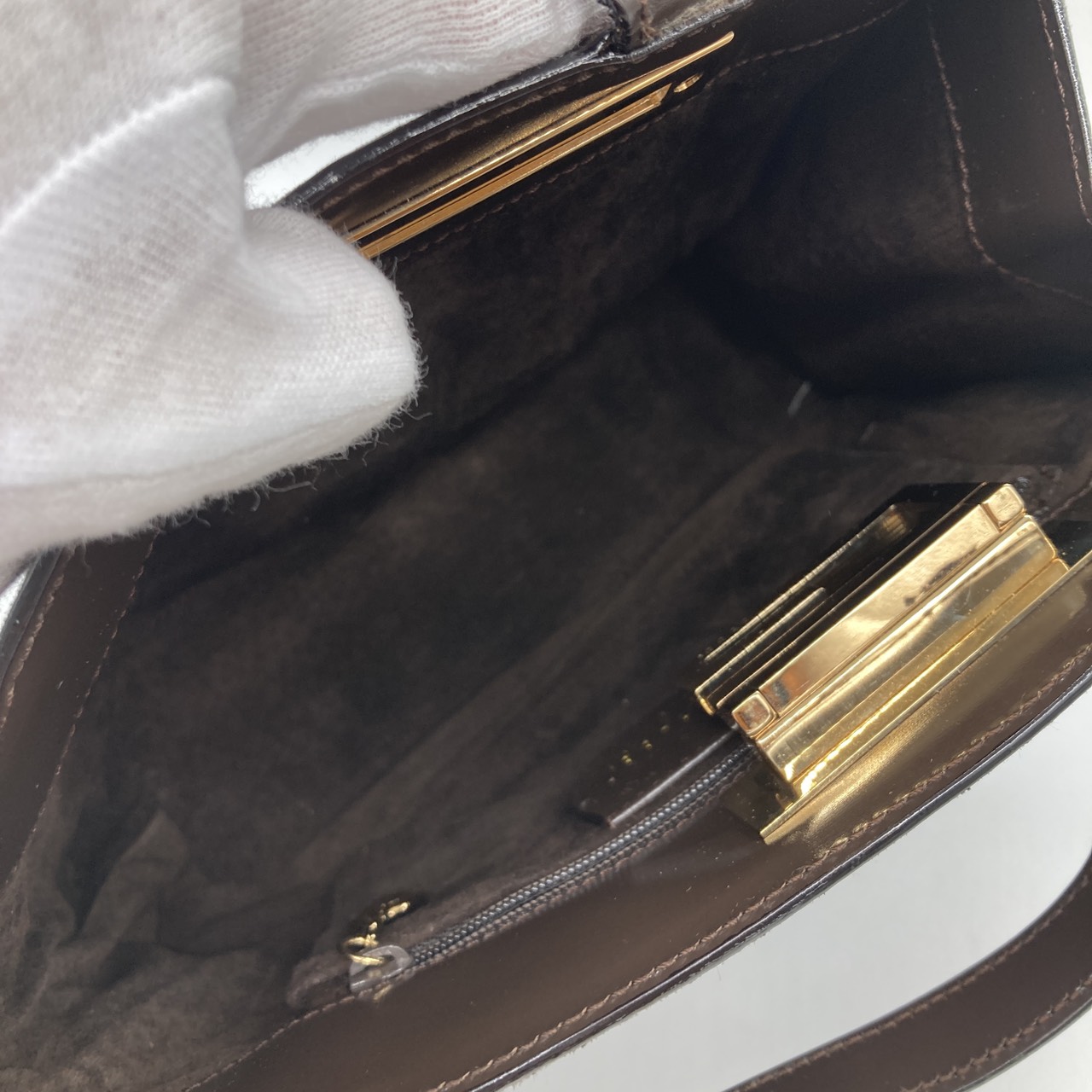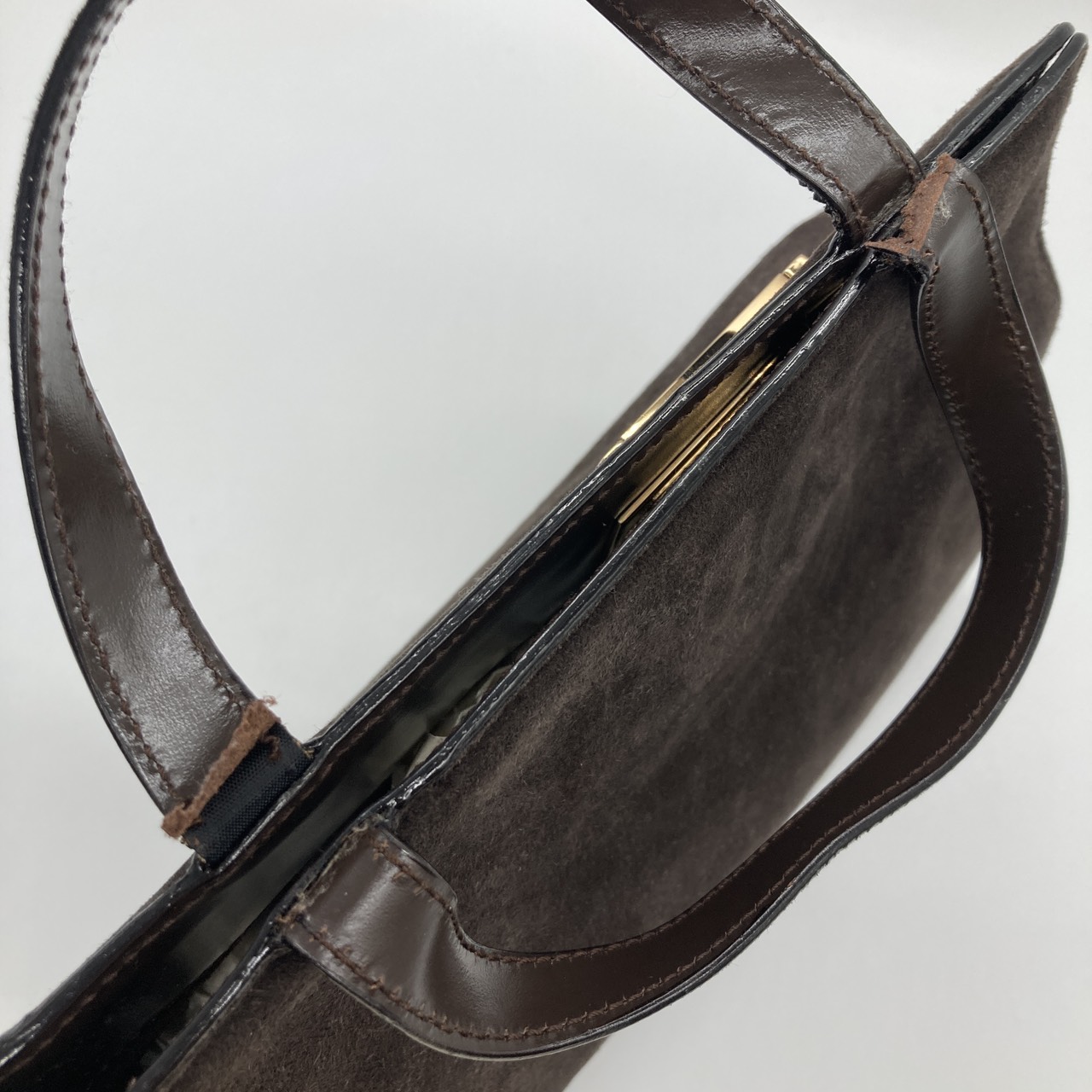 スエード ハンドバッグ 007・1364・0285 金具ゴールドカラー ブラウン系