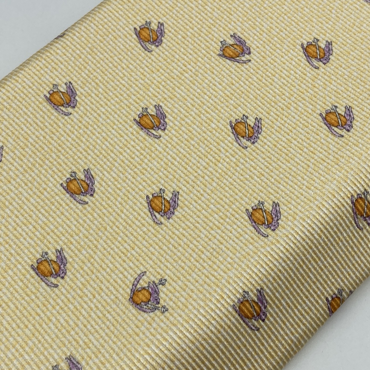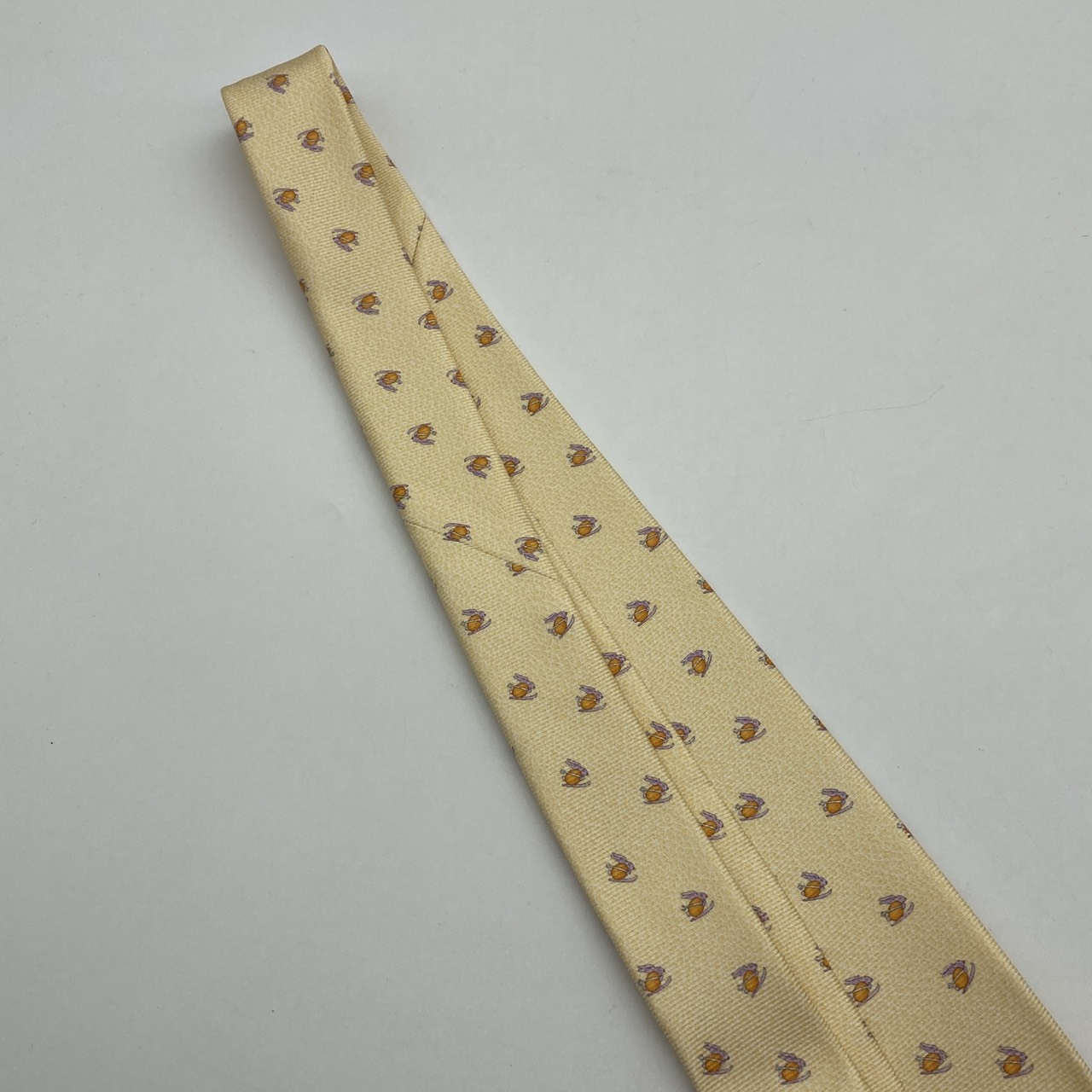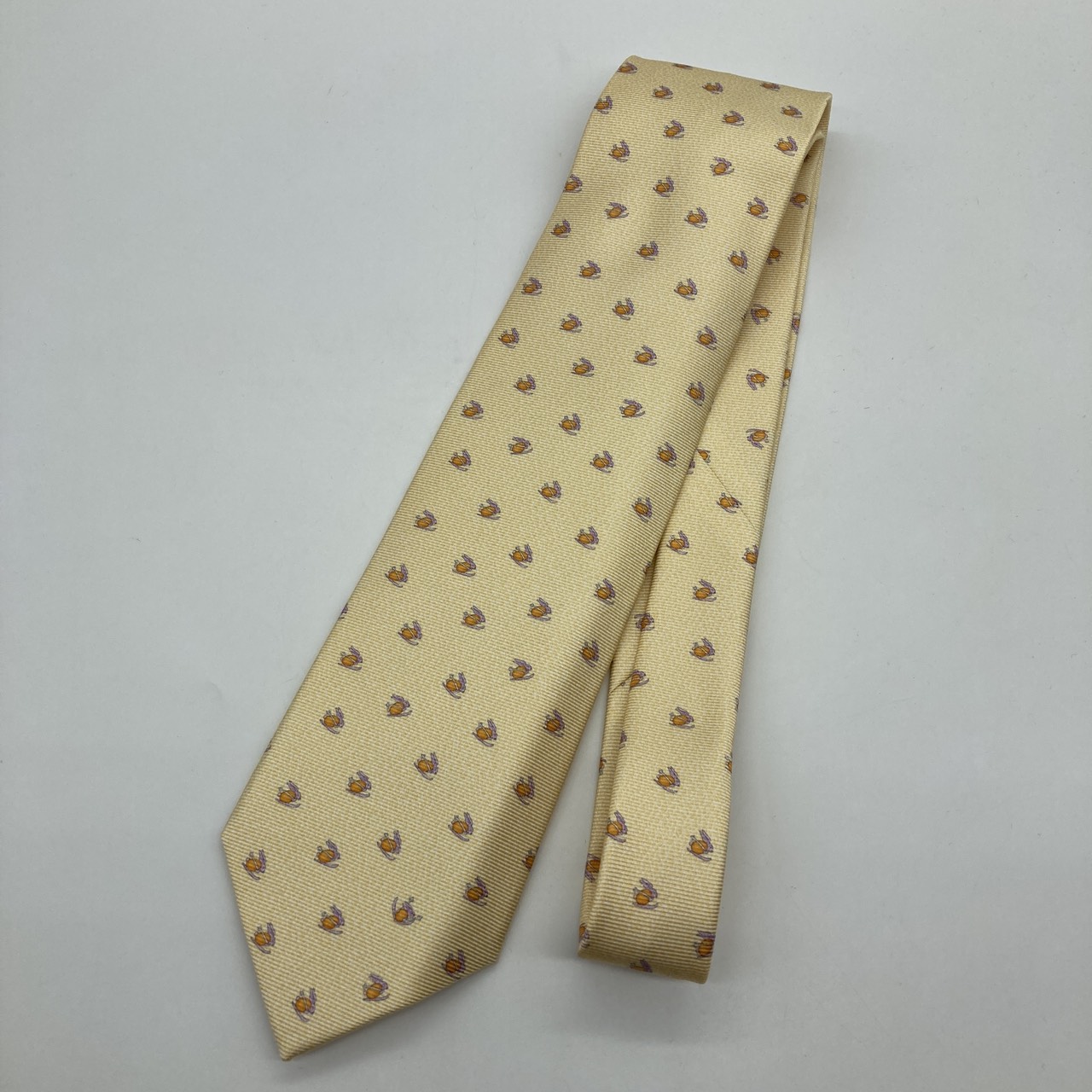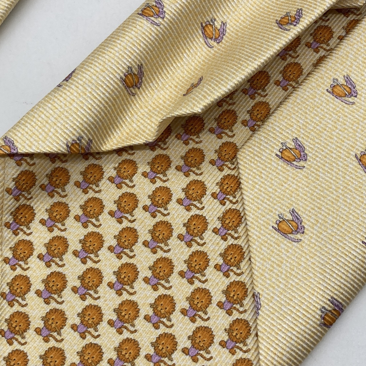 未使用保管品 総柄 動物柄 イエロー系 シルク ネクタイ