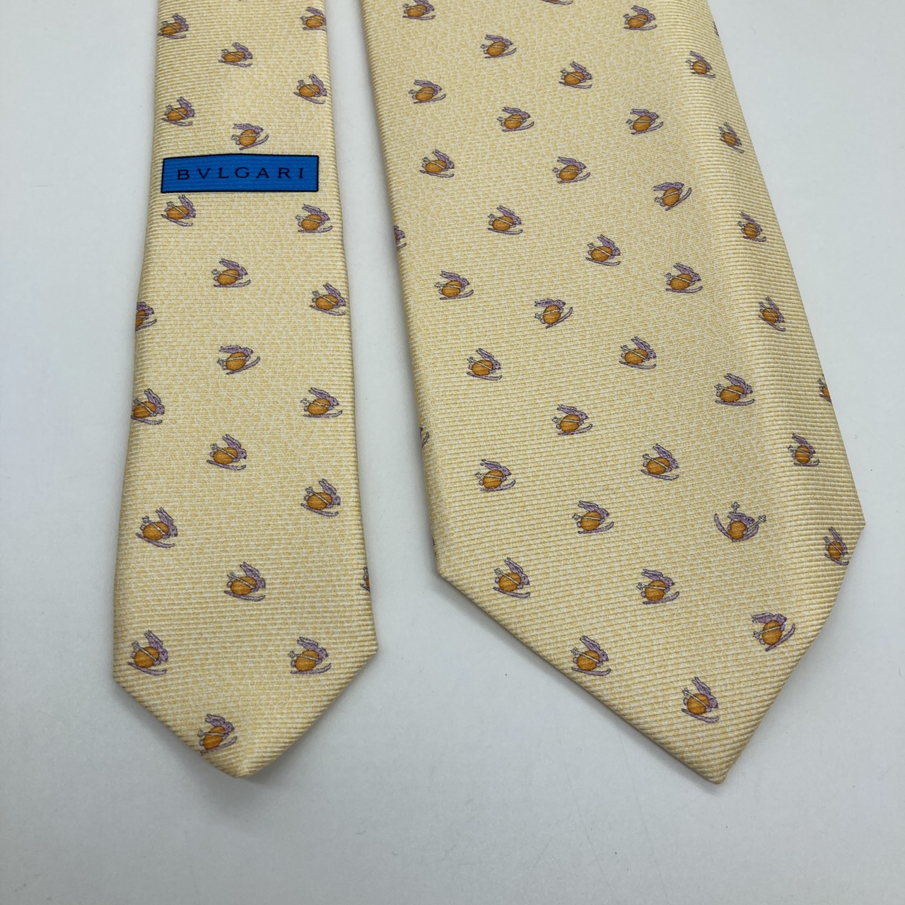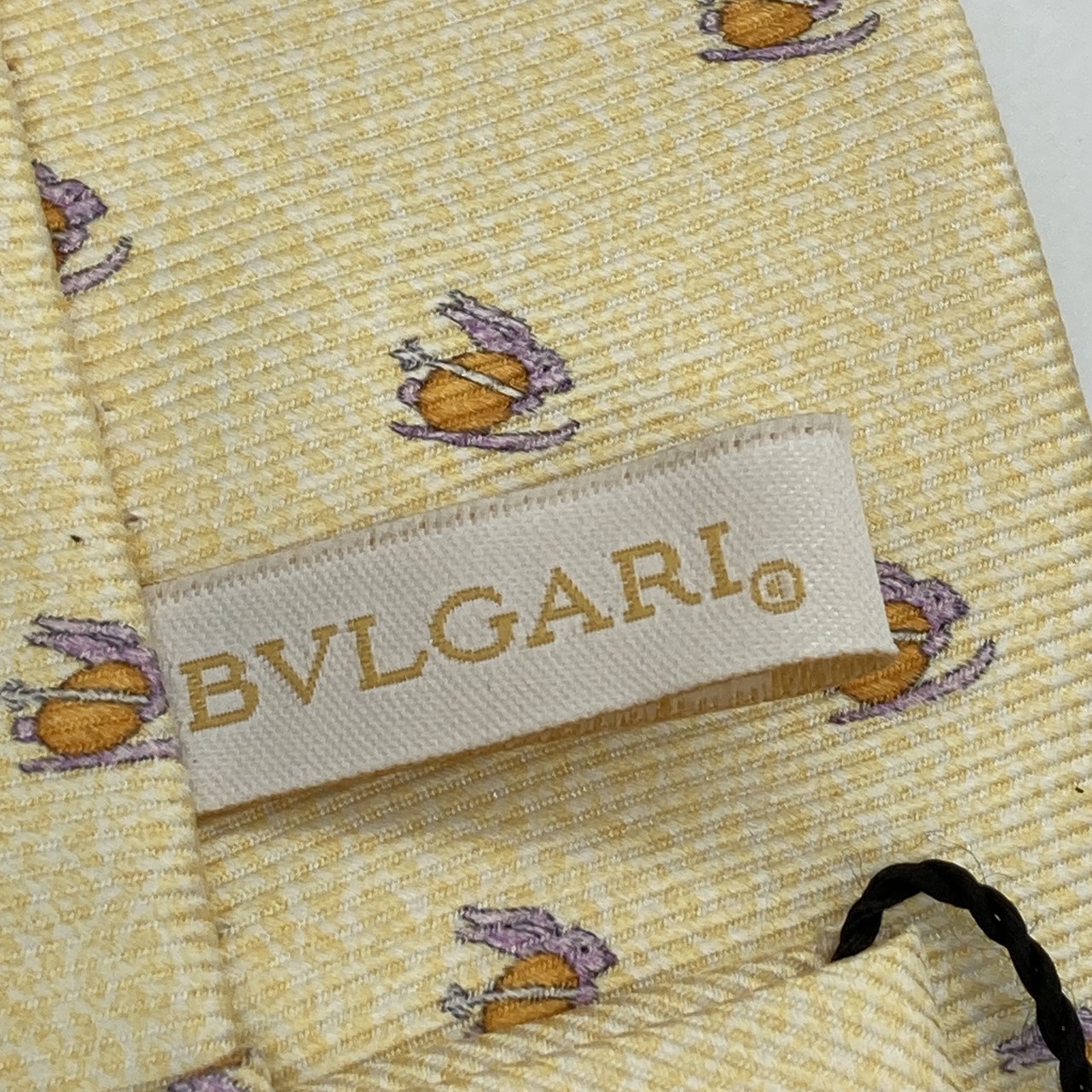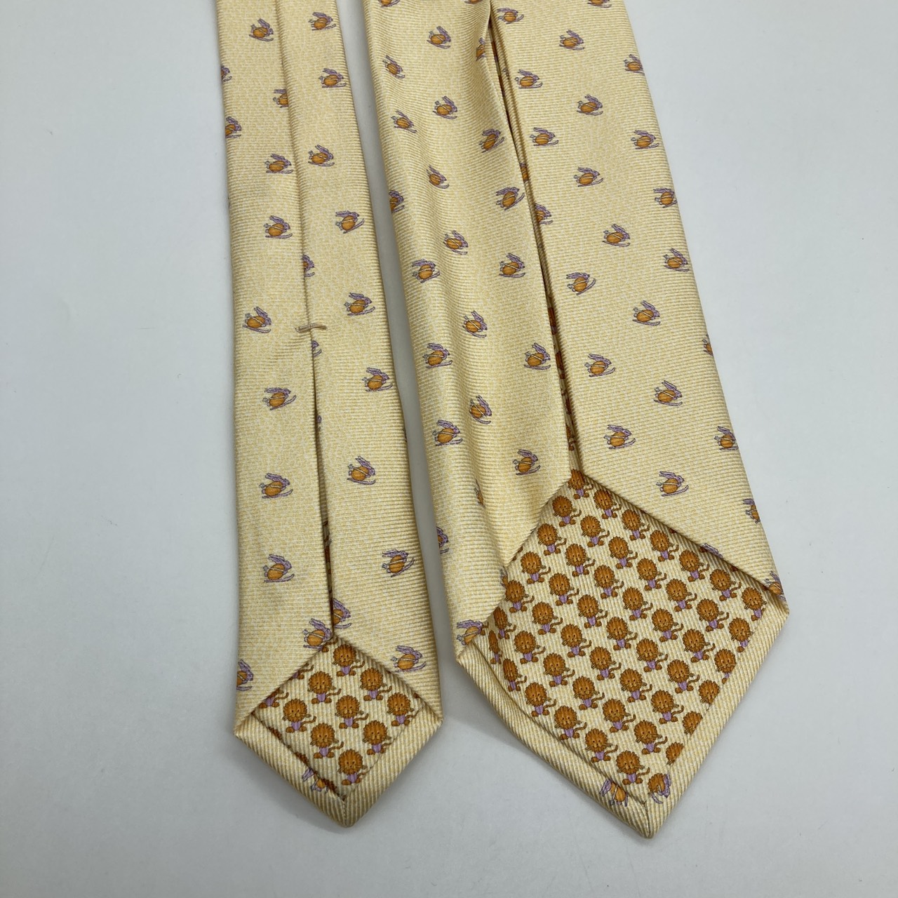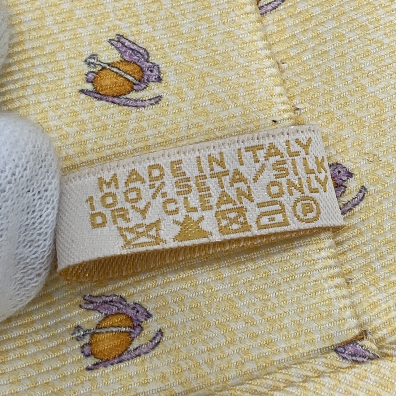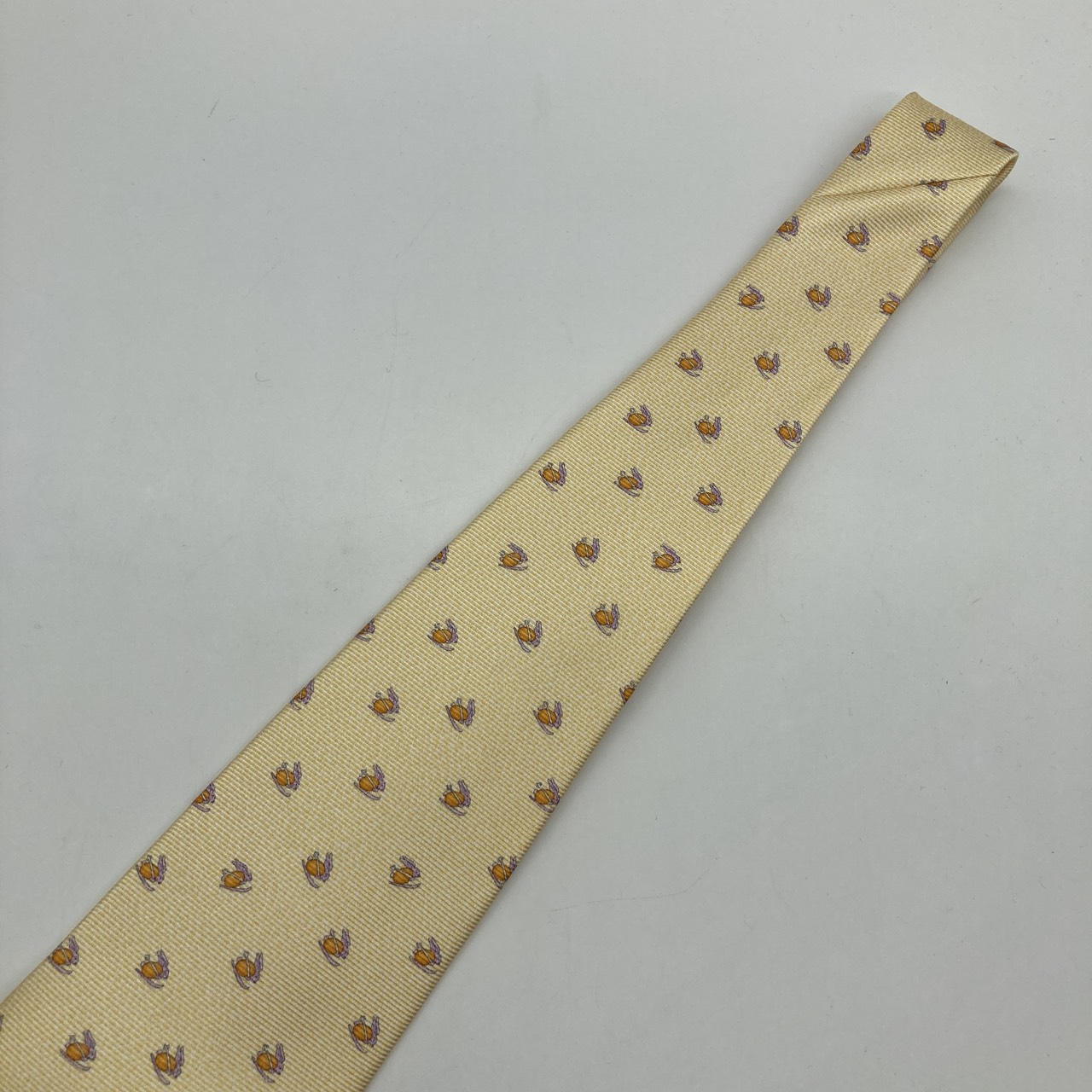 未使用保管品 総柄 動物柄 イエロー系 シルク ネクタイ