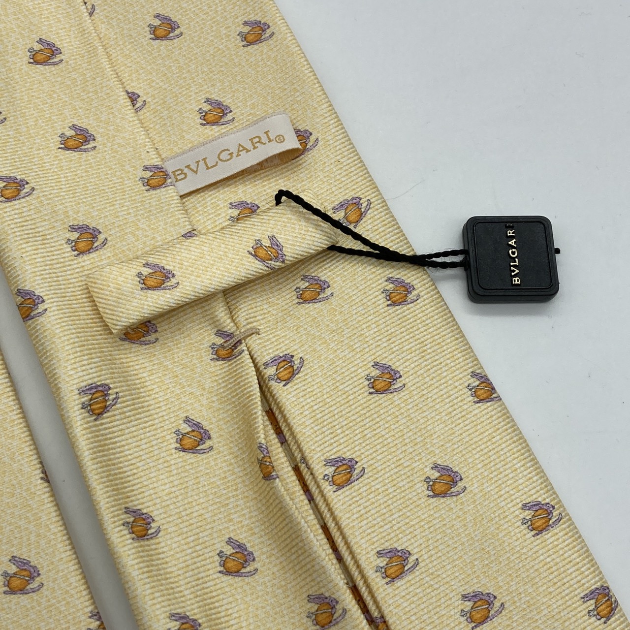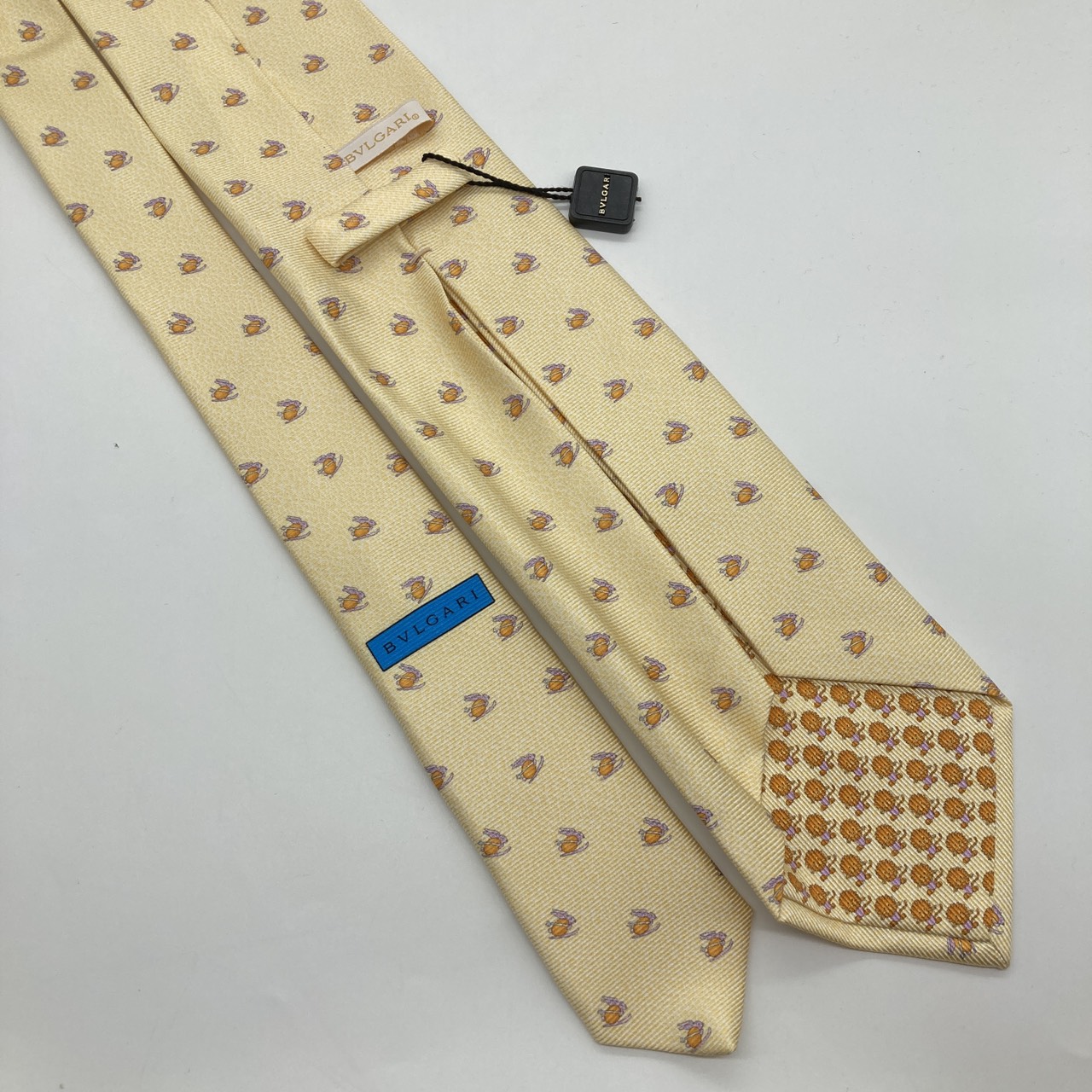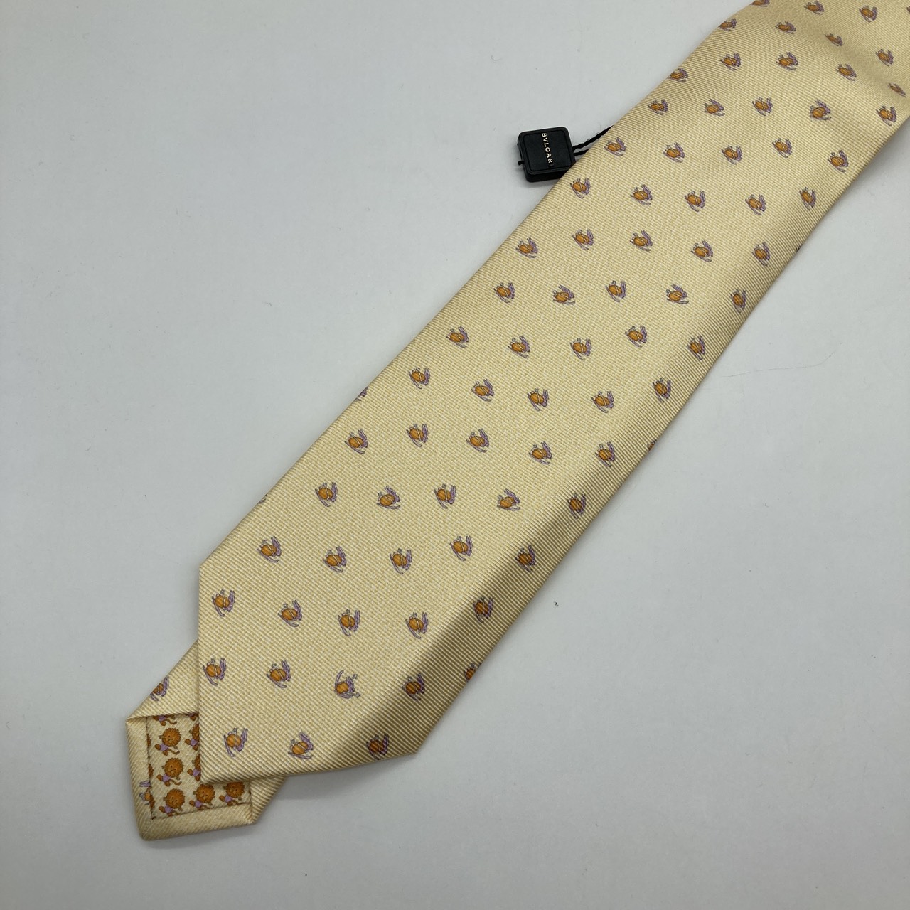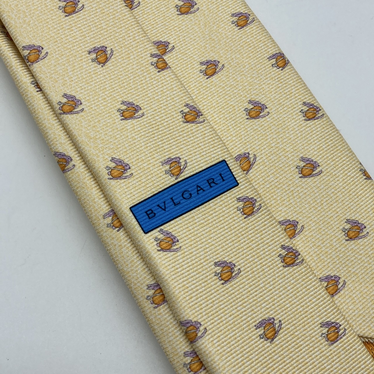 未使用保管品 総柄 動物柄 イエロー系 シルク ネクタイ
