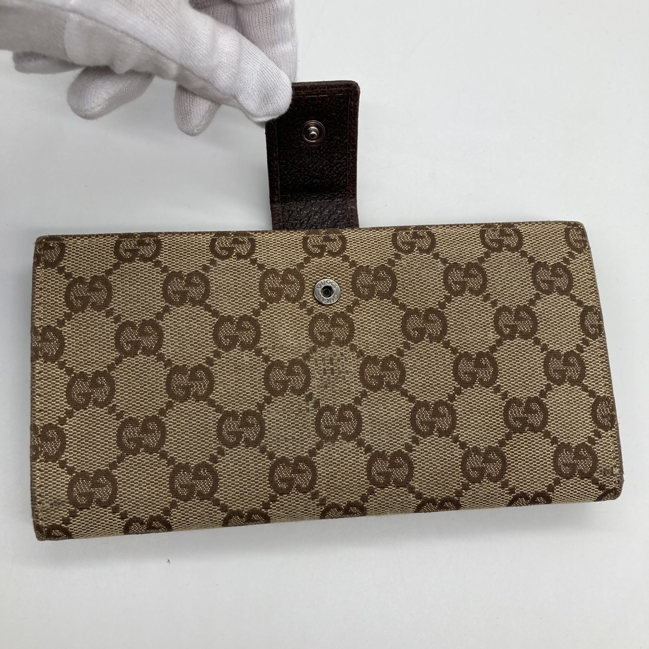 GGキャンバス 長財布 120931 Wホック ブラウン系